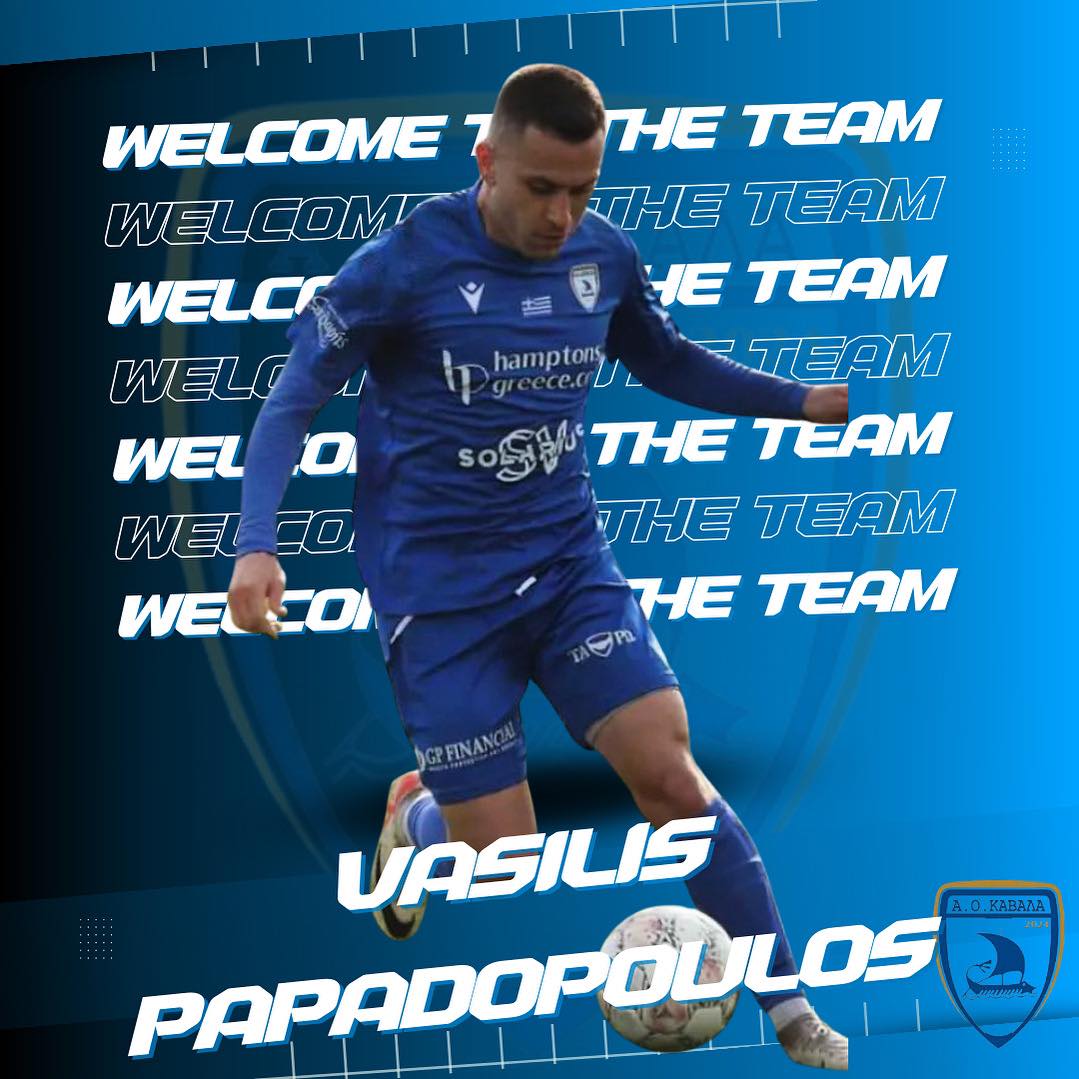 «Η ΠΑΕ Α.Ο. Καβάλα ανακοινώνει την ανανέωση της συνεργασίας της με τον Καβαλιώτη ποδοσφαιριστή Βασίλη Παπαδόπουλο. Ο Βασίλης ήταν ο πρώτος σκόρερ μας την περασμένη αγωνιστική περίοδο, έχει μεγάλη εμπειρία στην Superleague 2 και είμαστε σίγουροι ότι θα αποτελέσει έναν από τους στυλοβάτες της ομάδος μας και την ερχόμενη χρονιά! 🔵⚪️».