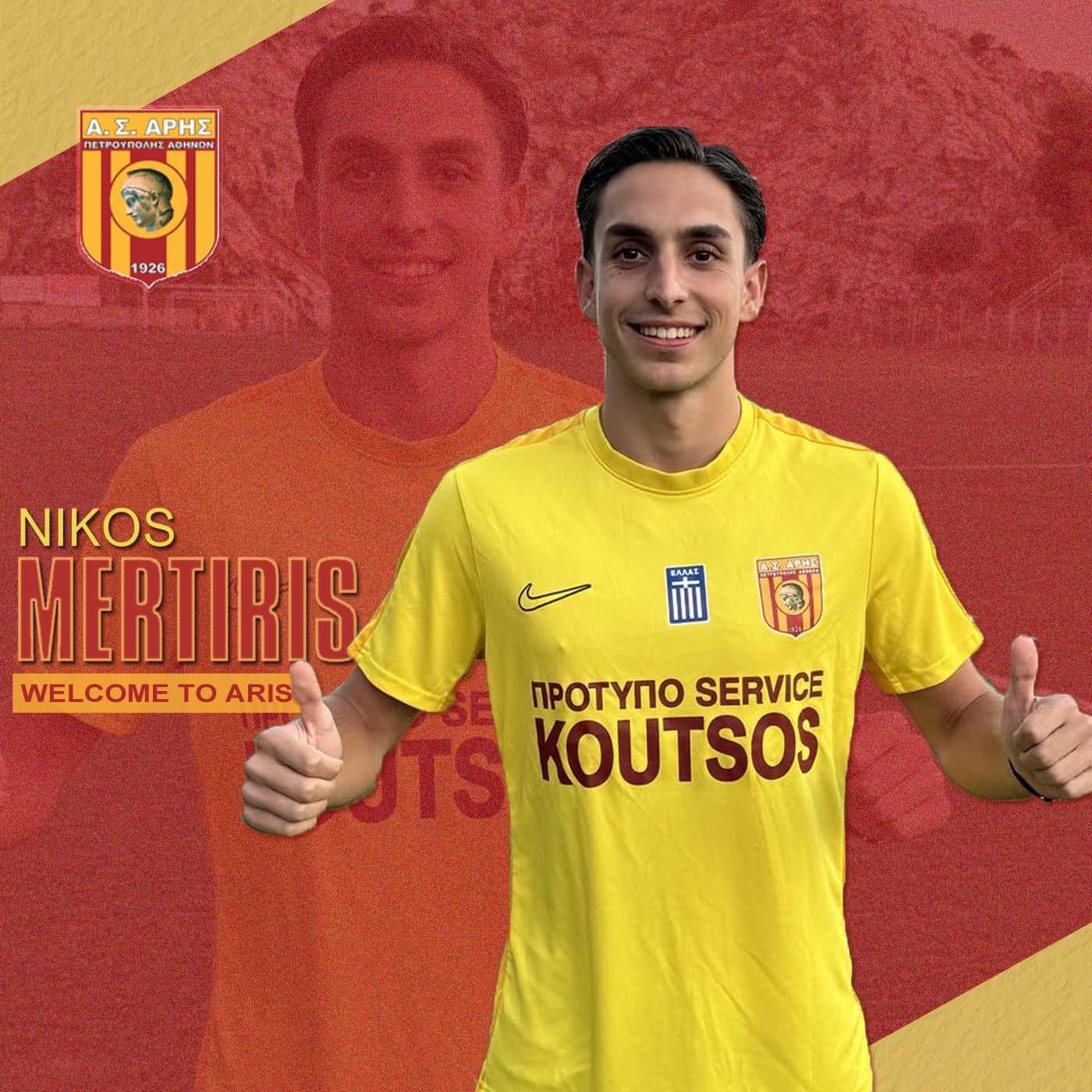 Ό Άρης Πετρούπολης ανακοινώνει την συμφωνία με τον ποδοσφαιριστή, Νίκο Μερτύρη, ο οποίος αγωνίζεται στο αριστερό άκρο της αμυντικής γραμμής. Γεννημένος στις 29/2/2004 το νέο μας μεταγραφικό απόκτημα προέρχεται από γεμάτες σεζόν στο πρωτάθλημα της Γ’ Εθνικής κάτι που σημαίνει ότι θα προσφέρει λύσεις στην ομάδα μας. Τελευταίος σταθμός της καριέρας ήταν ο ΑΟΝ Αρτάκης με τη φανέλα του οποίου κατέγραψε 28 συμμετοχές στον 2ο όμιλο της Γ’ Εθνικής, ενώ μεταξύ άλλων έχει αγωνιστεί σε Ένωση Ερμιονίδας και Πανιωνιο. Καλωσορίζουμε τον Νίκο Μερτύρη στην οικογένεια του Άρη Πετρούπολης και του ευχόμαστε ό,τι καλύτερο