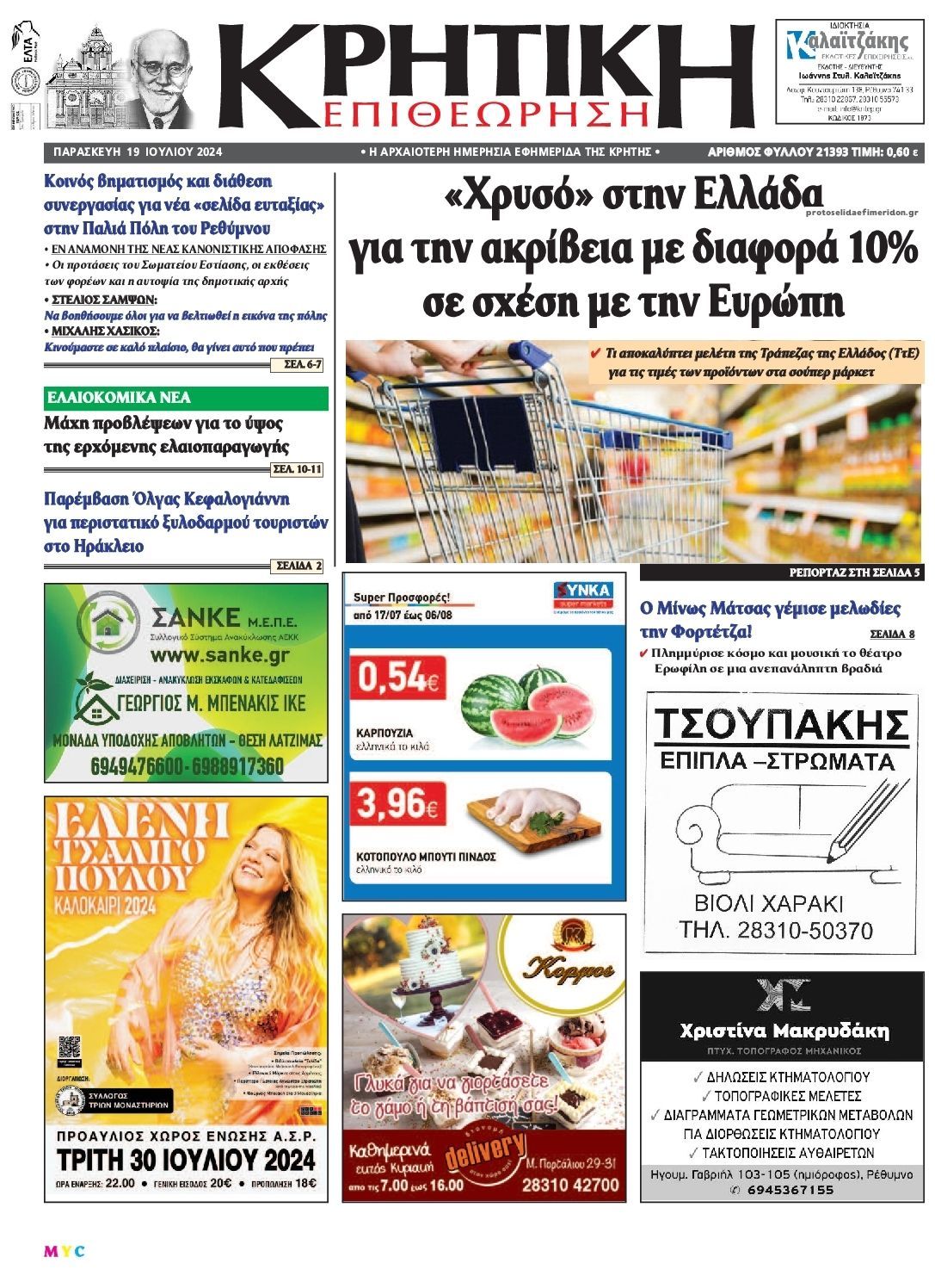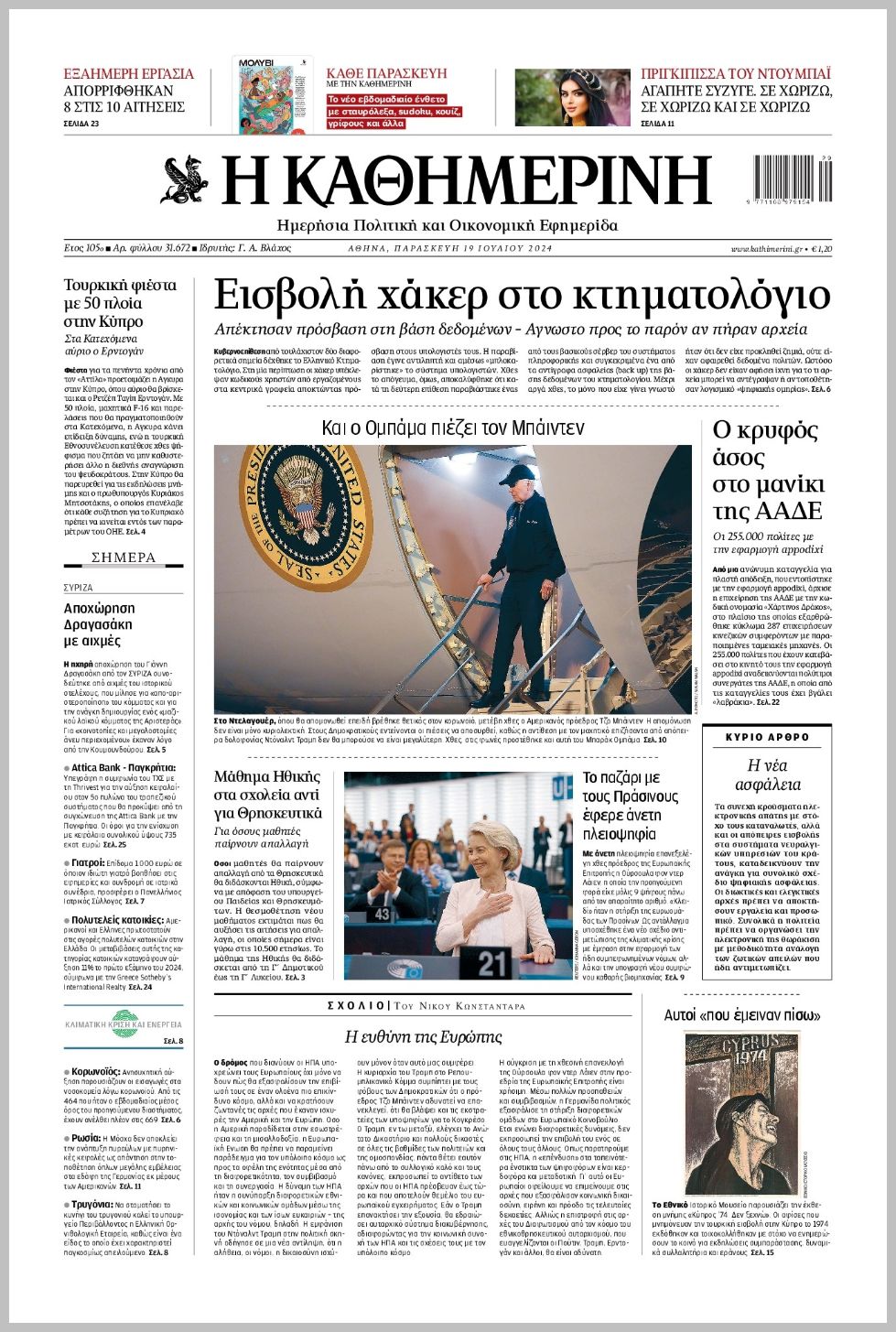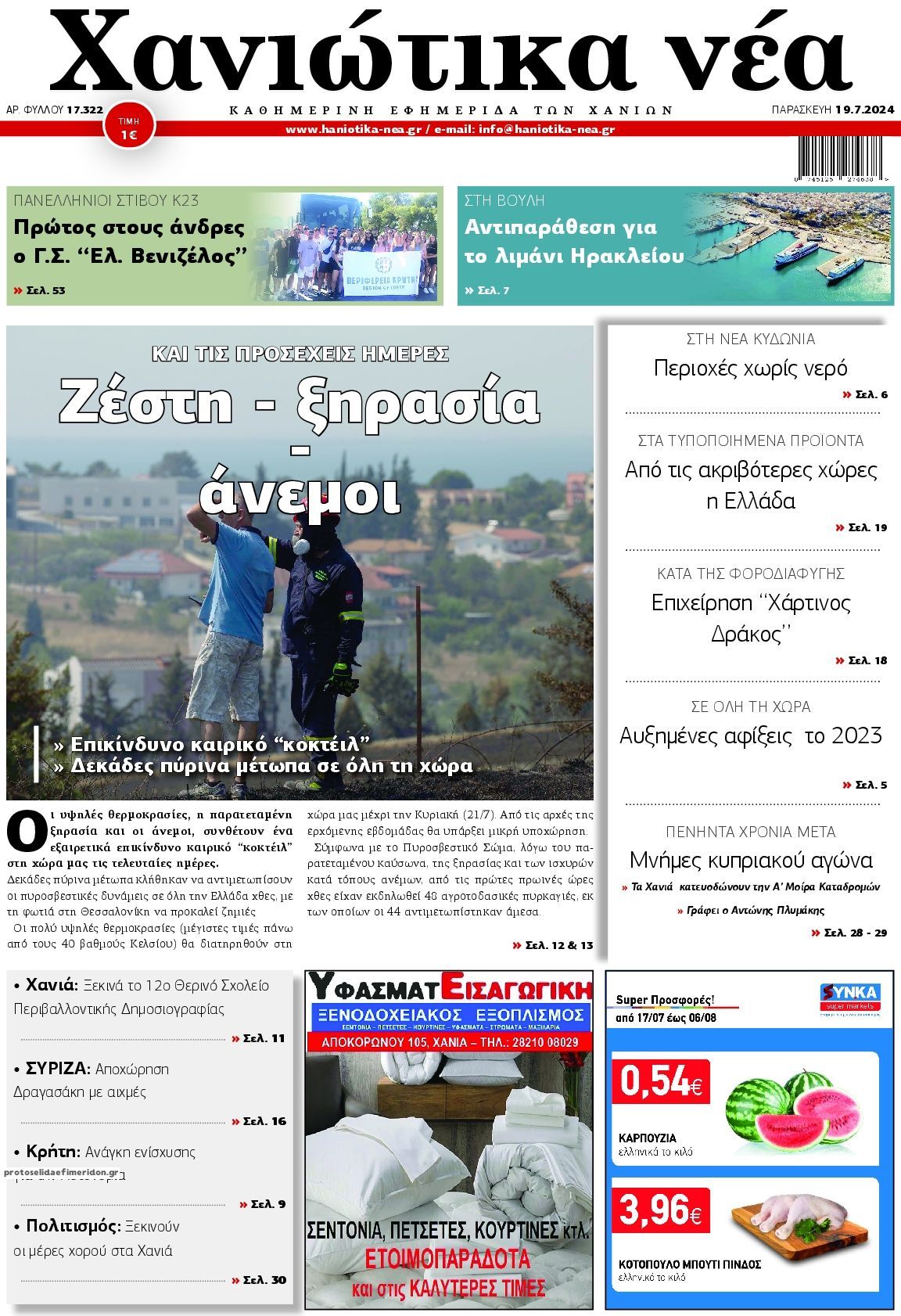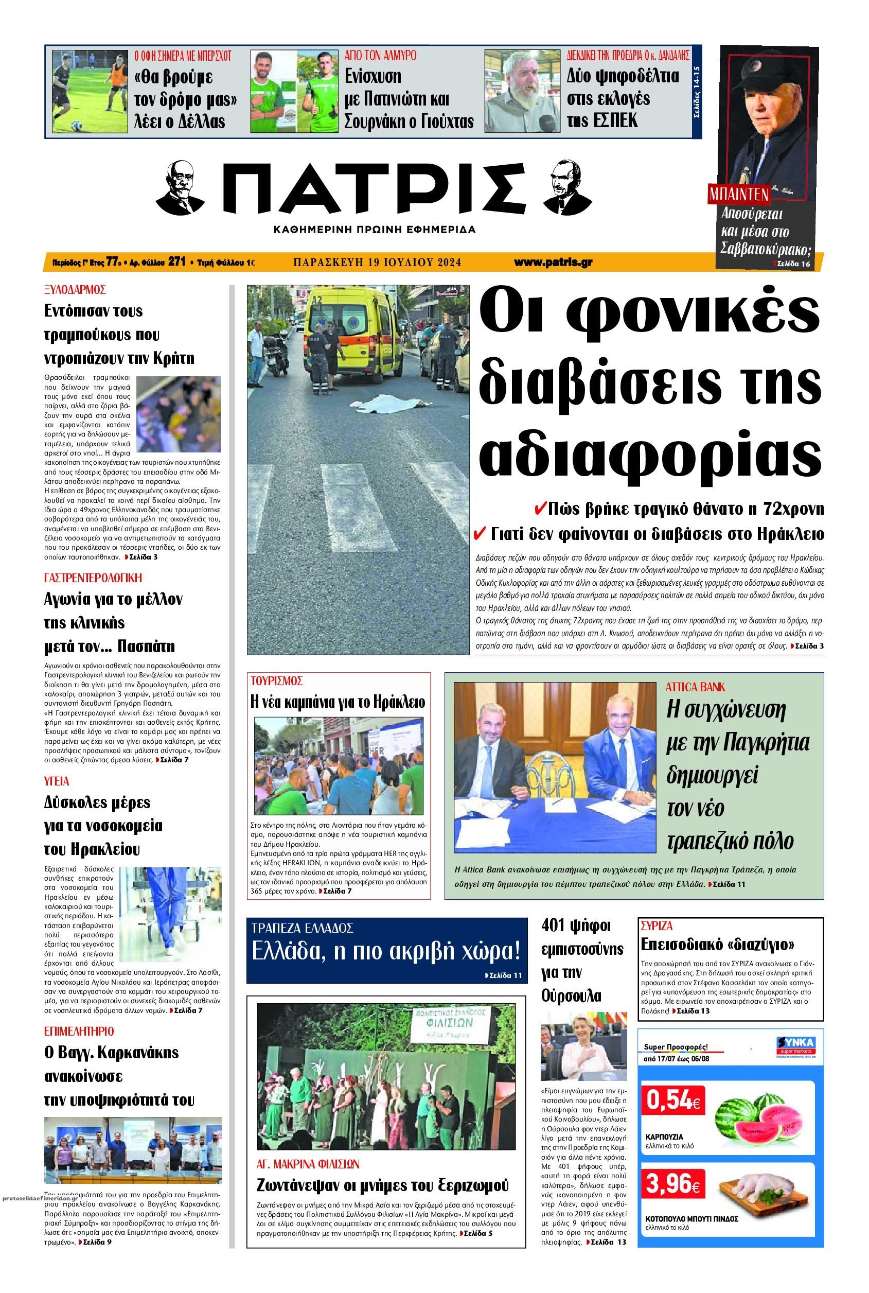 Τα πρωτοσέλιδα της Παρασκευής (19/7) σε Κρήτη και Αθήνα
