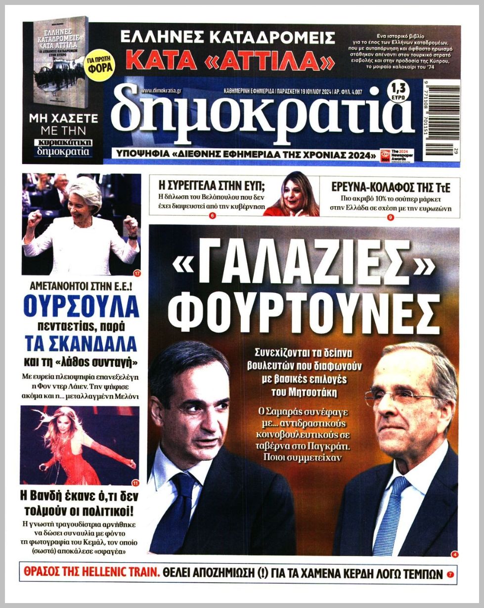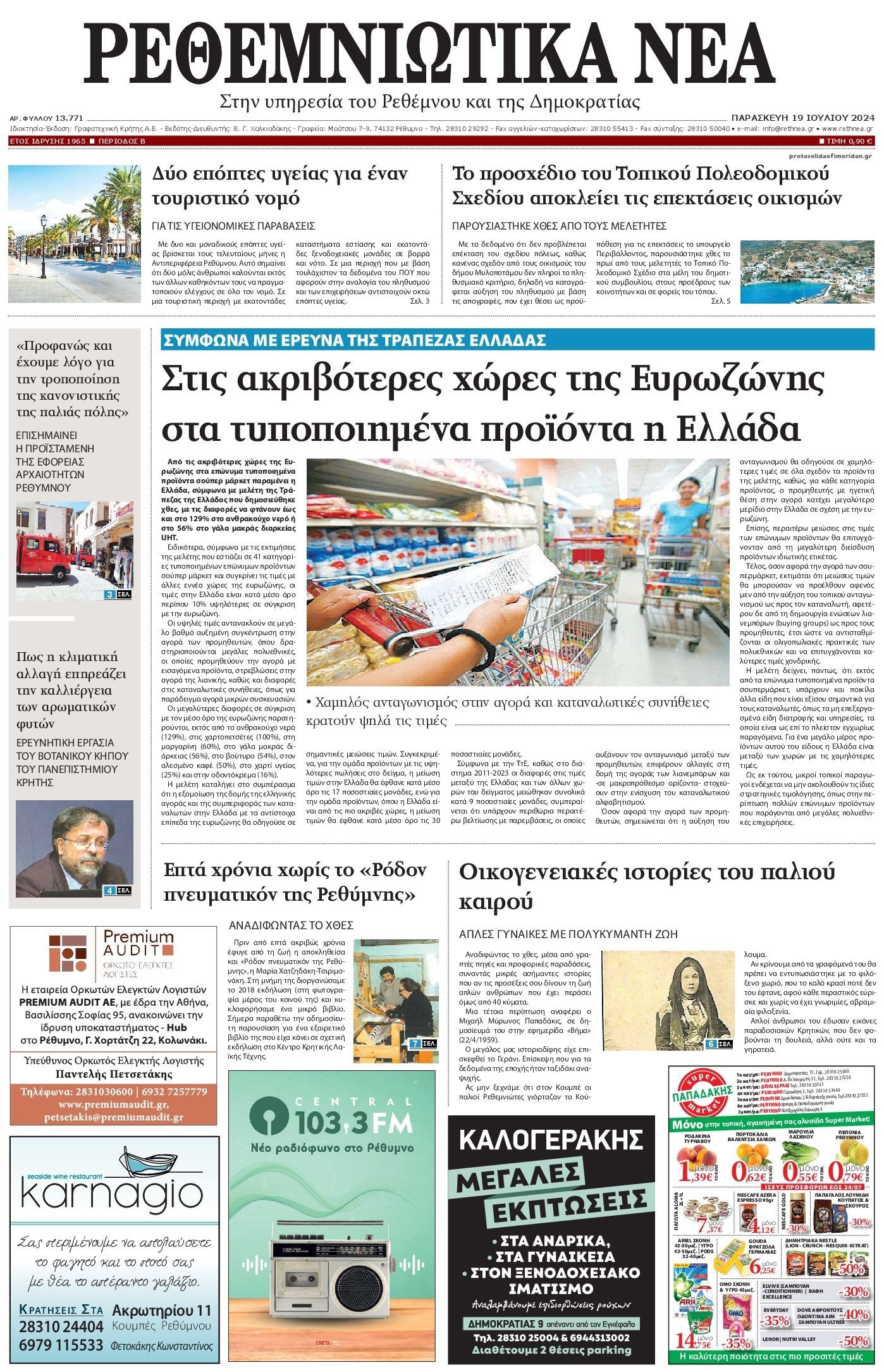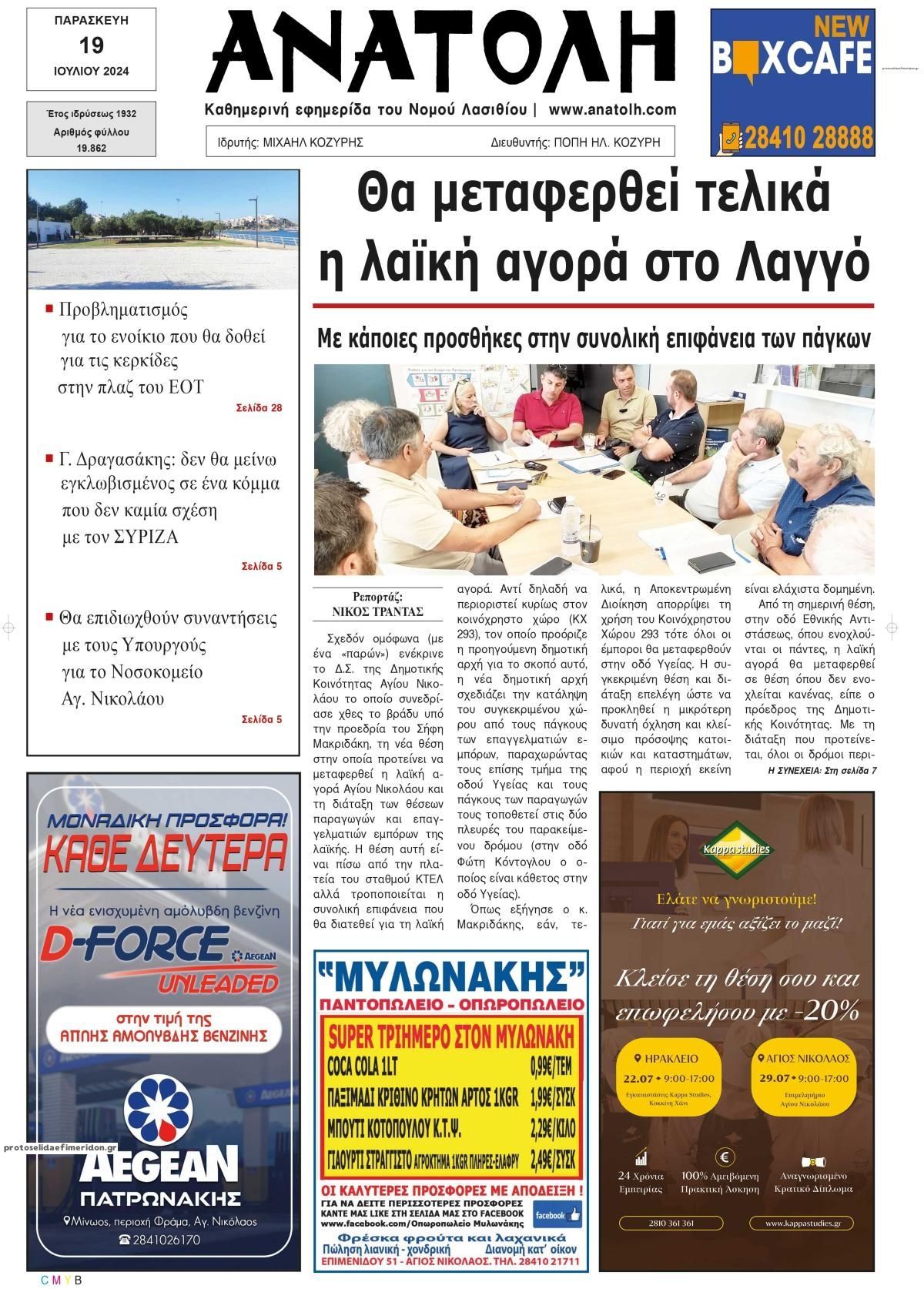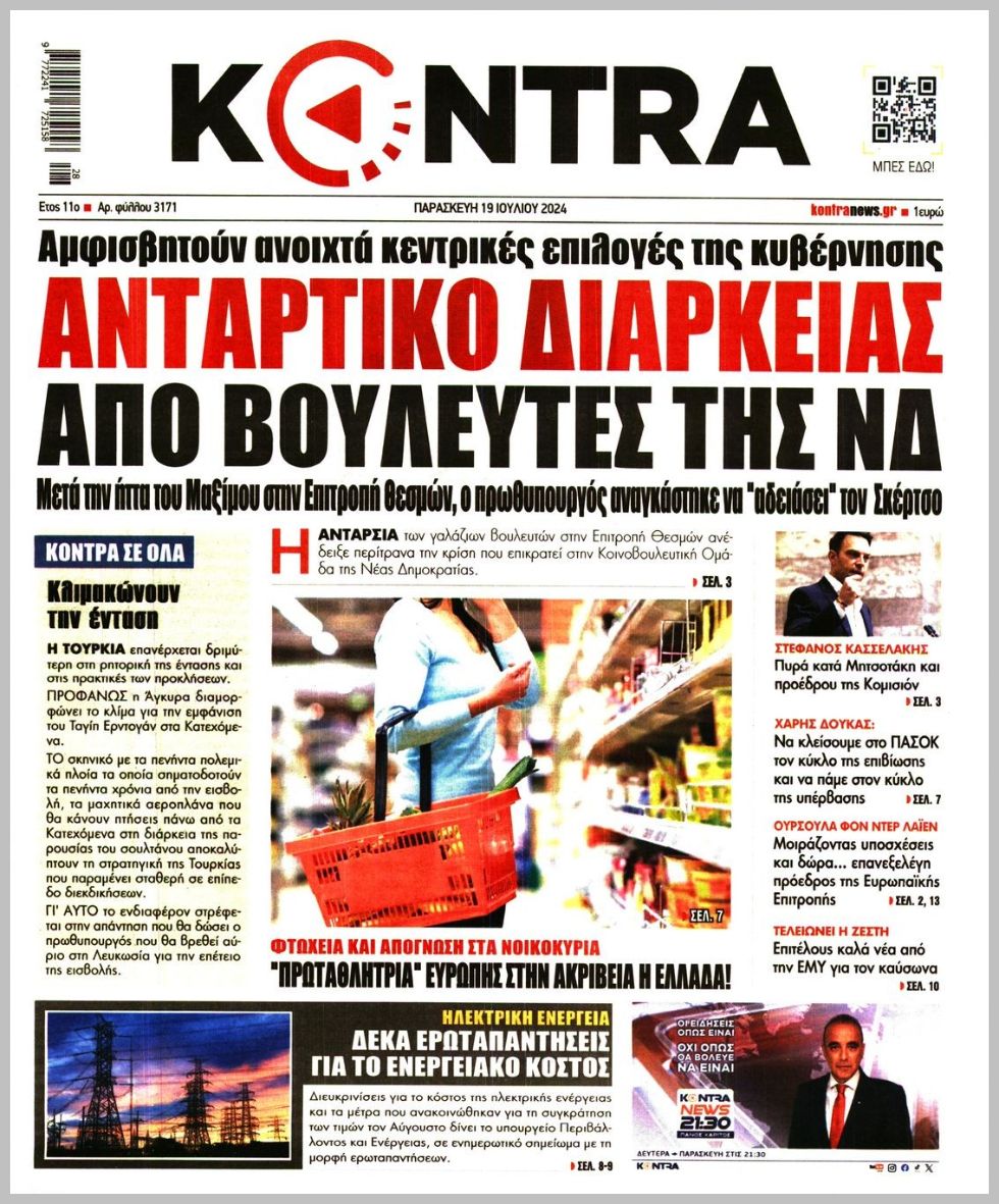 Τα πρωτοσέλιδα της Παρασκευής (19/7) σε Κρήτη και Αθήνα