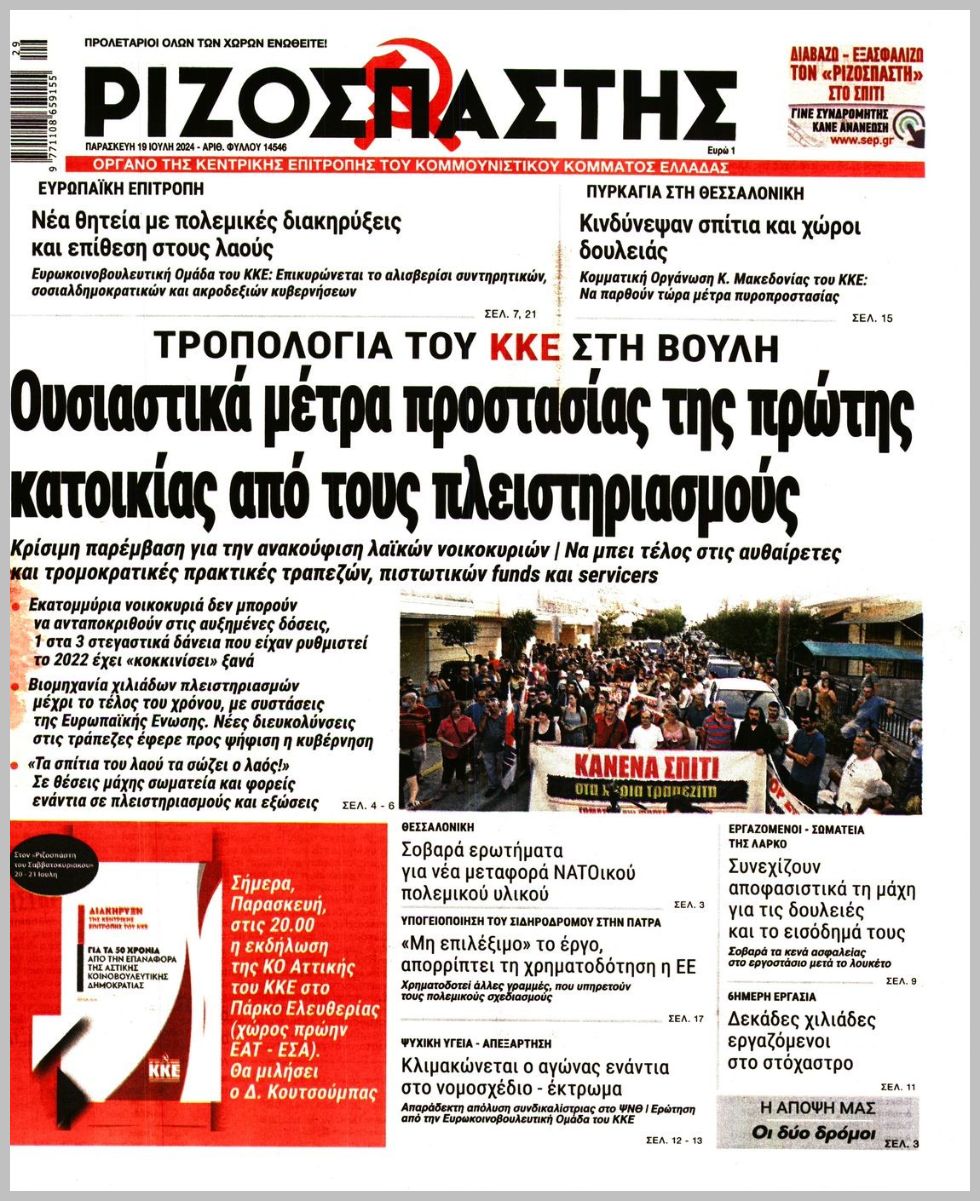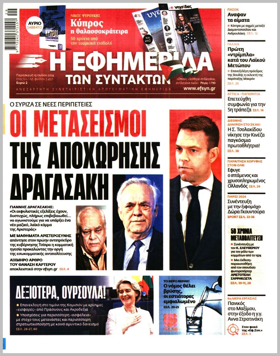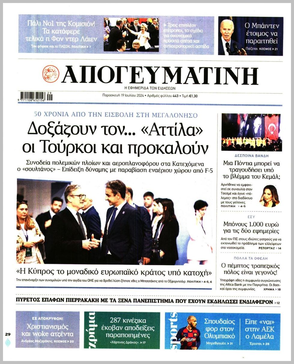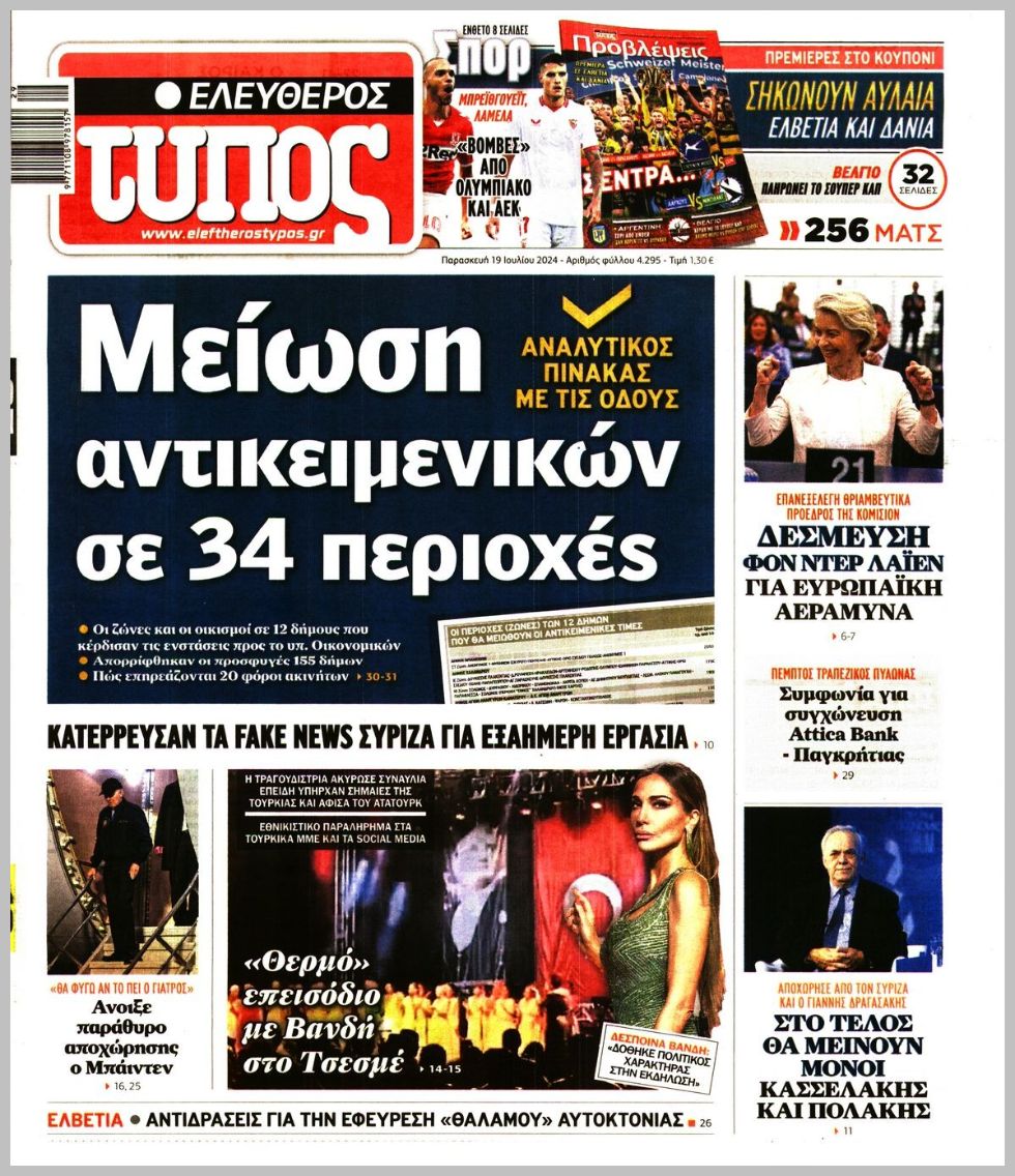 Τα πρωτοσέλιδα της Παρασκευής (19/7) σε Κρήτη και Αθήνα