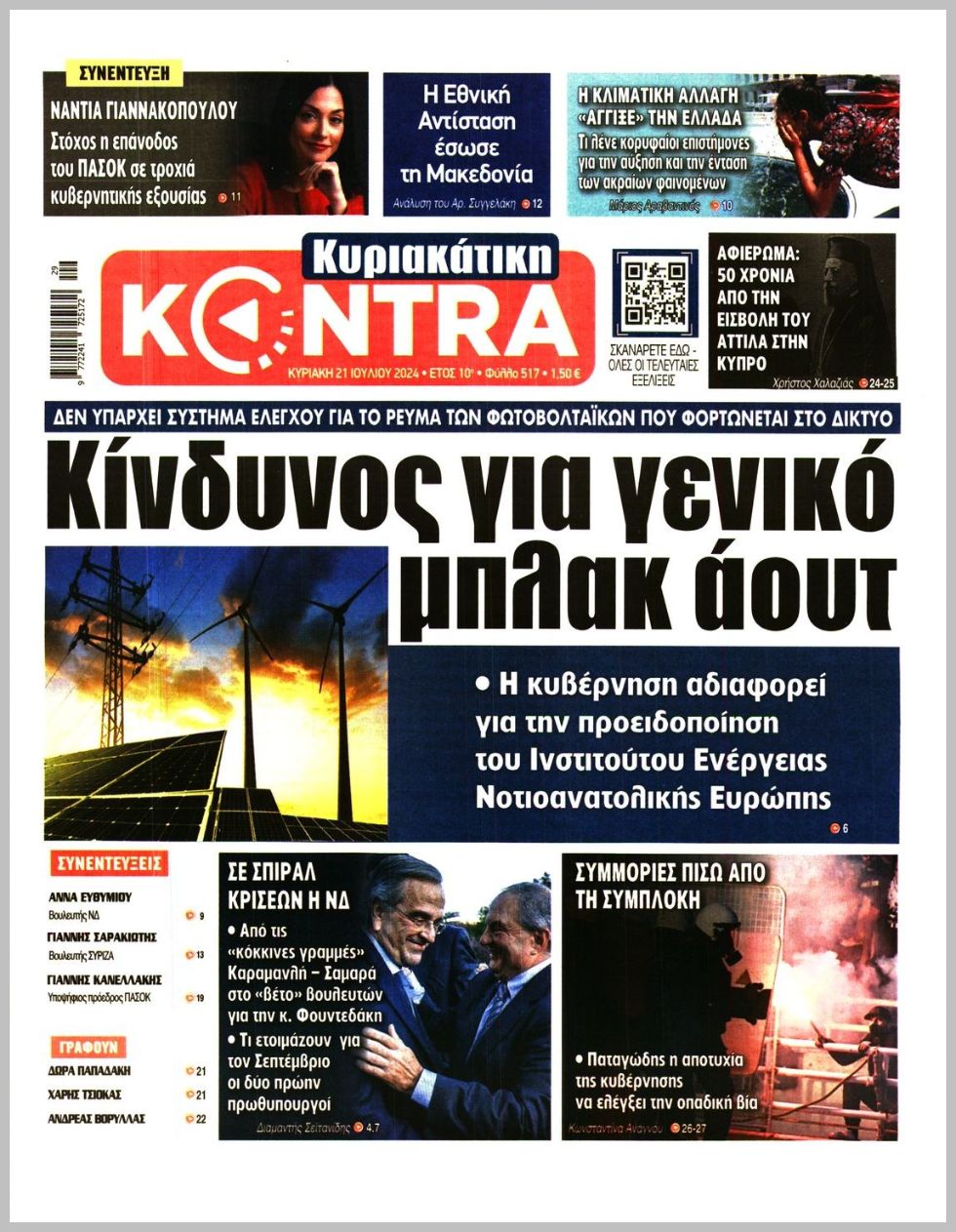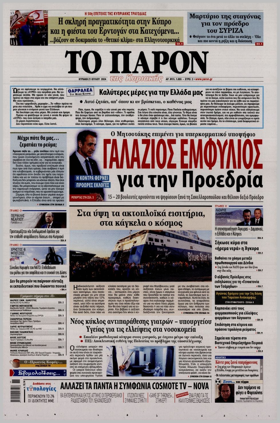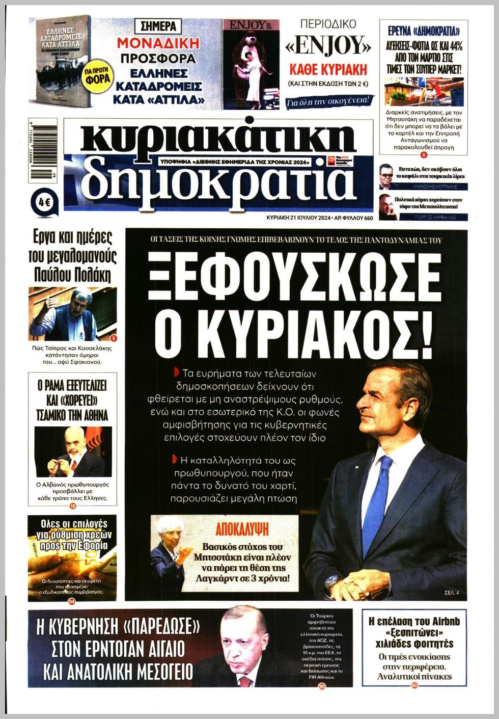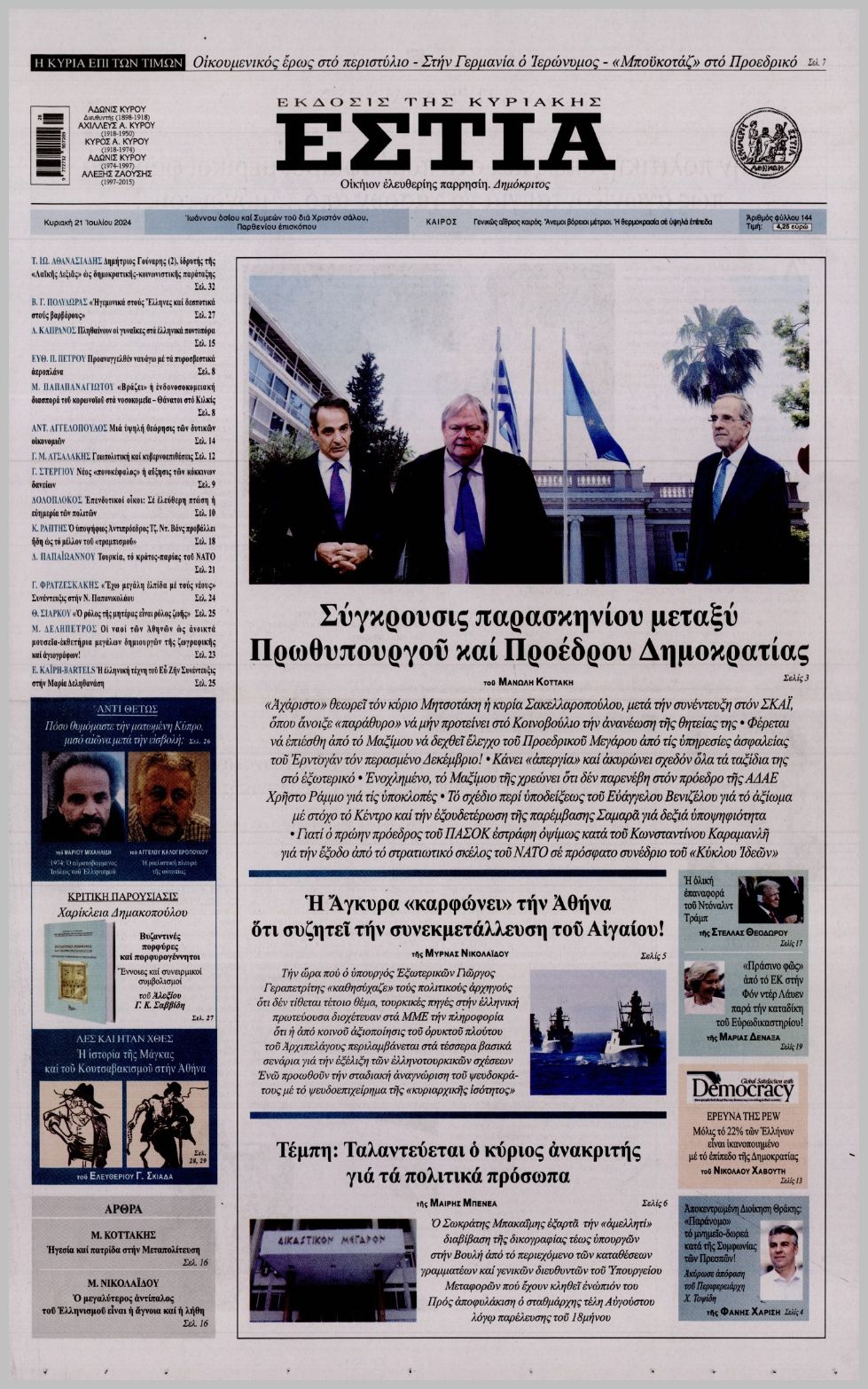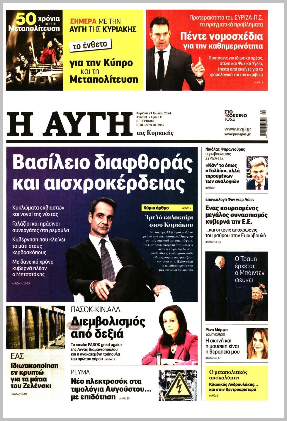 Τα πρωτοσέλιδα των πολιτικών εφημερίδων της Κυριακής (21/7)