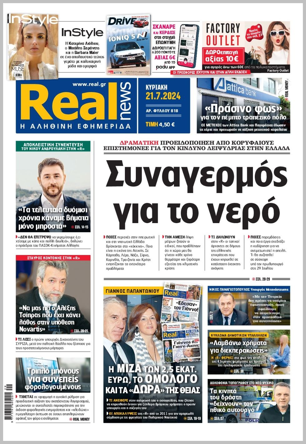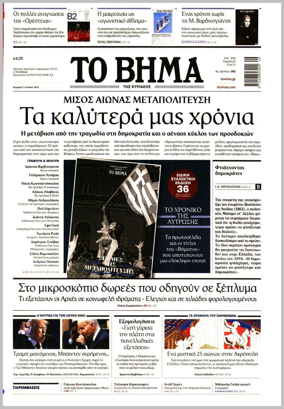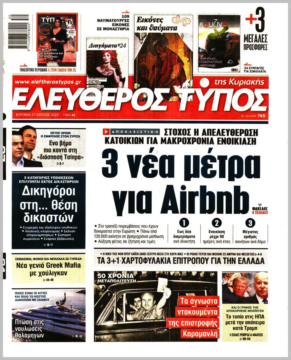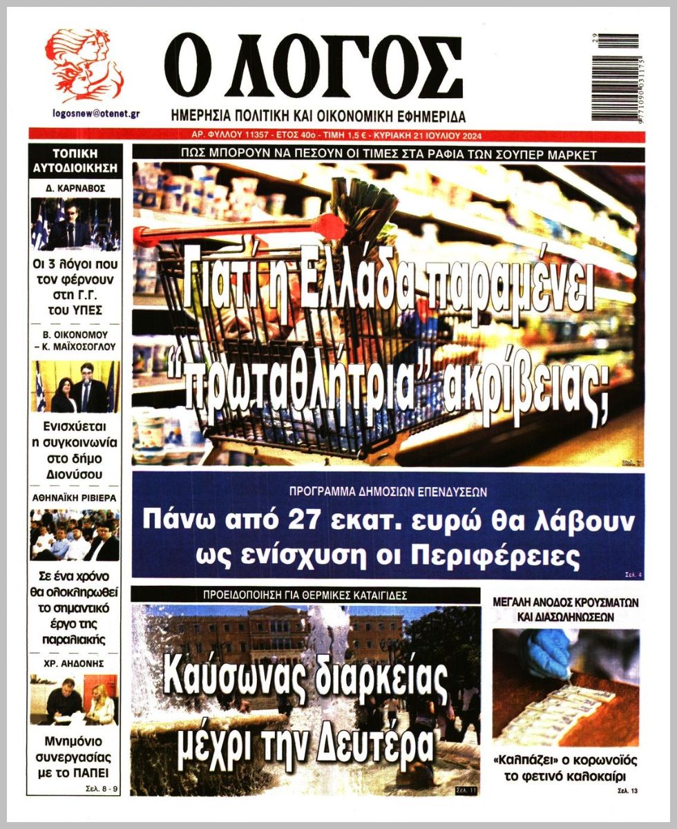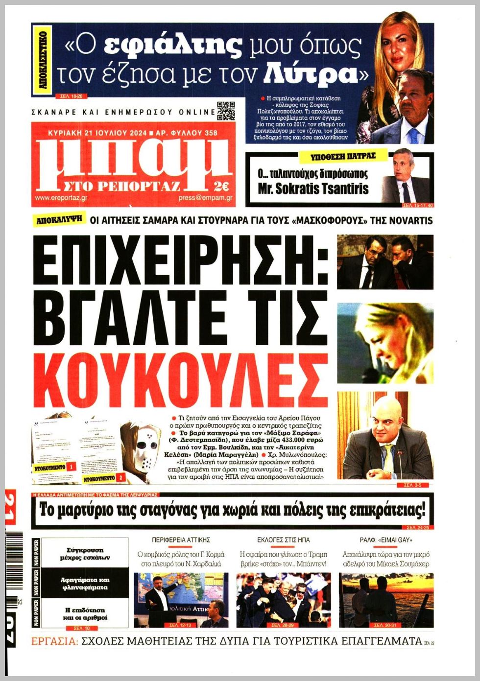 Τα πρωτοσέλιδα των πολιτικών εφημερίδων της Κυριακής (21/7)