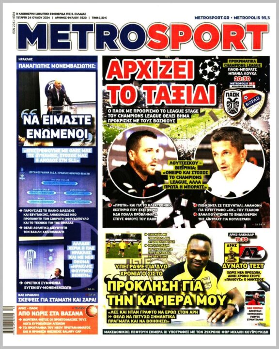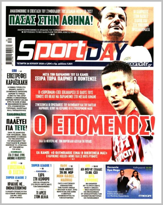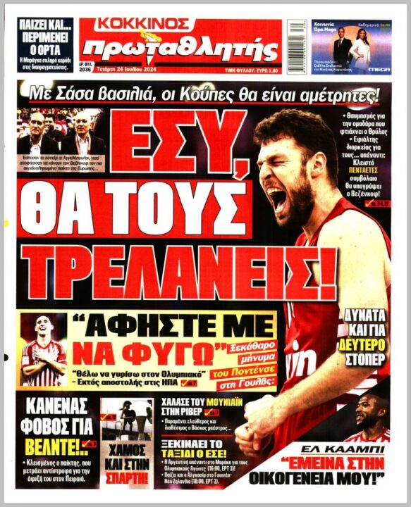 Τα αθλητικά πρωτοσέλιδα της Τετάρτης (24/7)