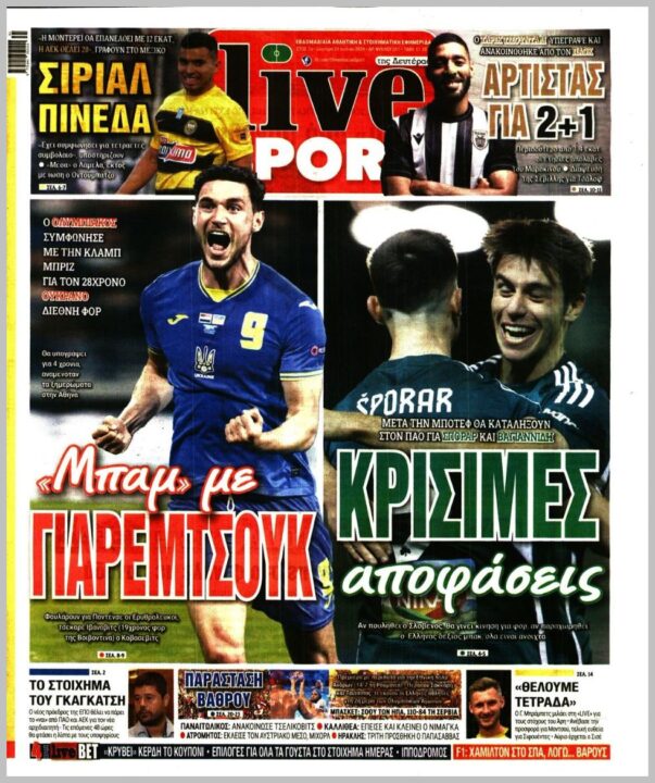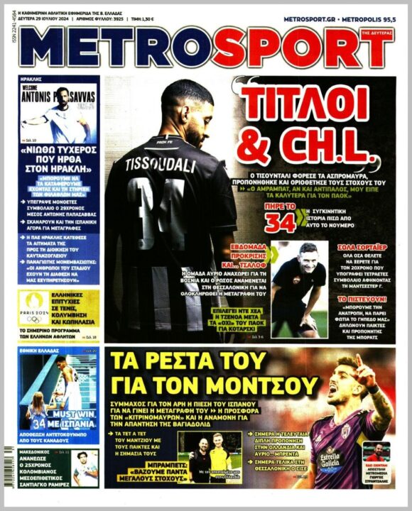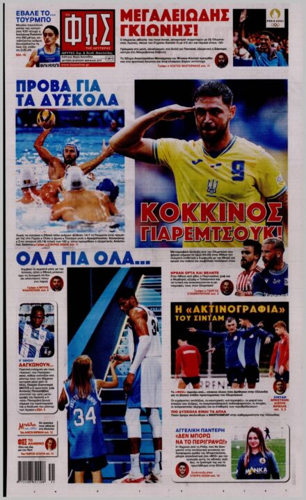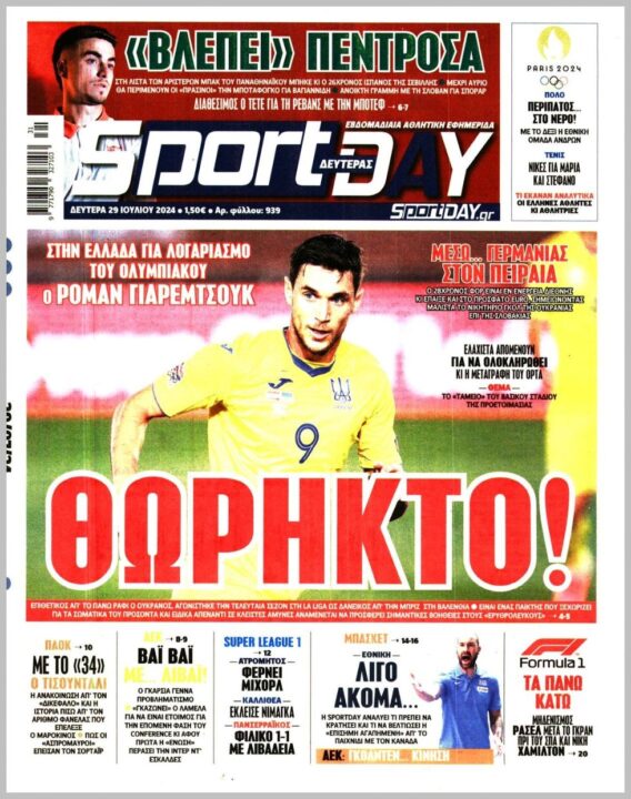 Τα αθλητικά πρωτοσέλιδα της Δευτέρας (29/7)