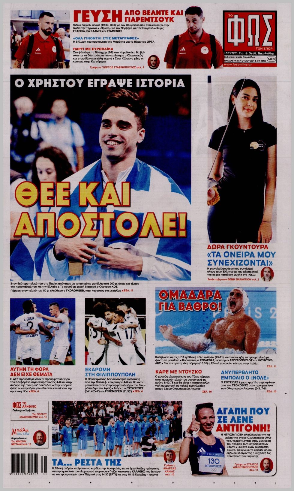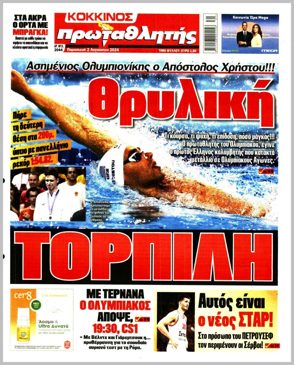 Τα αθλητικά πρωτοσέλιδα της Παρασκευής (2/8)