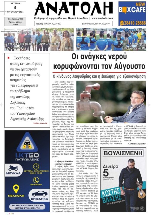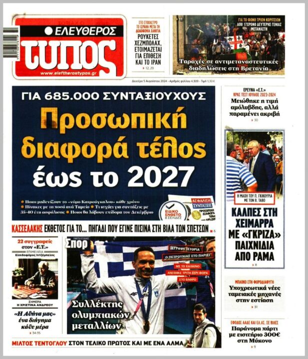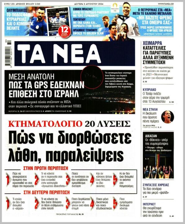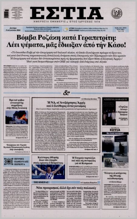 Τα πολιτικά πρωτοσέλιδα της Δευτέρας (5/8) σε Κρήτη και Αθήνα