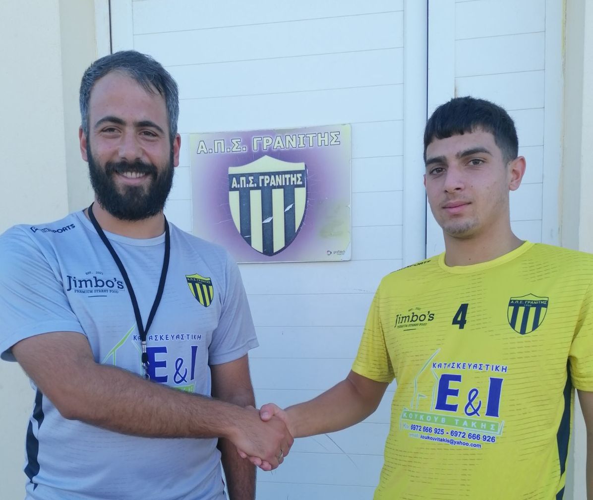 *Στην φωτογραφία το νέο απόκτημα του Γρανίτη μαζί με τον γυμναστή της ομάδας της Αγίας Μαρίνας, Αντώνη Ακρωτηριανάκη.
