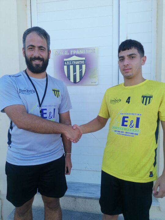 *Στην φωτογραφία το νέο απόκτημα του Γρανίτη μαζί με τον γυμναστή της ομάδας της Αγίας Μαρίνας, Αντώνη Ακρωτηριανάκη.