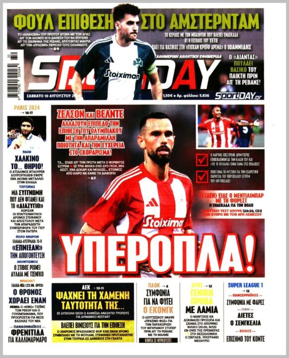 Τα αθλητικά πρωτοσέλιδα του Σαββάτου (10/8)