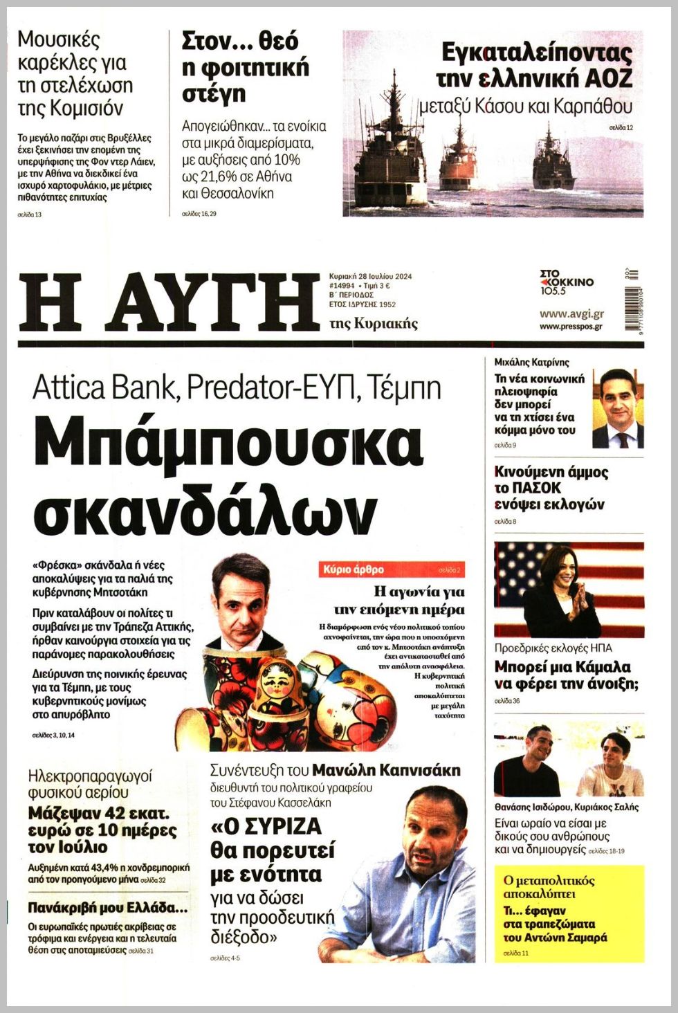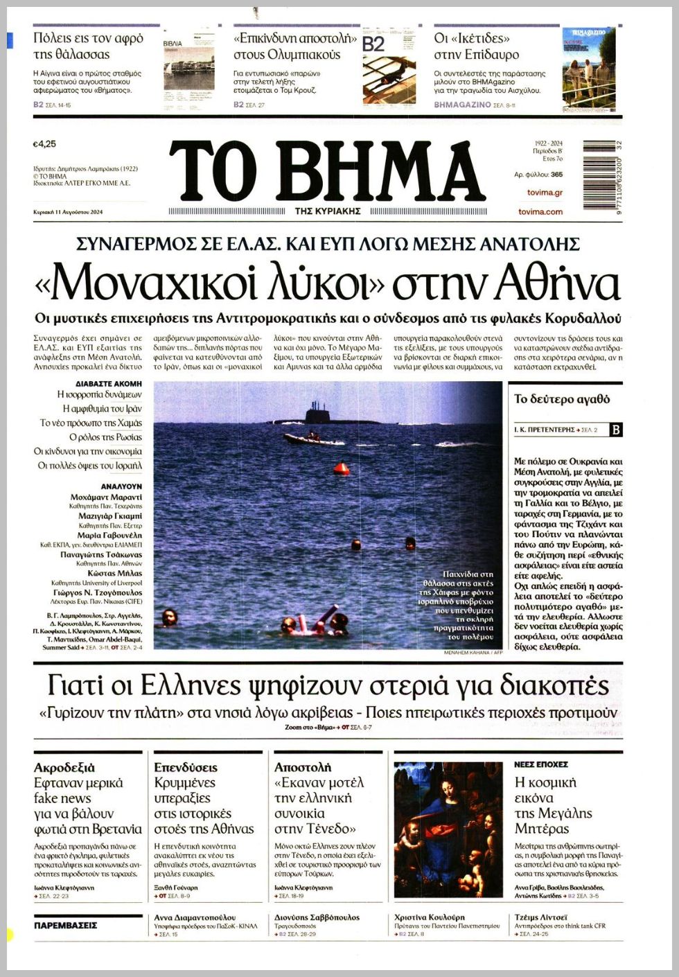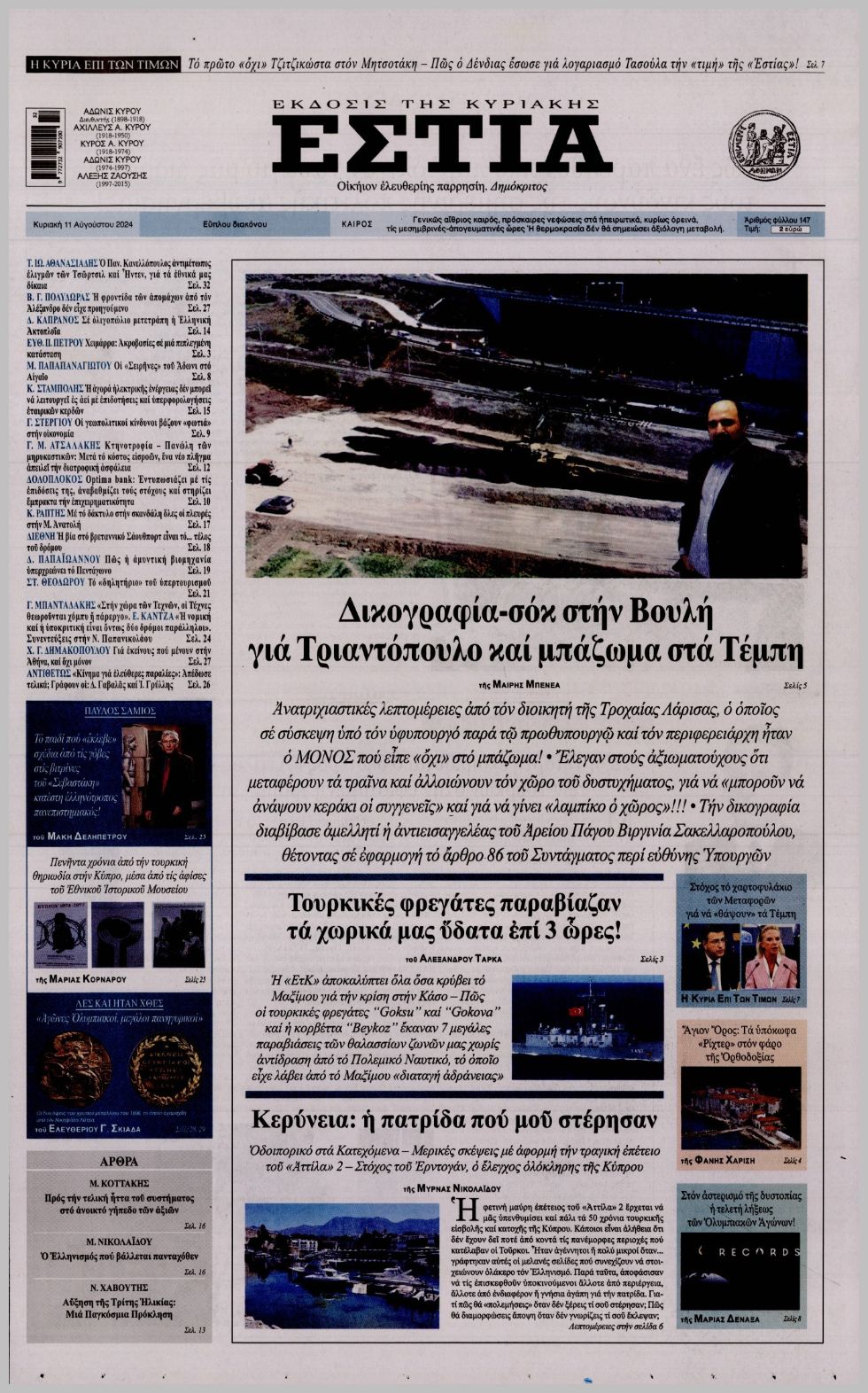 Τα πρωτοσέλιδα των πολιτικών εφημερίδων της Κυριακής (11/8)