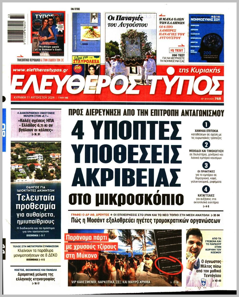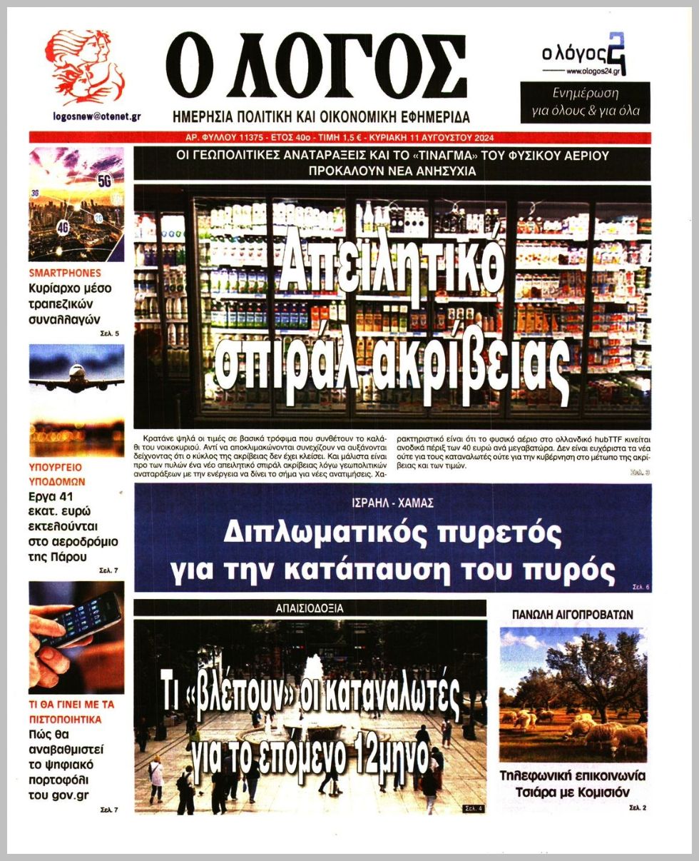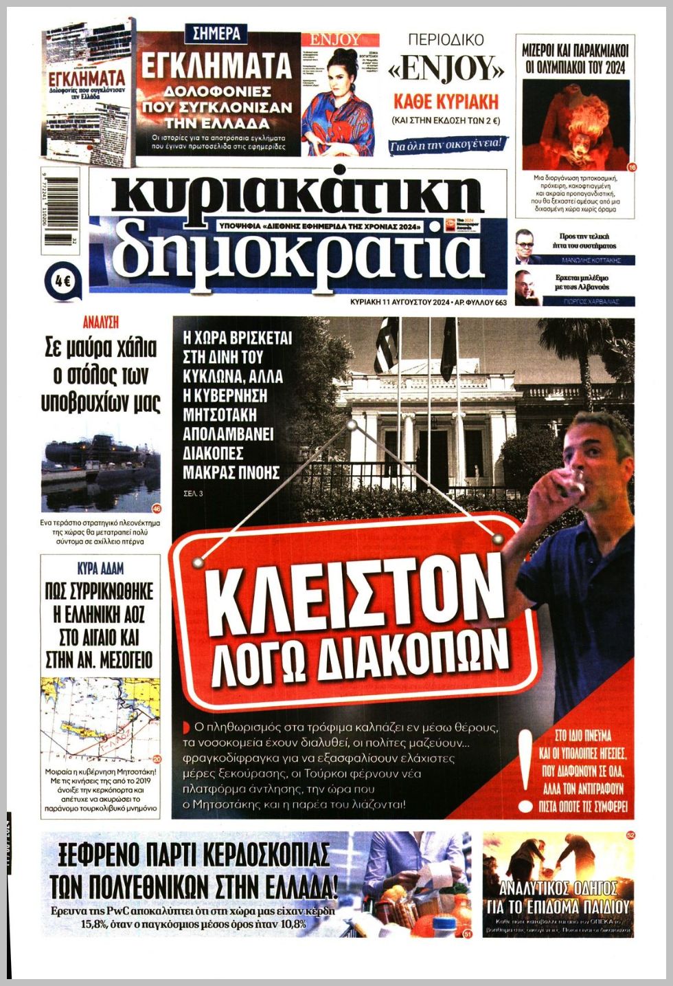 Τα πρωτοσέλιδα των πολιτικών εφημερίδων της Κυριακής (11/8)