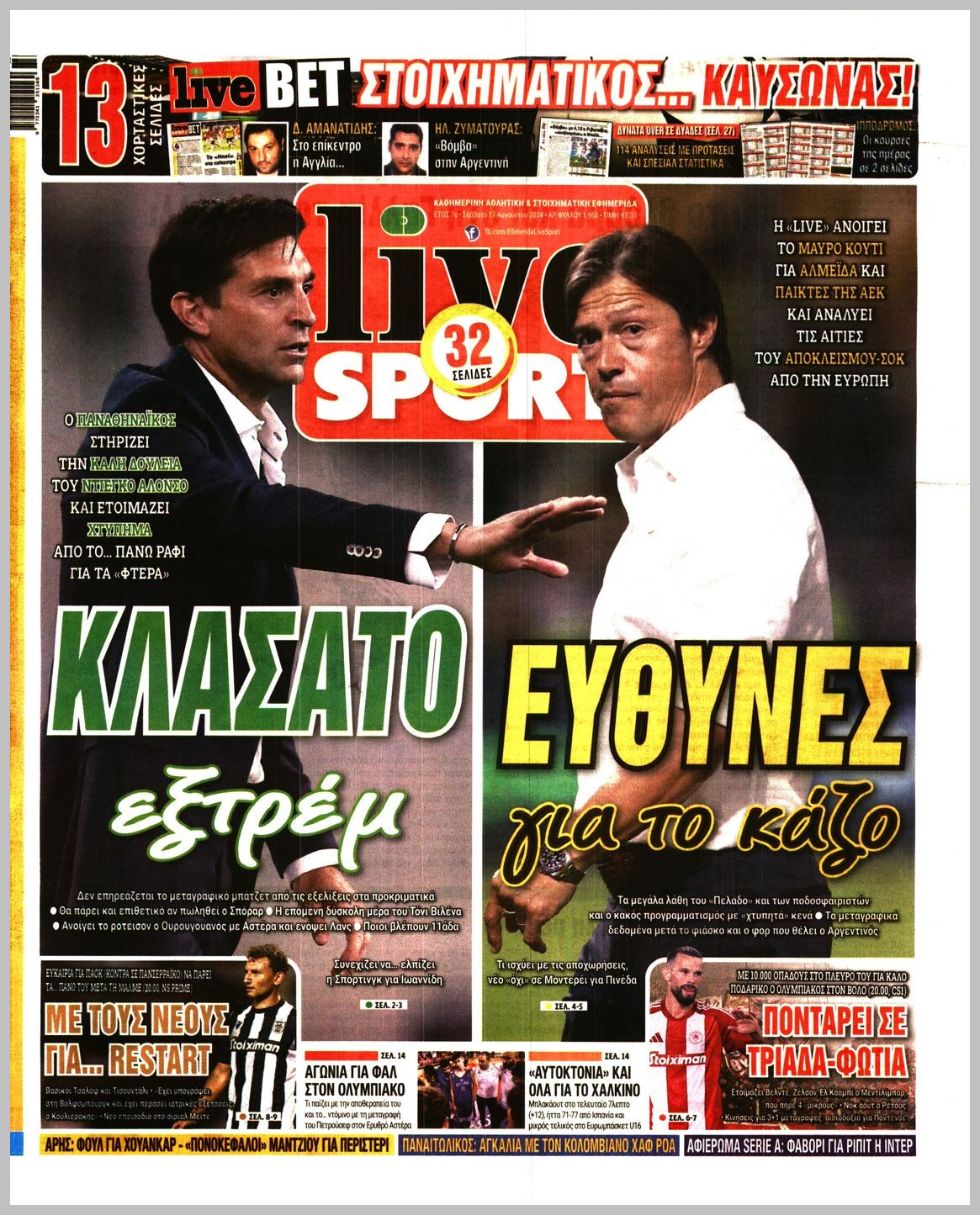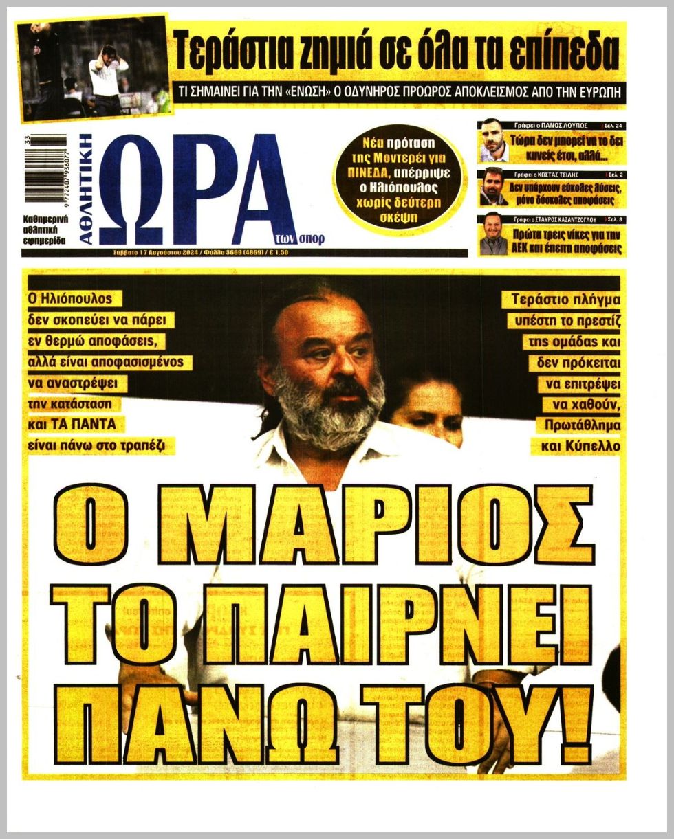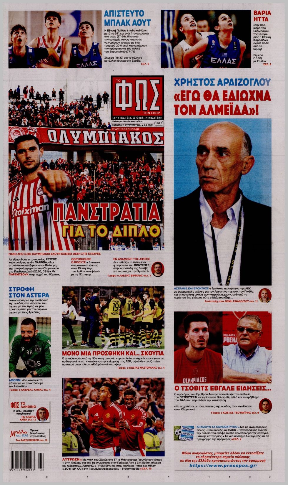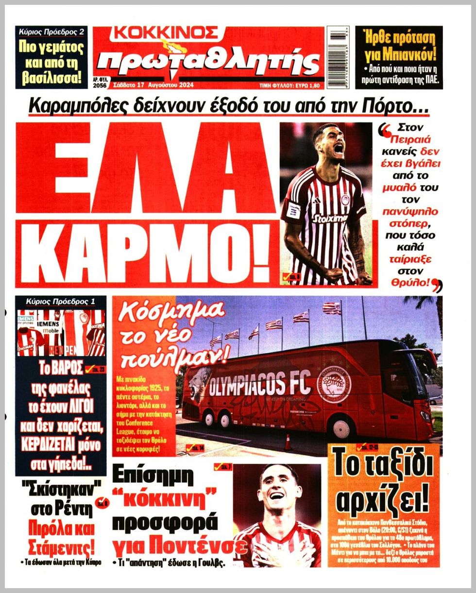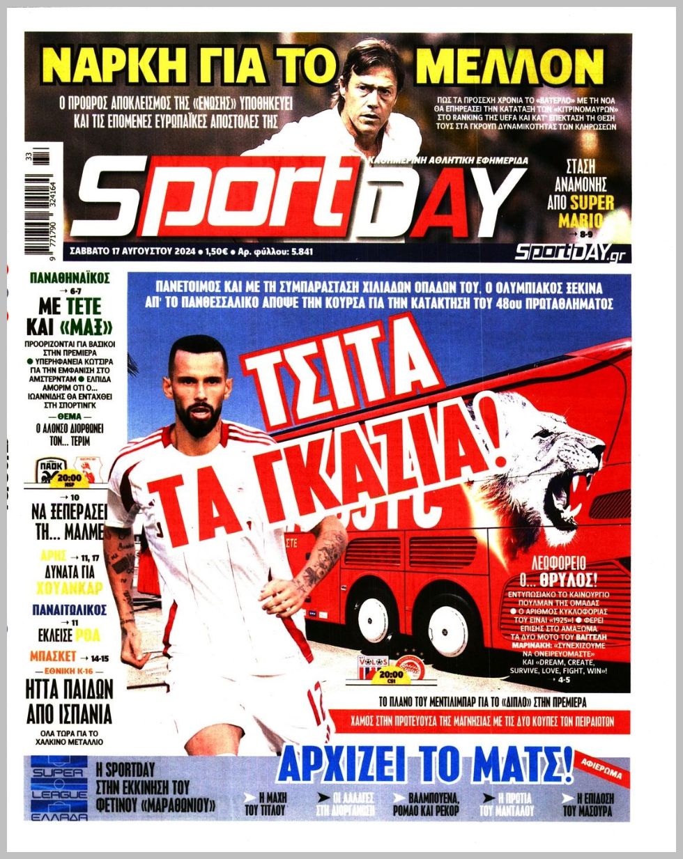 Τα αθλητικά πρωτοσέλιδα του Σαββάτου (17/8)