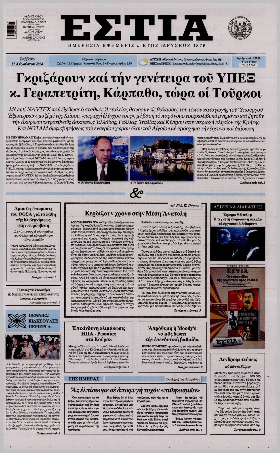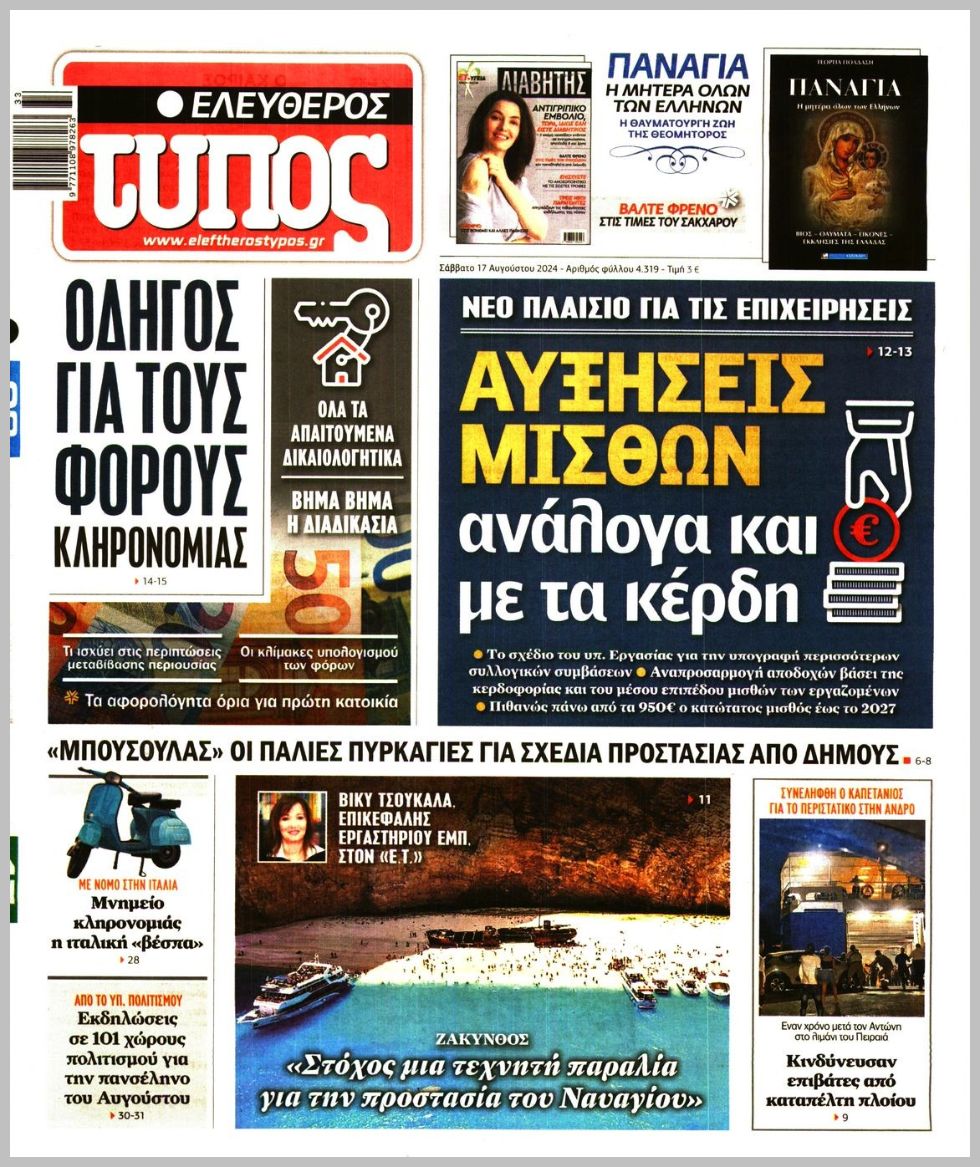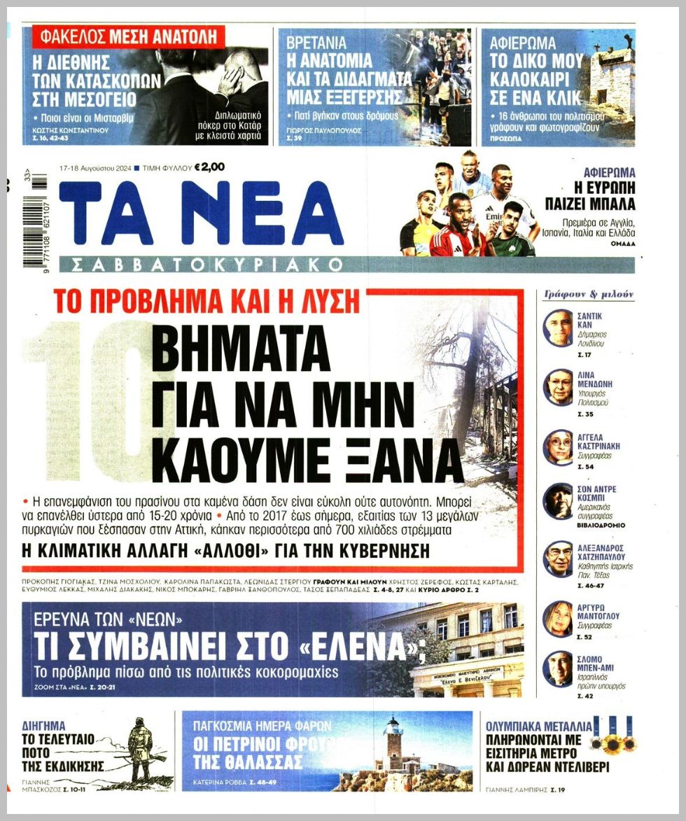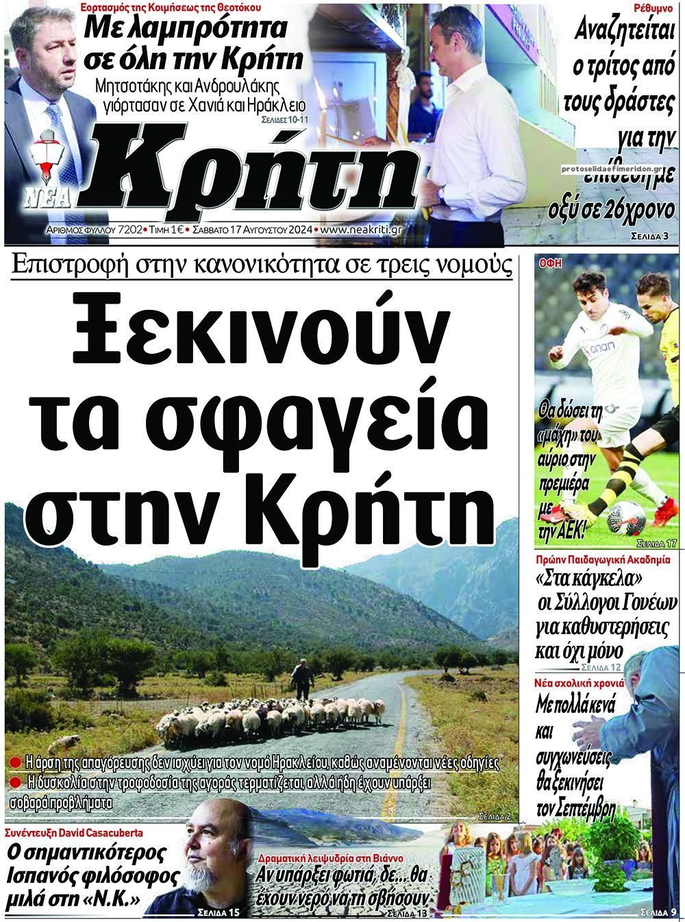 Τα πολιτικά πρωτοσέλιδα του Σαββάτου (17/8) σε Κρήτη και Αθήνα