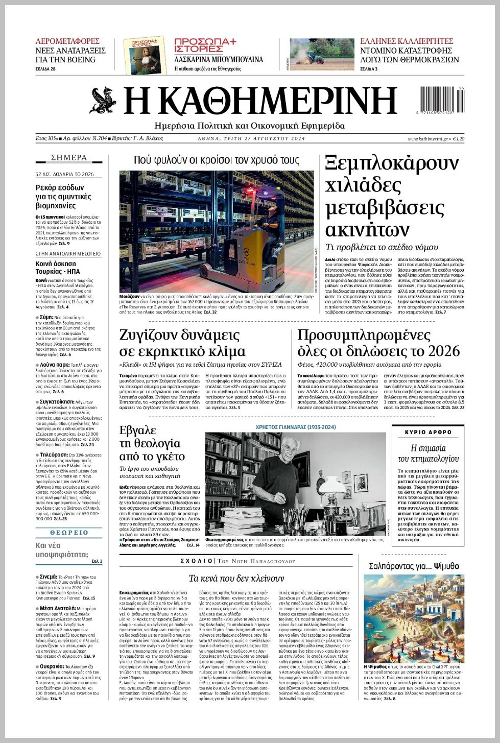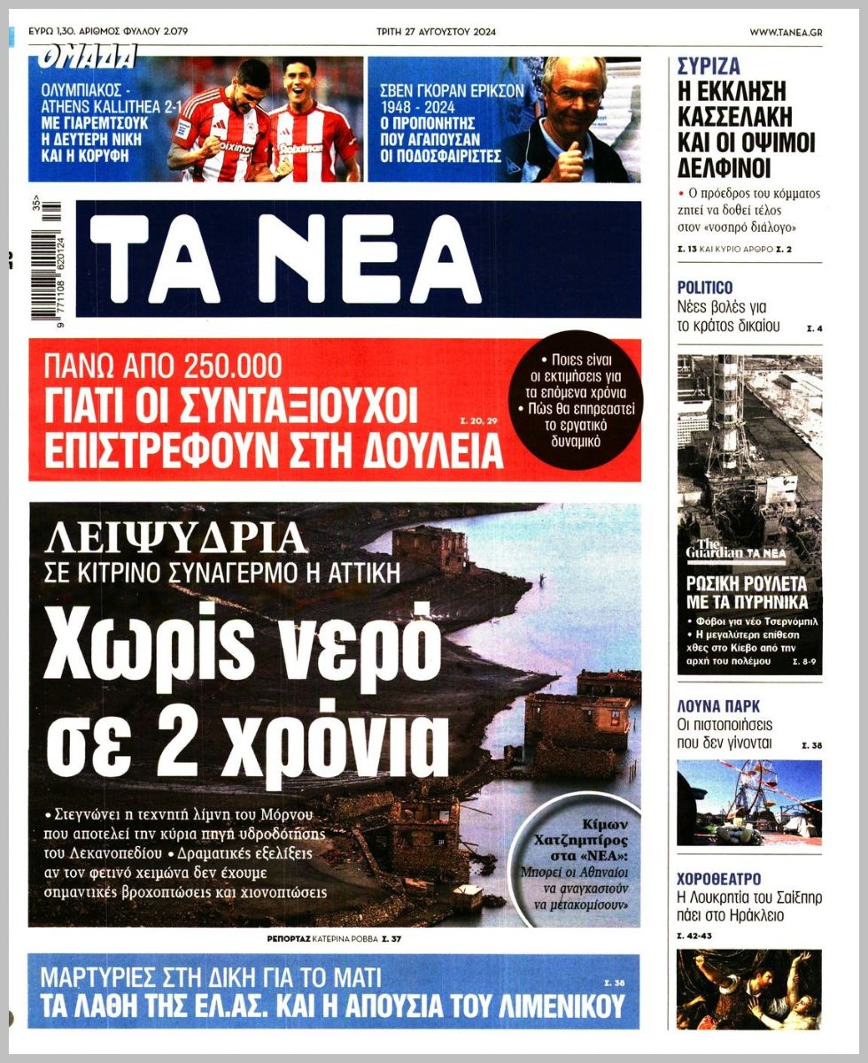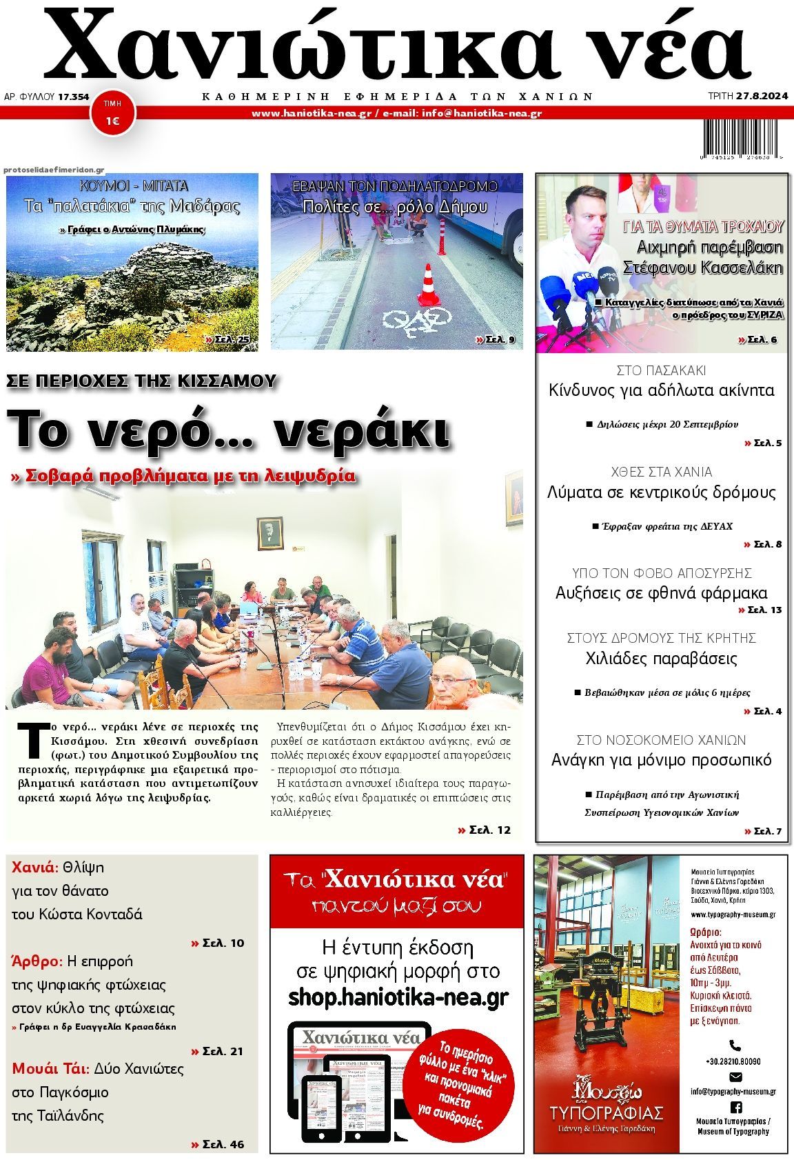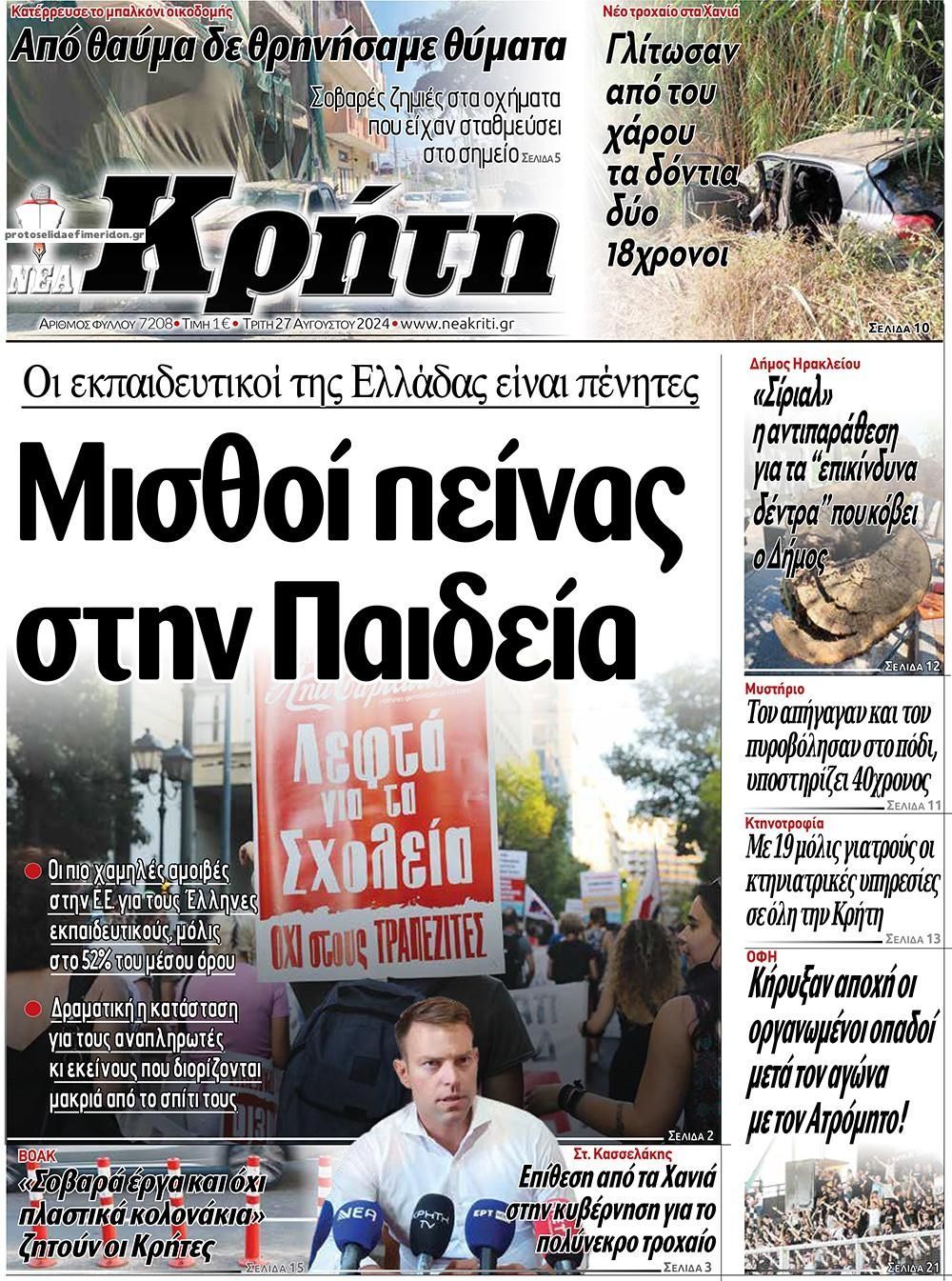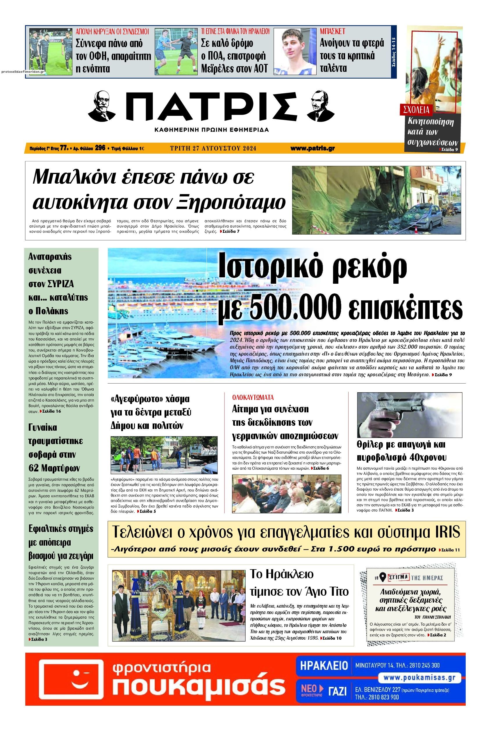 Τα πρωτοσέλιδα της Τρίτης (27/8) σε Κρήτη και Αθήνα