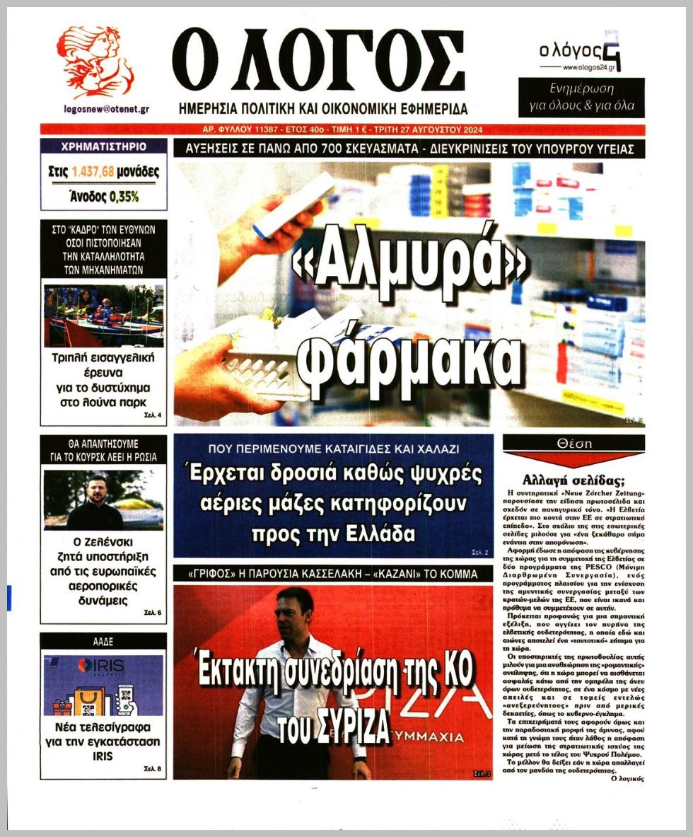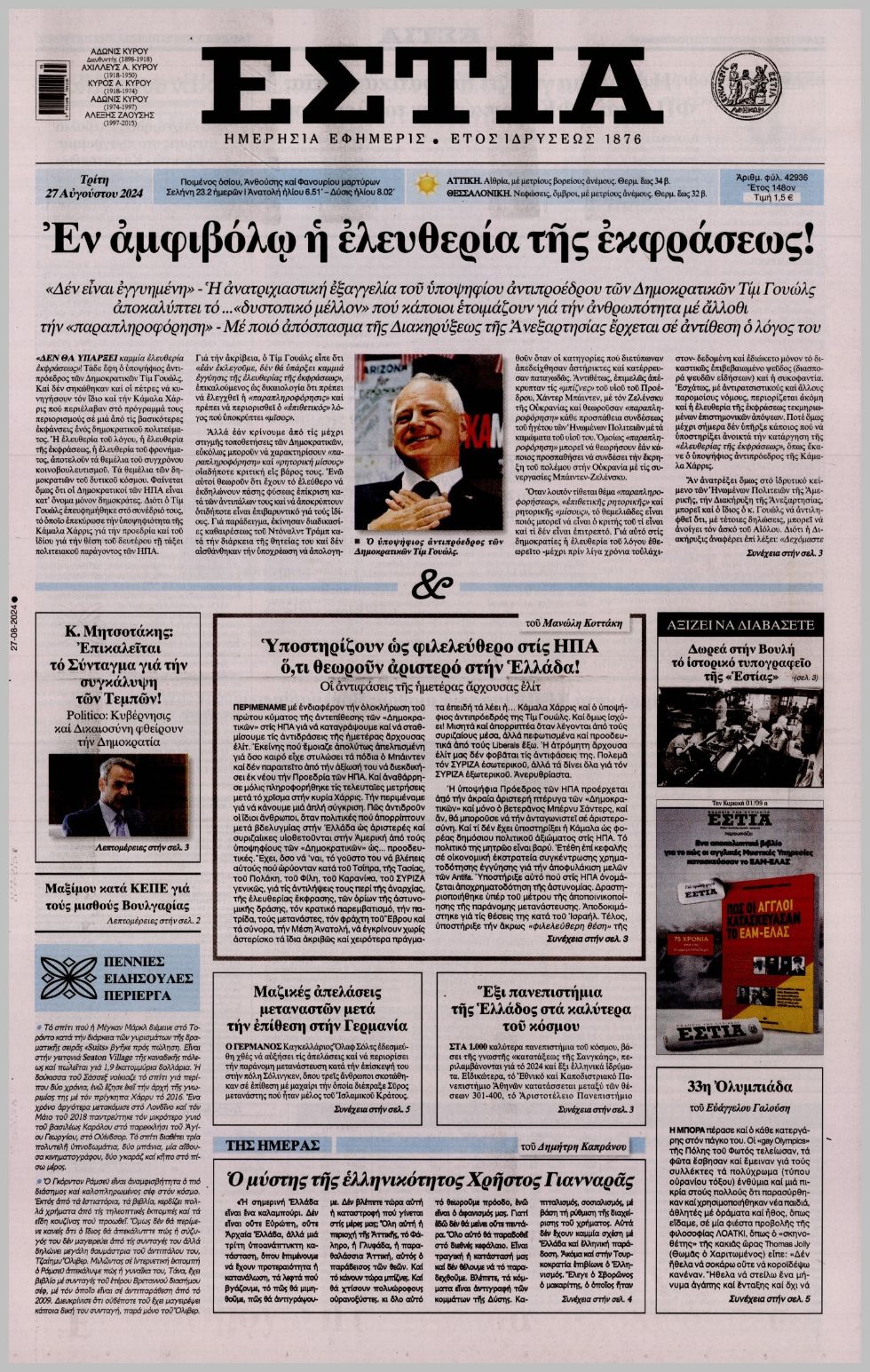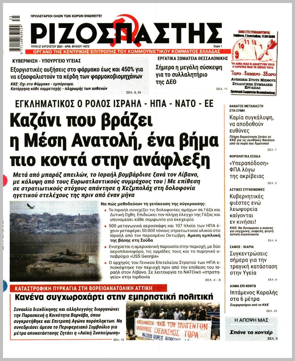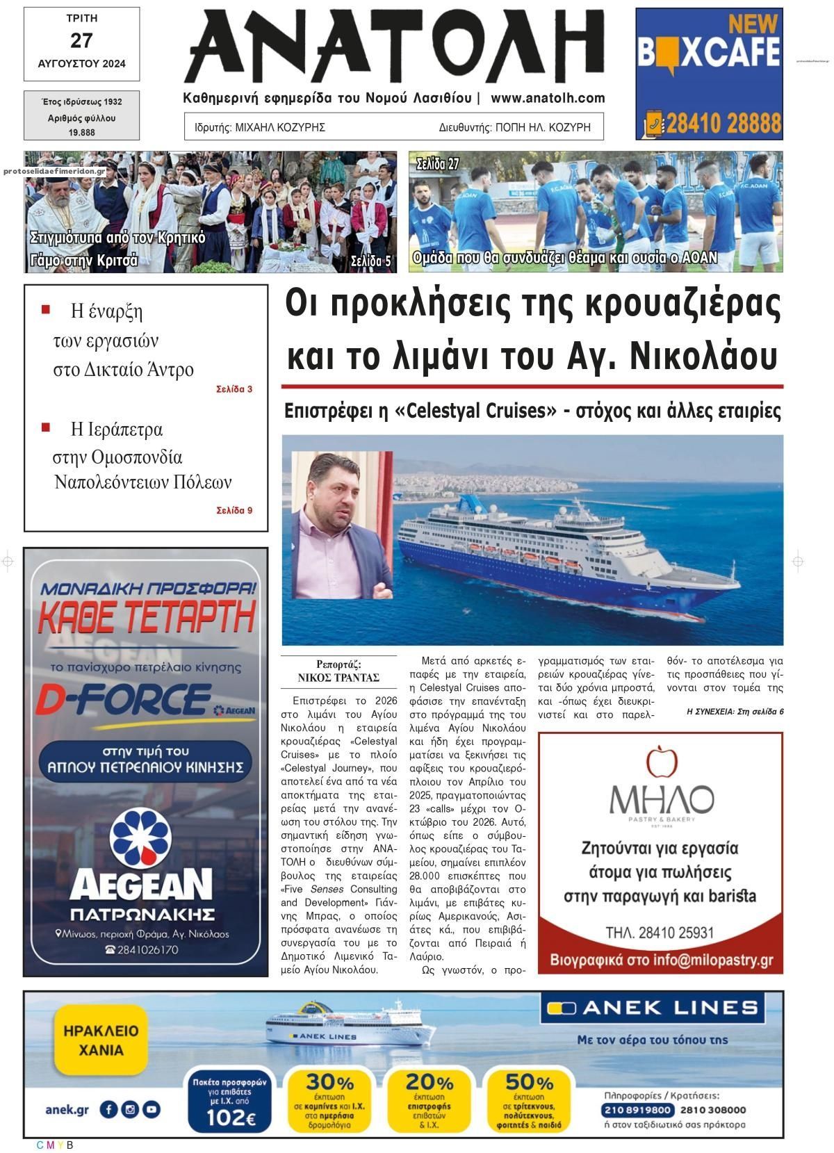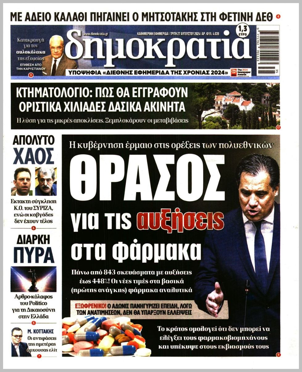 Τα πρωτοσέλιδα της Τρίτης (27/8) σε Κρήτη και Αθήνα