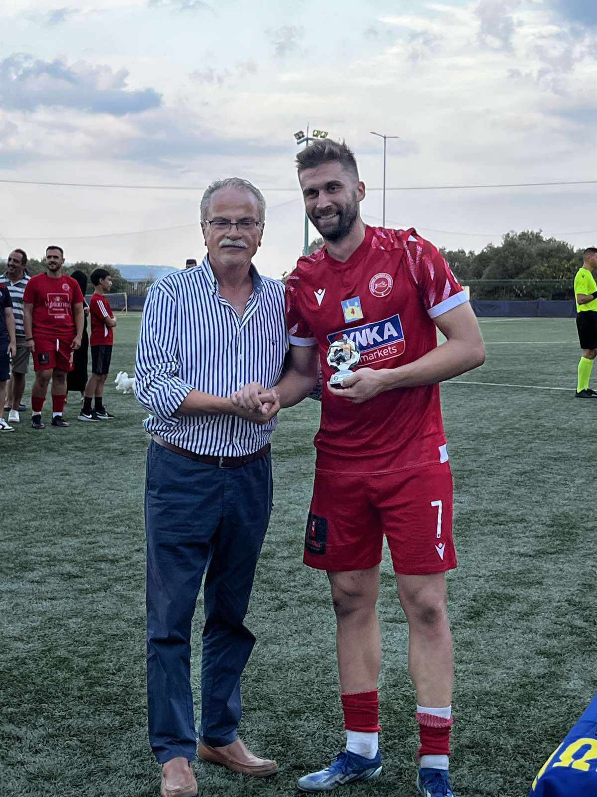Μετά το τέλος του αγώνα, ο Μάστορας πήρε την πλακέτα από τον Δήμαρχο Πλατανιά Γιάννη Μαλανδράκη.