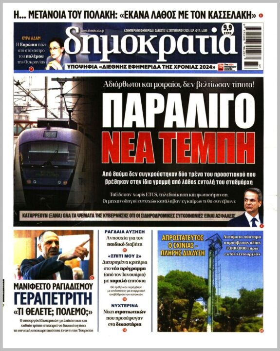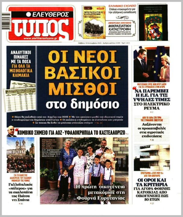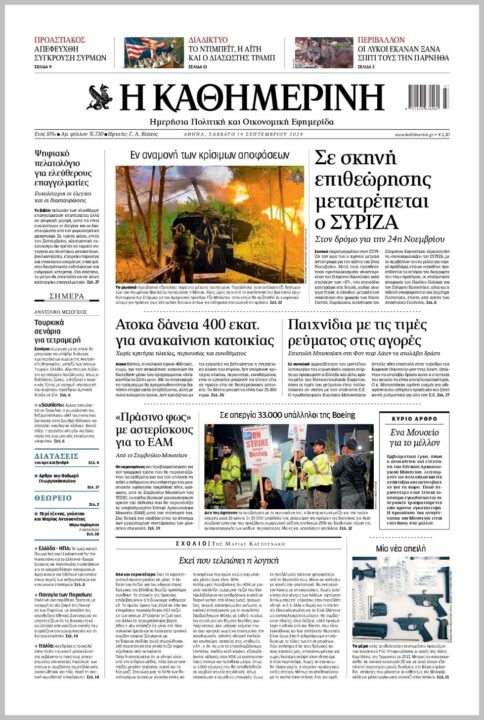 Τα πολιτικά πρωτοσέλιδα του Σαββάτου (14/9) σε Κρήτη και Αθήνα