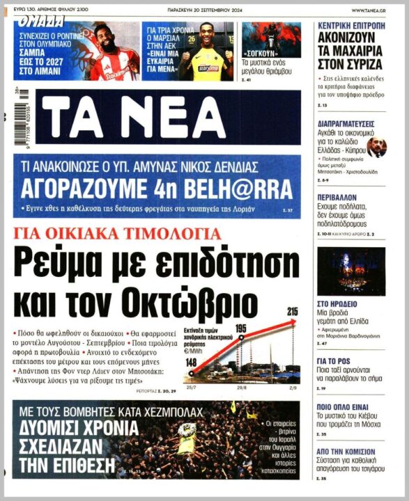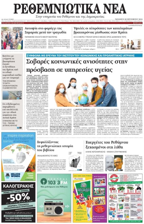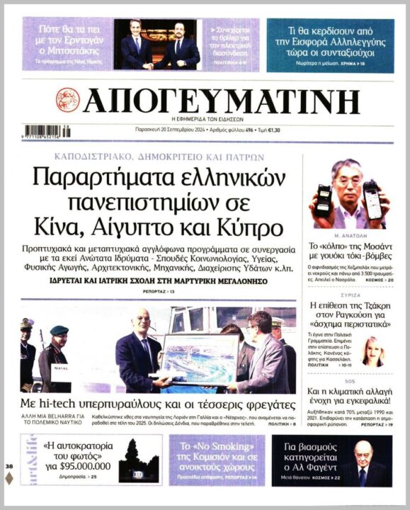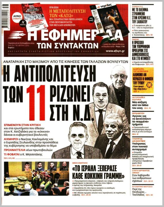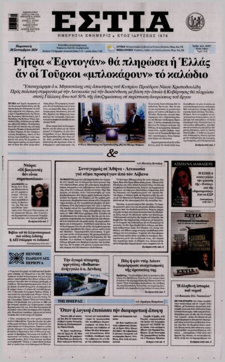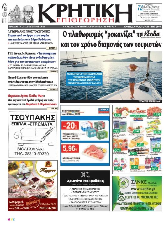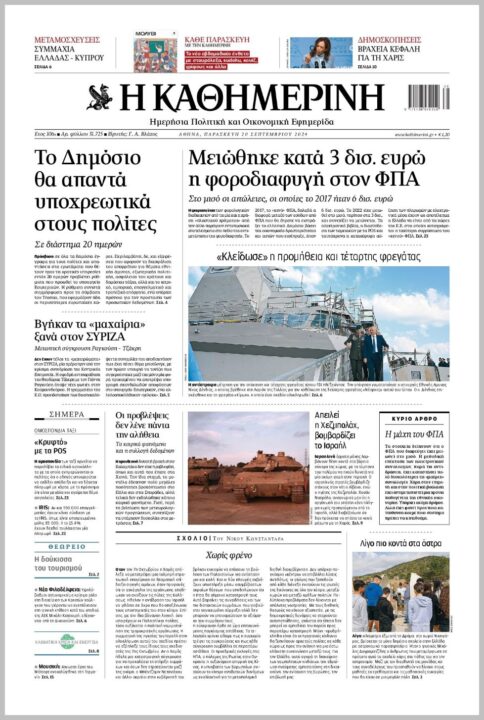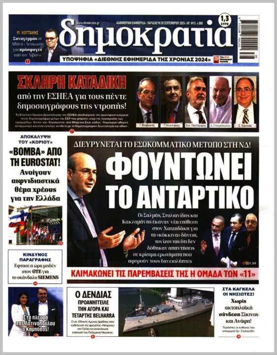 Τα πολιτικά πρωτοσέλιδα της Παρασκευής (20/9) σε Κρήτη και Αθήνα