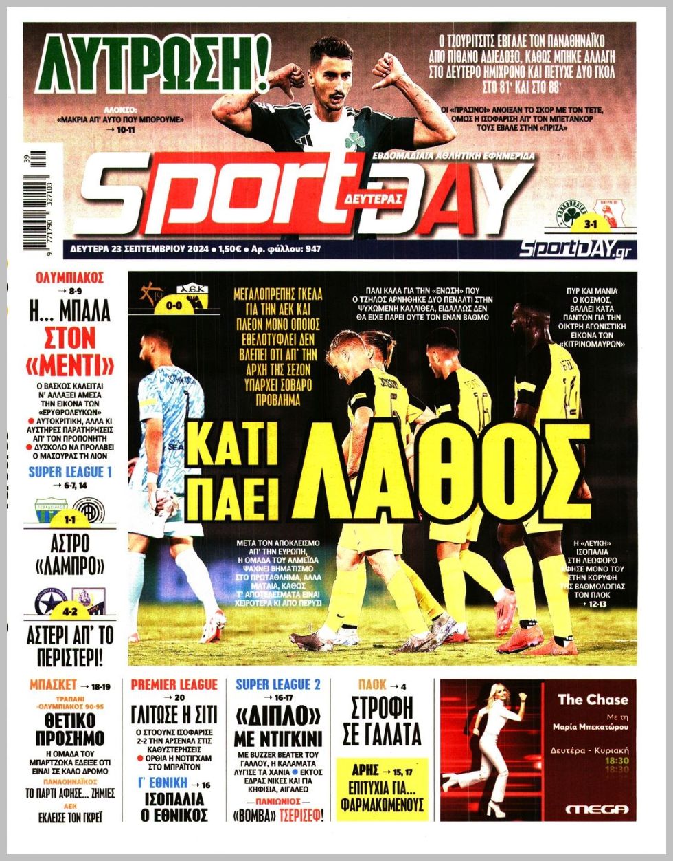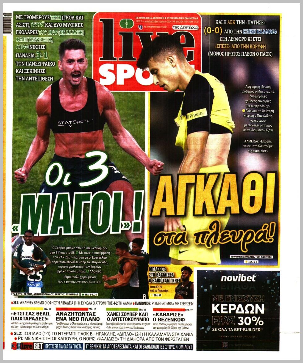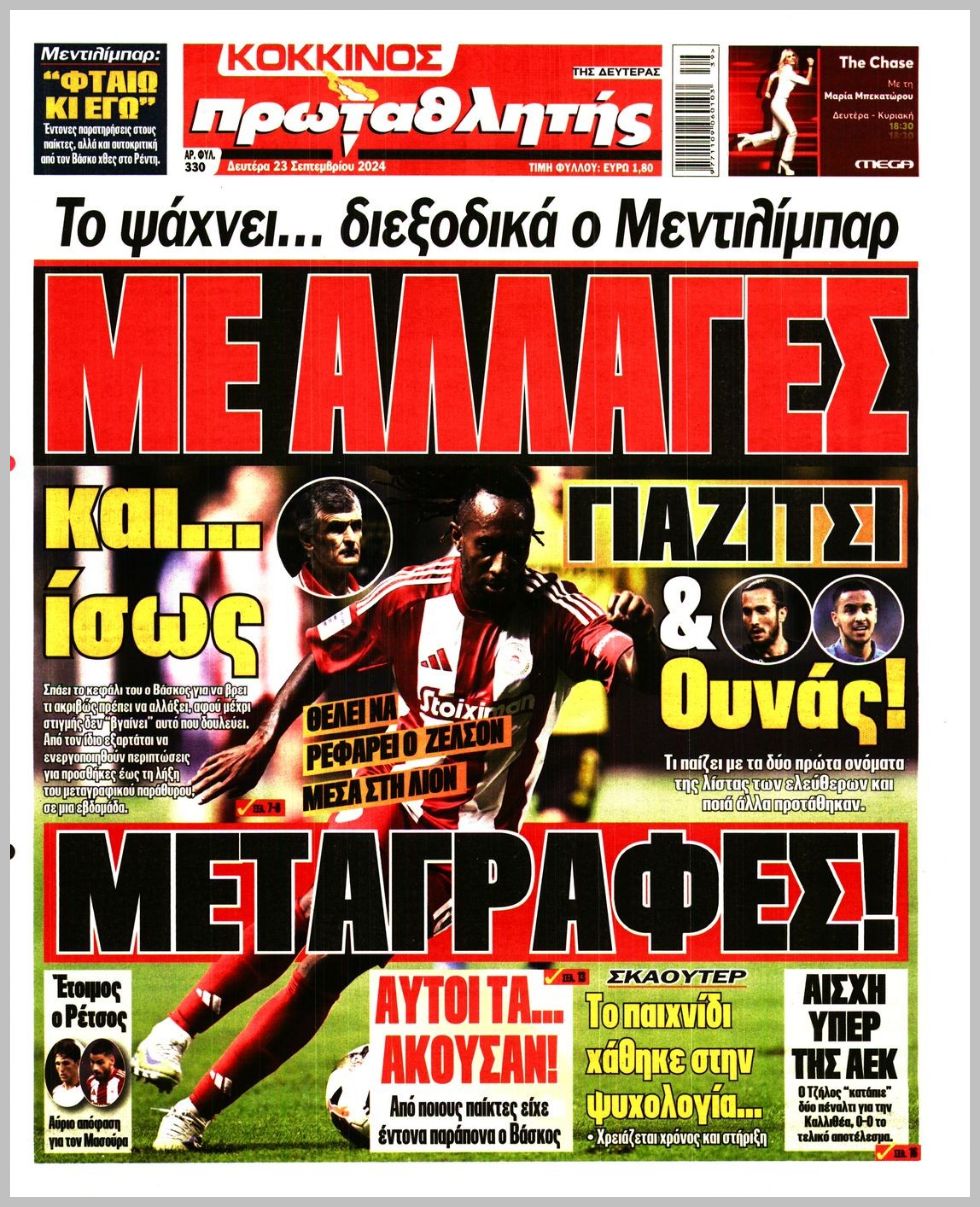 Τα αθλητικά πρωτοσέλιδα της Δευτέρας (23/9)
