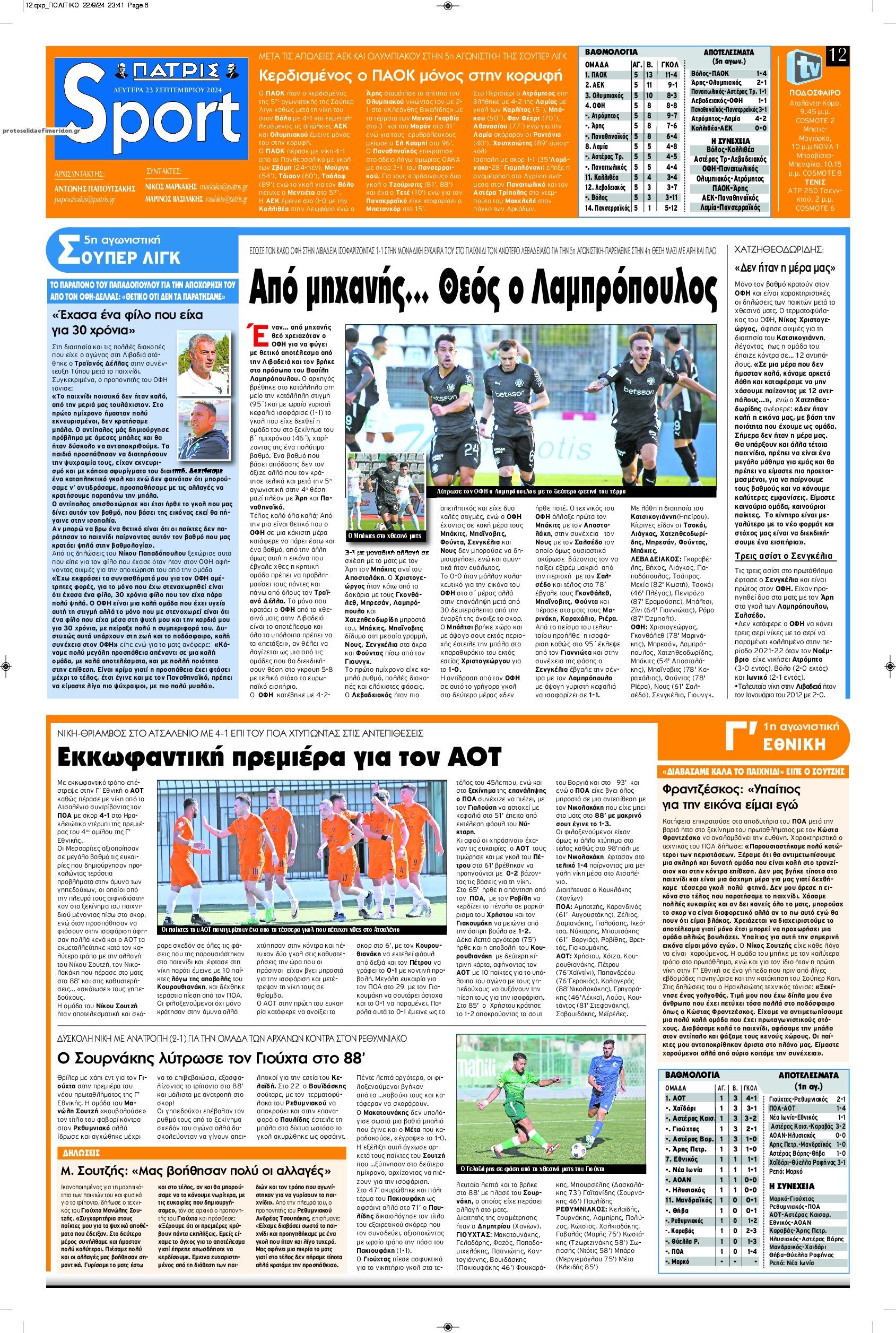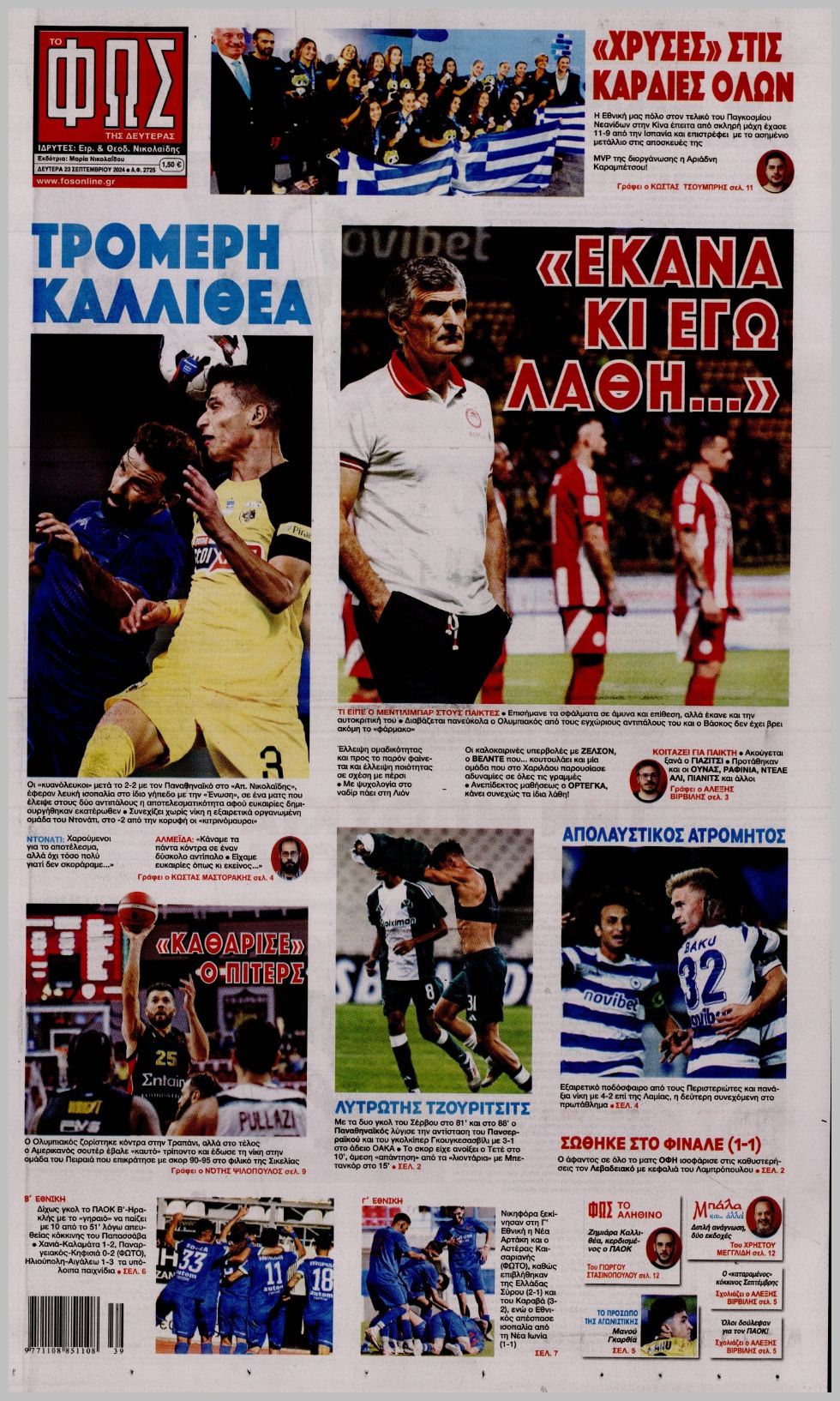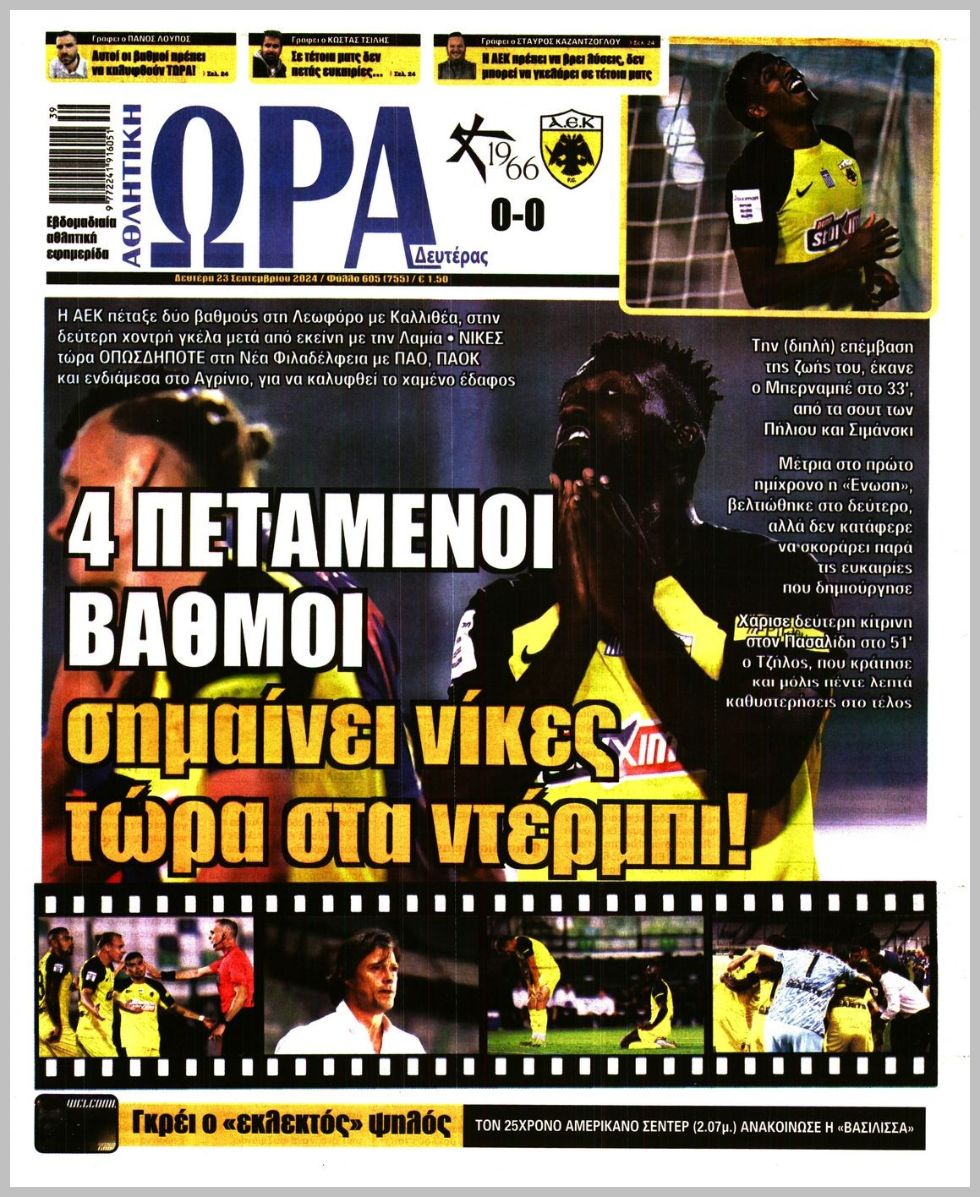 Τα αθλητικά πρωτοσέλιδα της Δευτέρας (23/9)