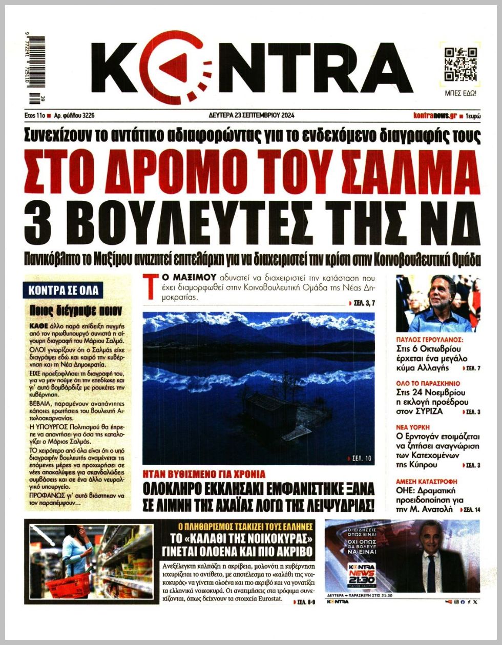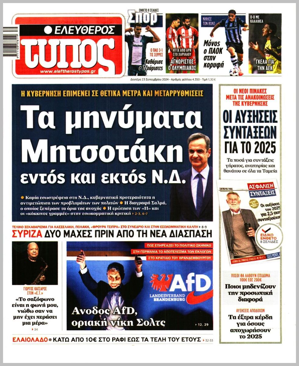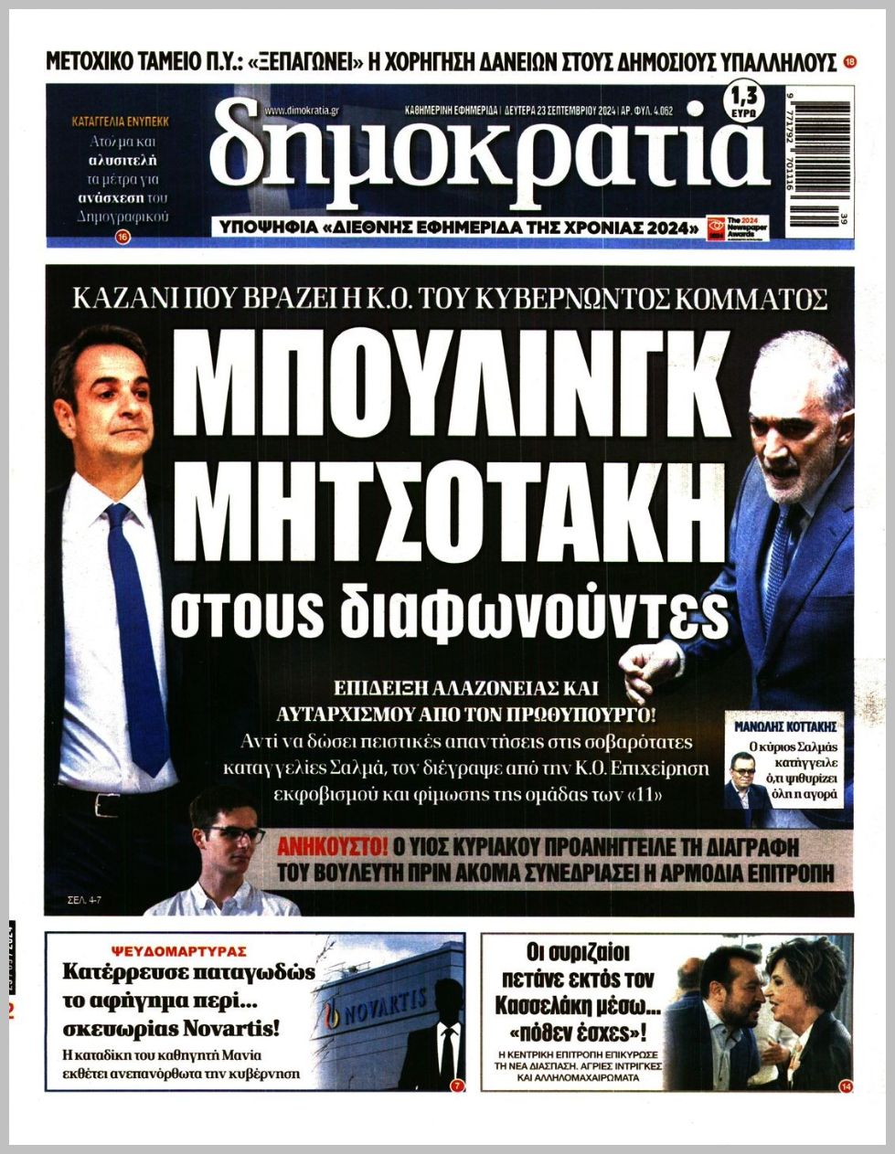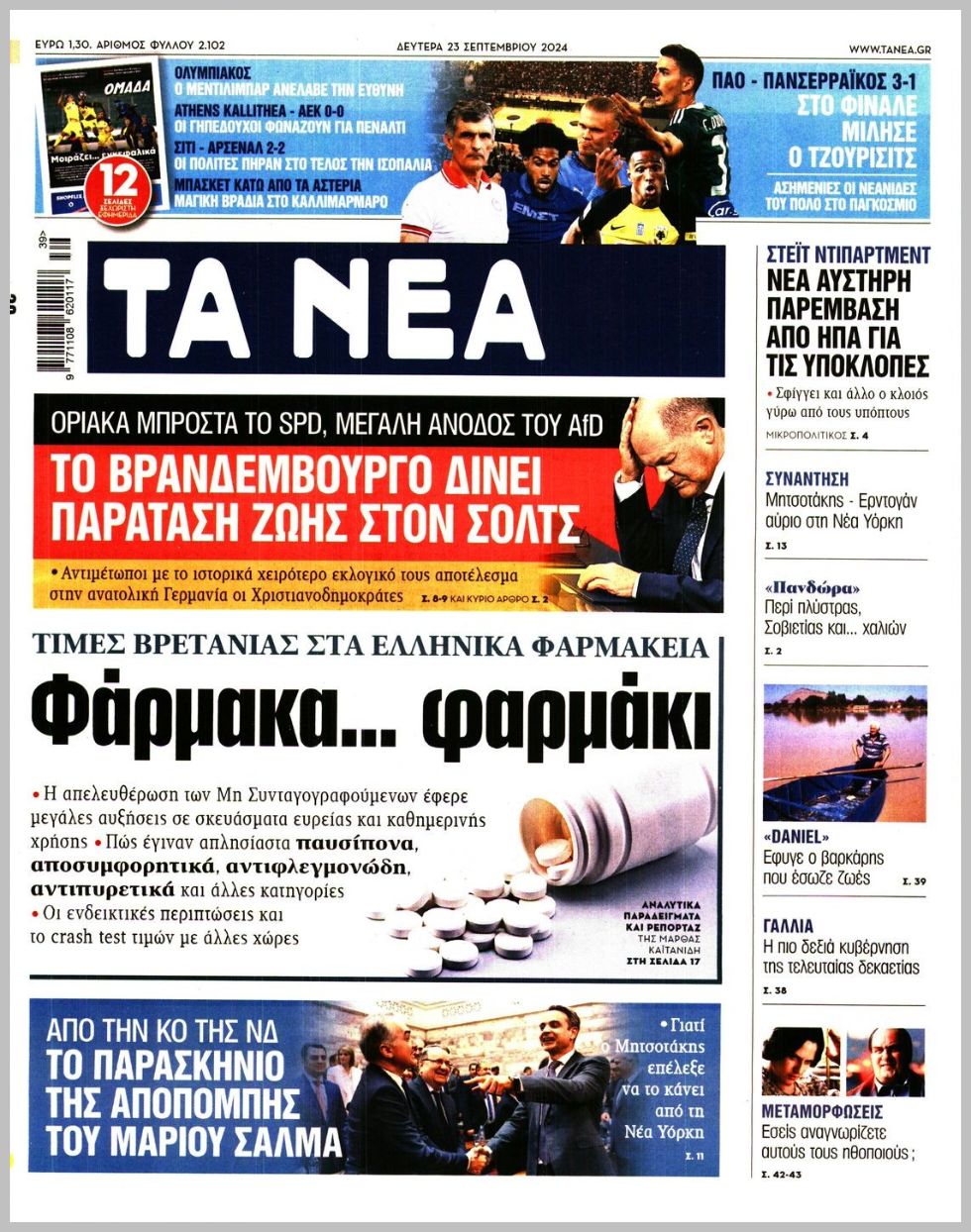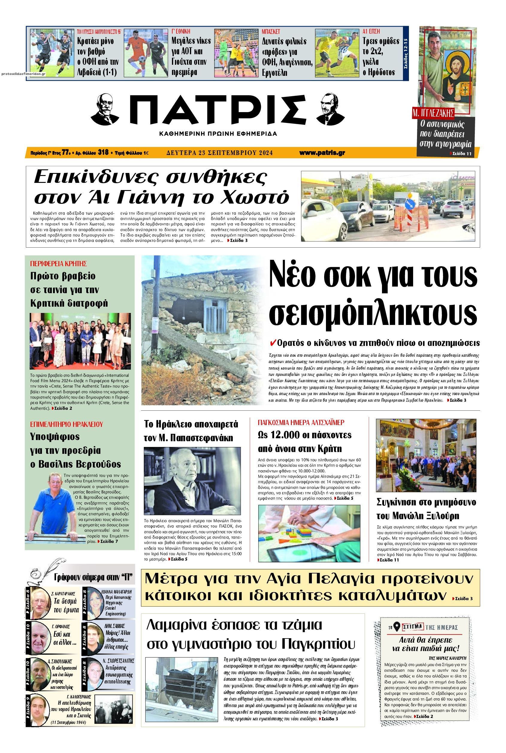Τα πρωτοσέλιδα της Δευτέρας (23/9) σε Κρήτη και Αθήνα