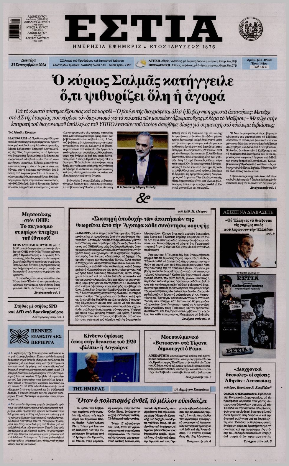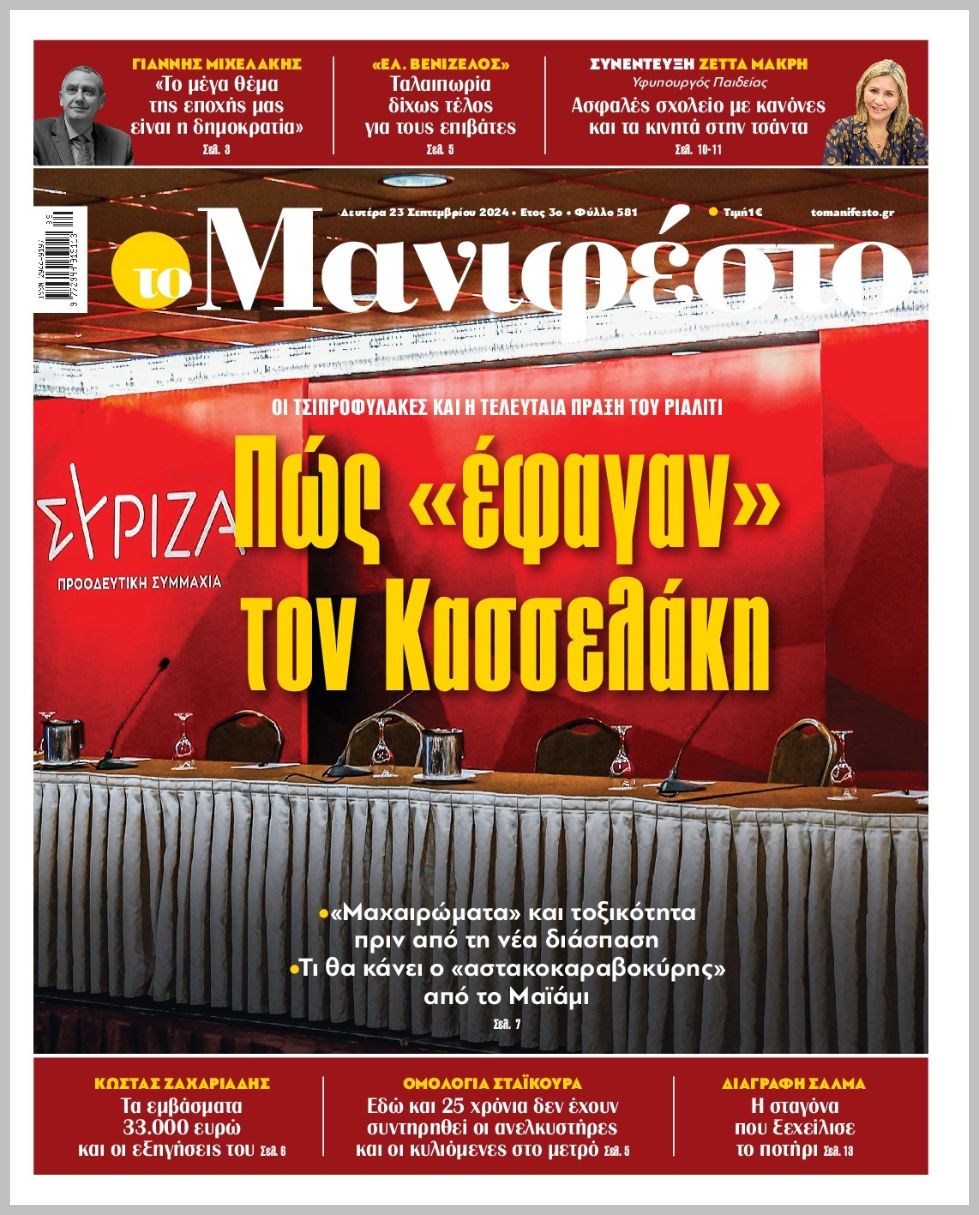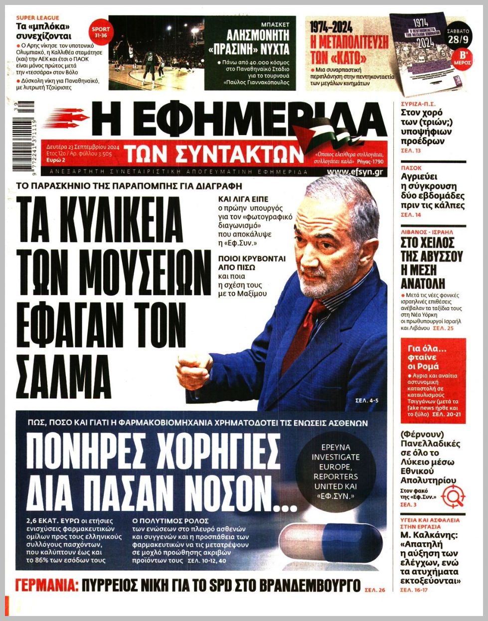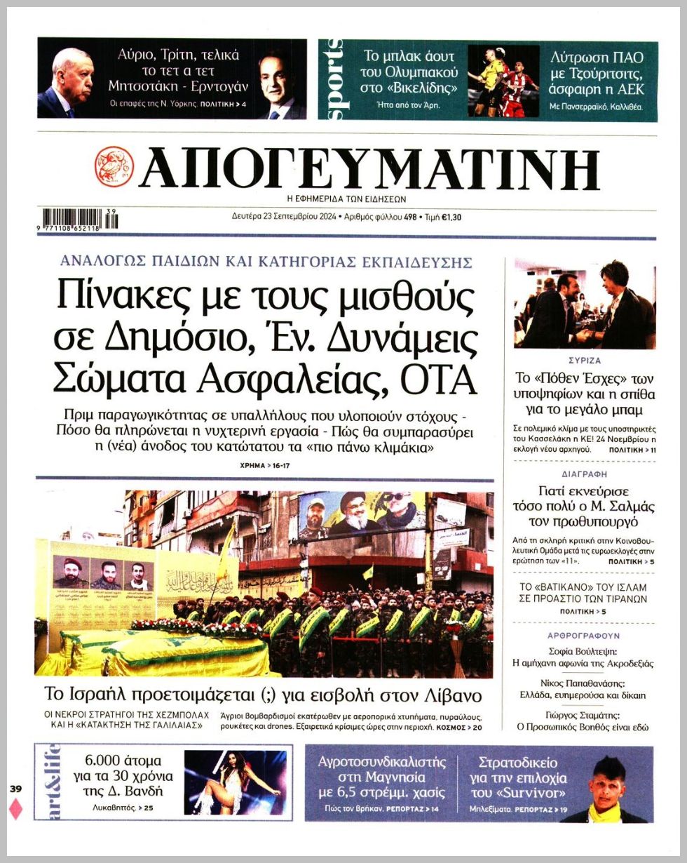 Τα πρωτοσέλιδα της Δευτέρας (23/9) σε Κρήτη και Αθήνα