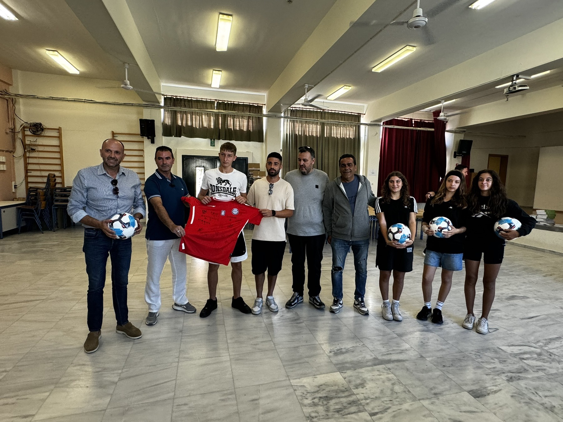 Παράλληλα από πλευράς ΠΑΕ δόθηκε μια φανέλα με υπογραφές ενώ μοίρασαν και μπάλες.