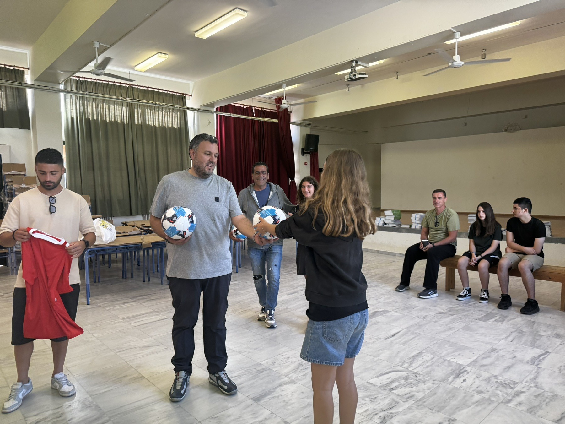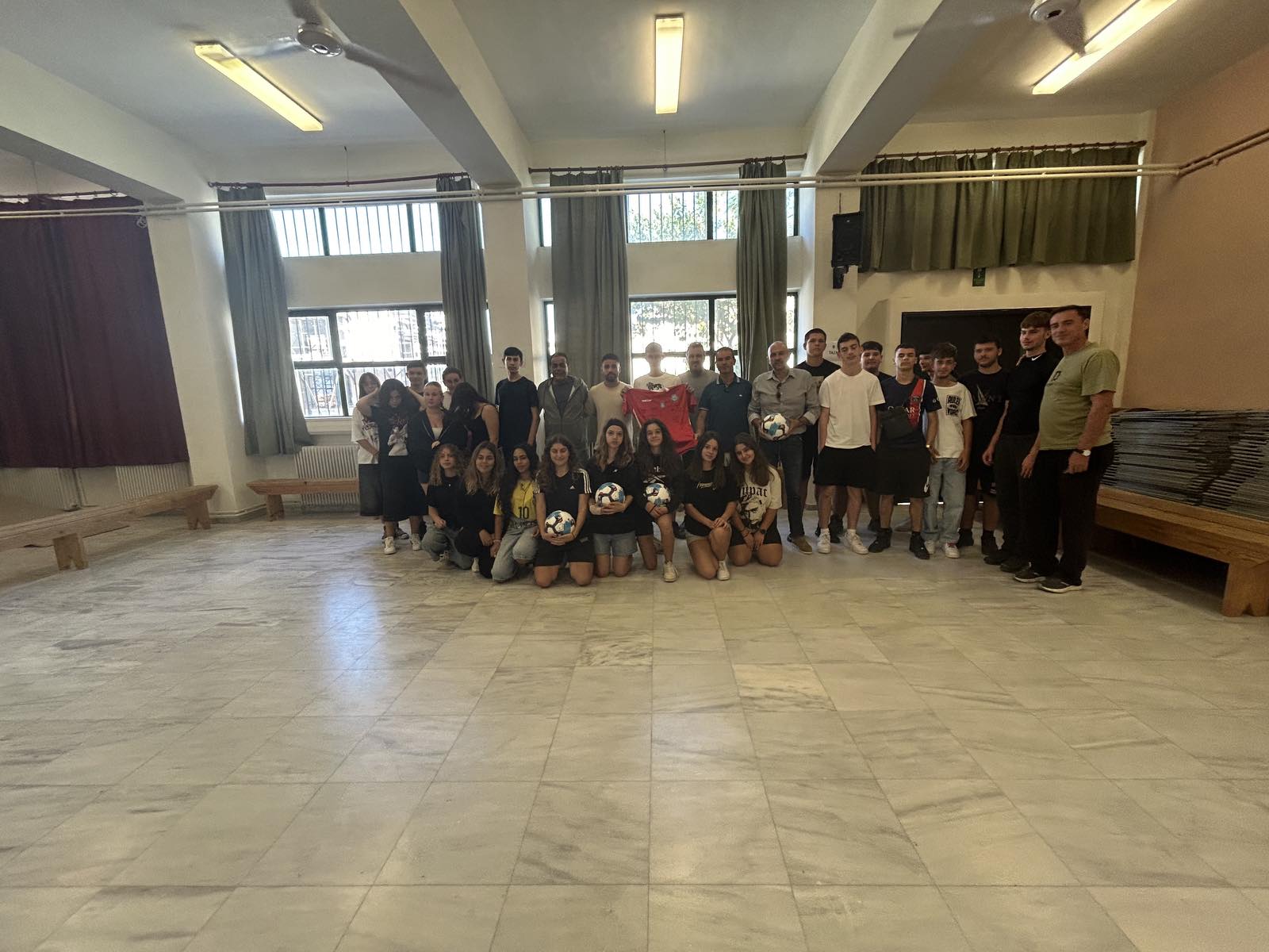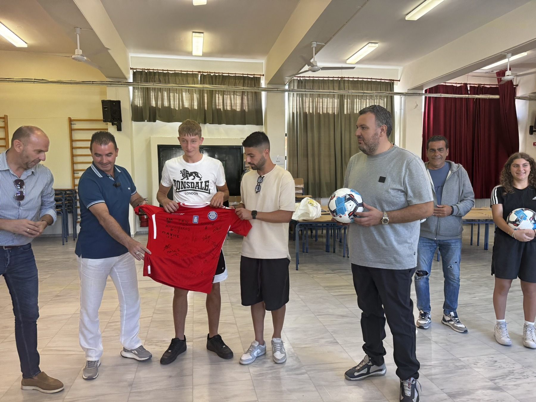 Παράλληλα από πλευράς ΠΑΕ δόθηκε μια φανέλα με υπογραφές ενώ μοίρασαν και μπάλες.