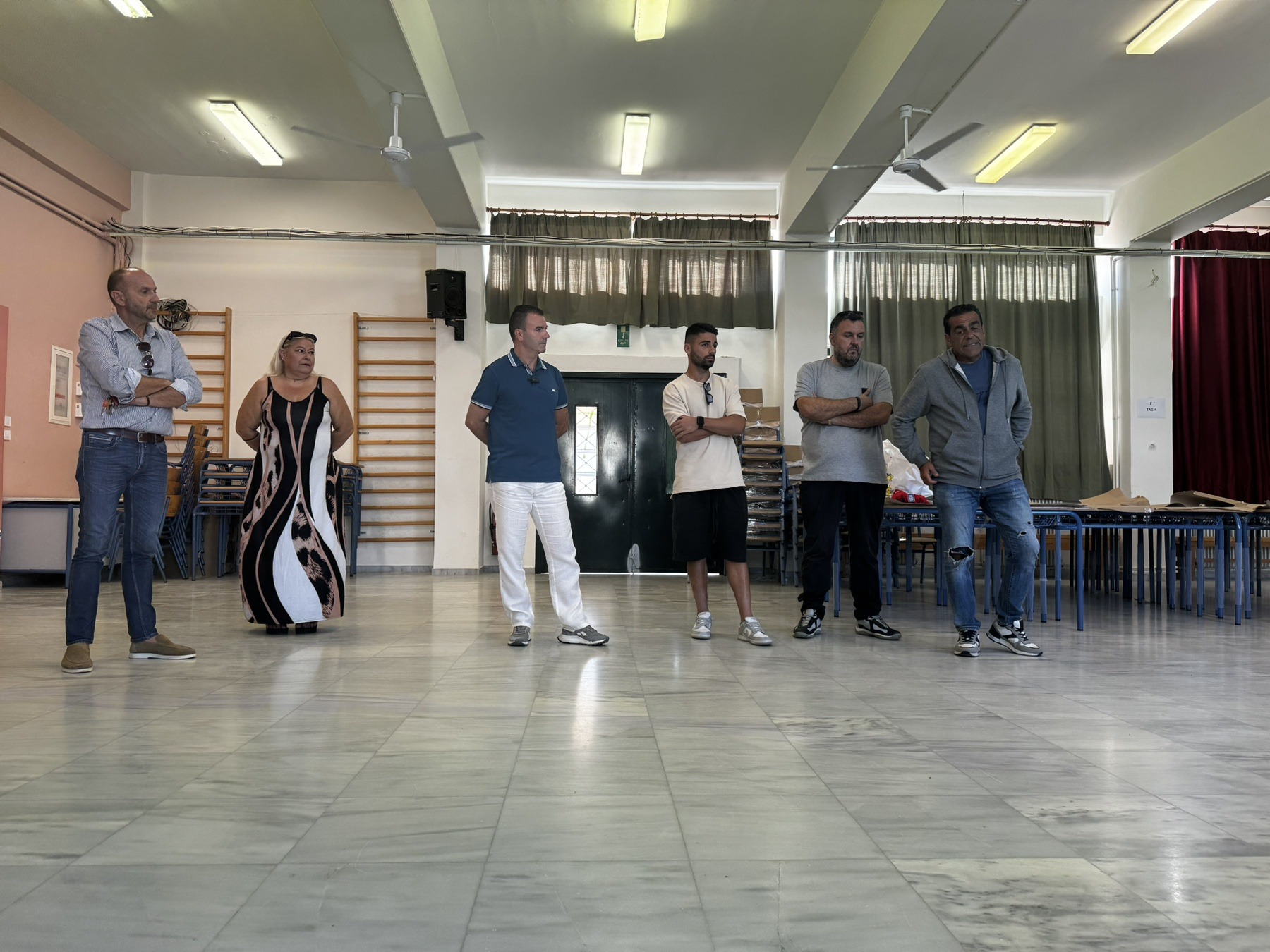 Τους υποδέχθηκαν ο Διευθυντής του σχολείου, Παύλος Θεόδωρου, ο γυμναστής Μιχάλης Κωσταντινόπουλος και οι εκπρόσωποι Συλλόγου Γονέων και Κηδεμόνων, Θωμάς Σαράφης και Έφη Ποντικάκη, ενώ έγιναν δεκτοί με ενθουσιασμό από τους μαθητές.