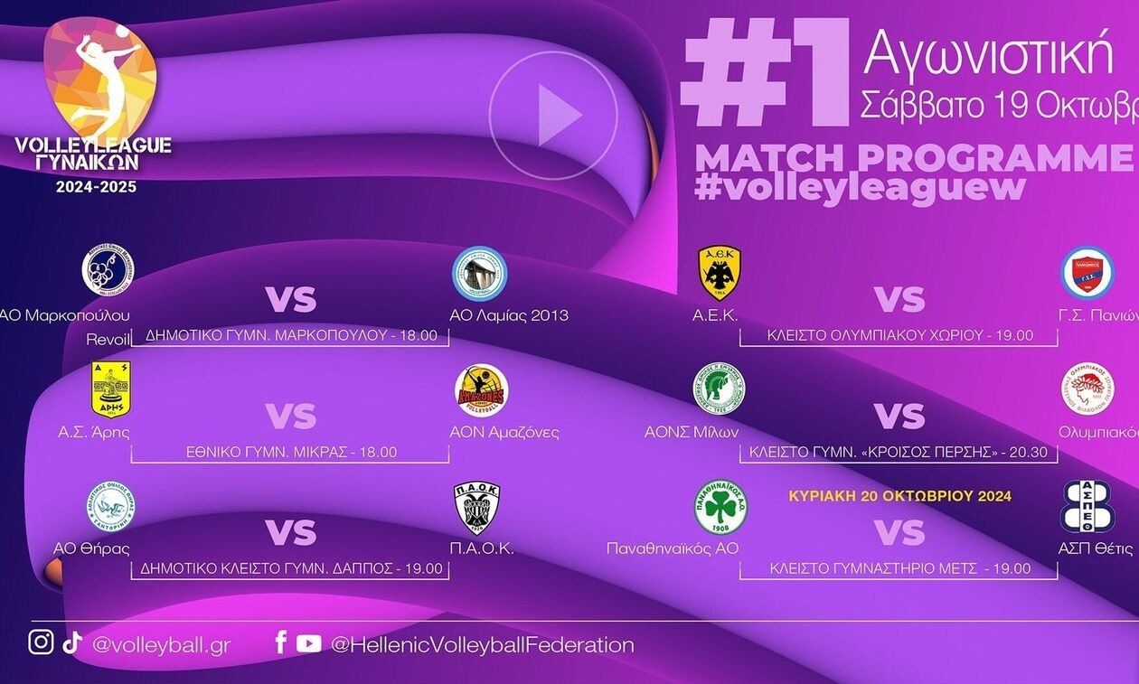 Το πρόγραμμα της πρεμιέρας στην Volley League Γυναικών