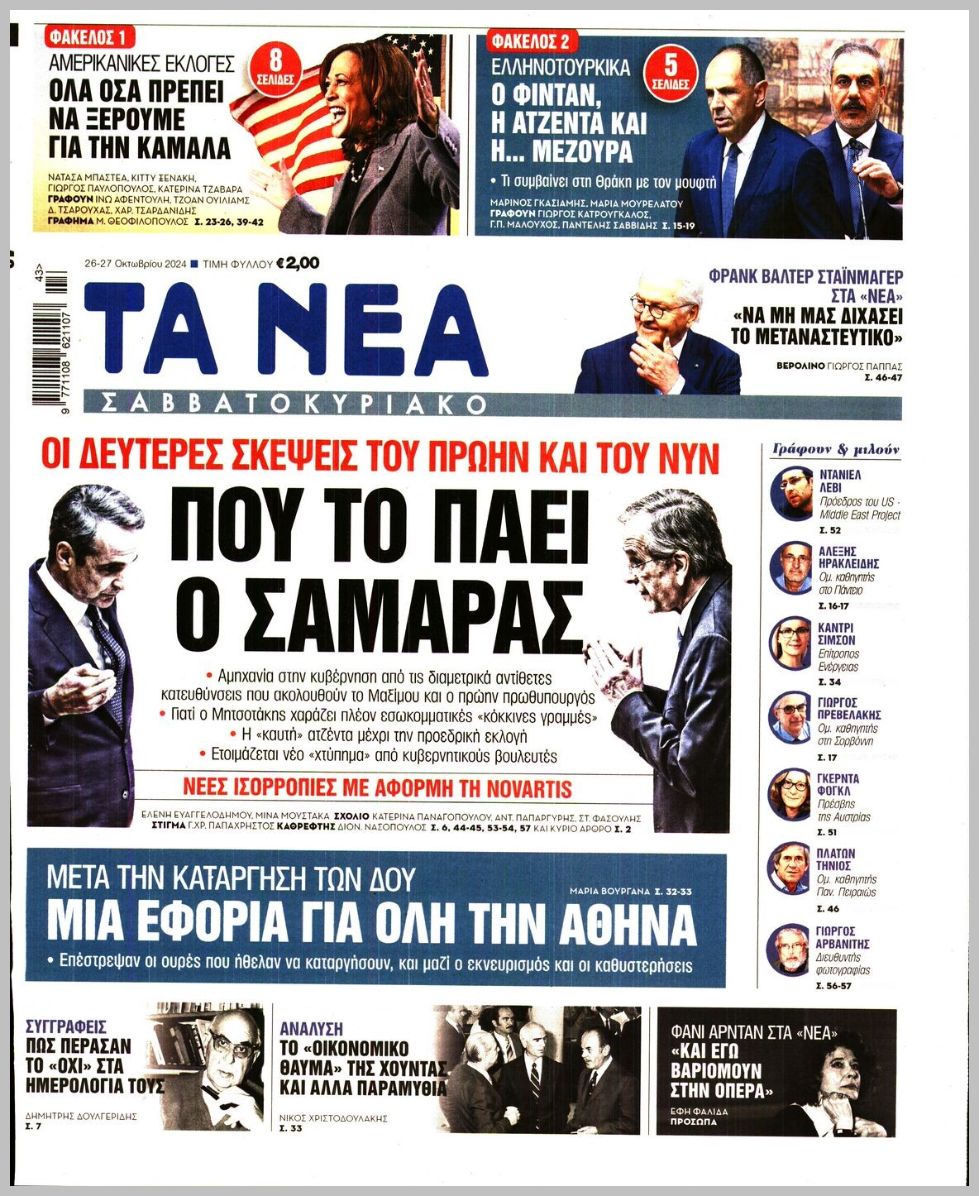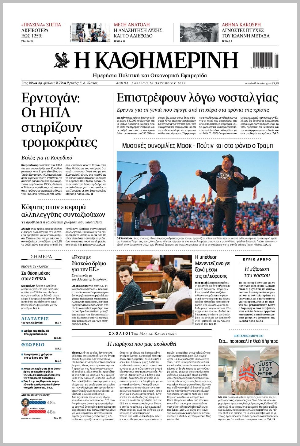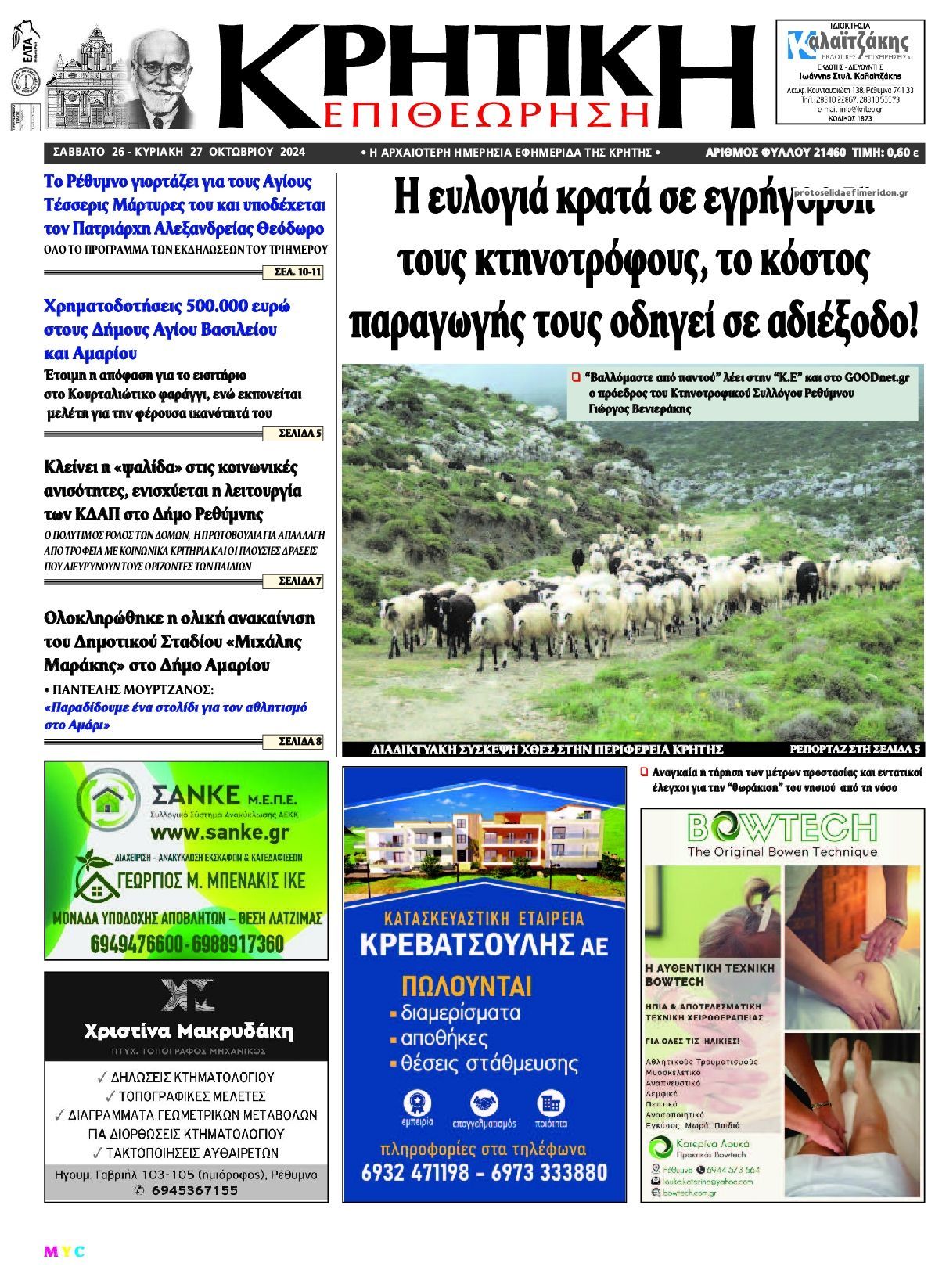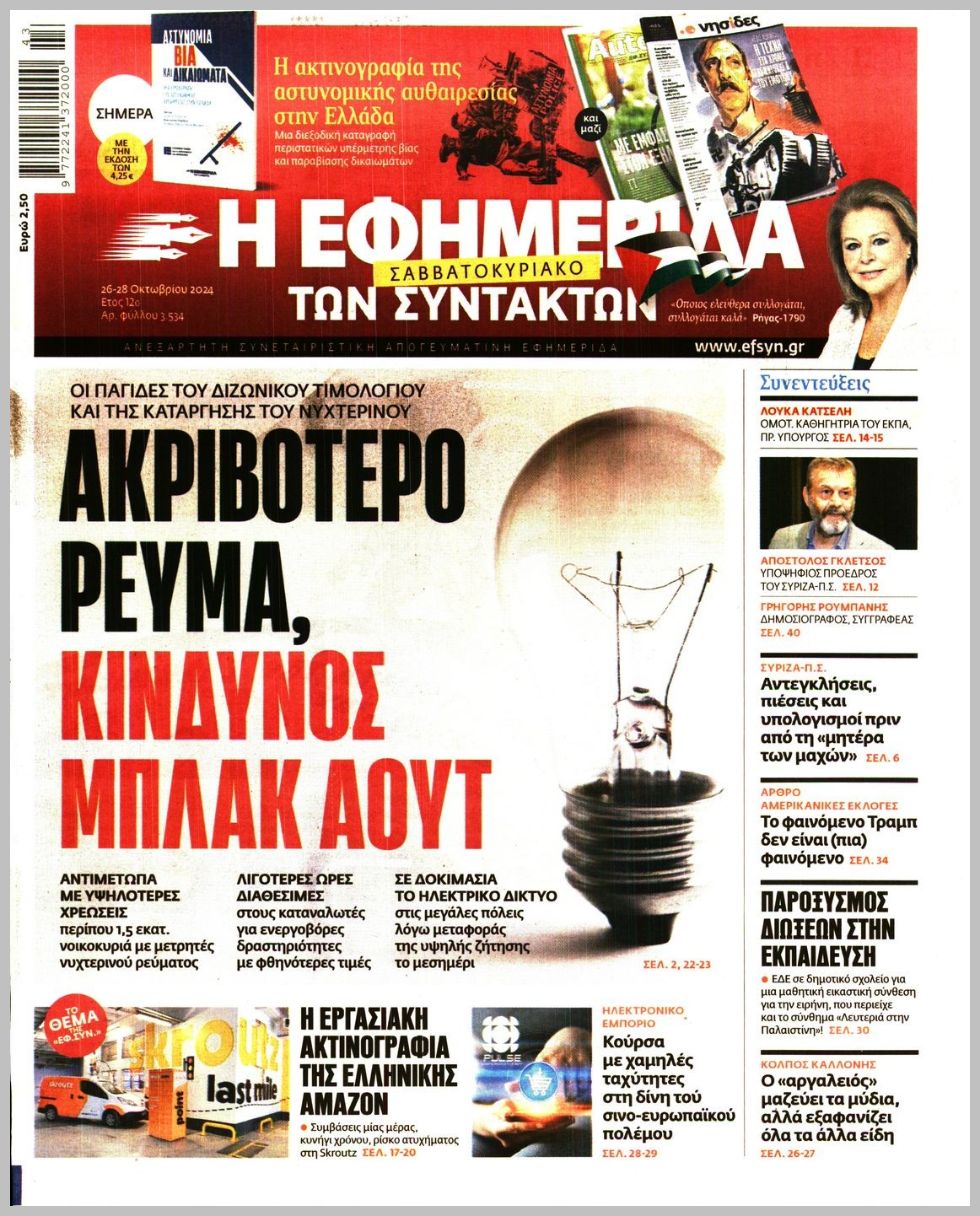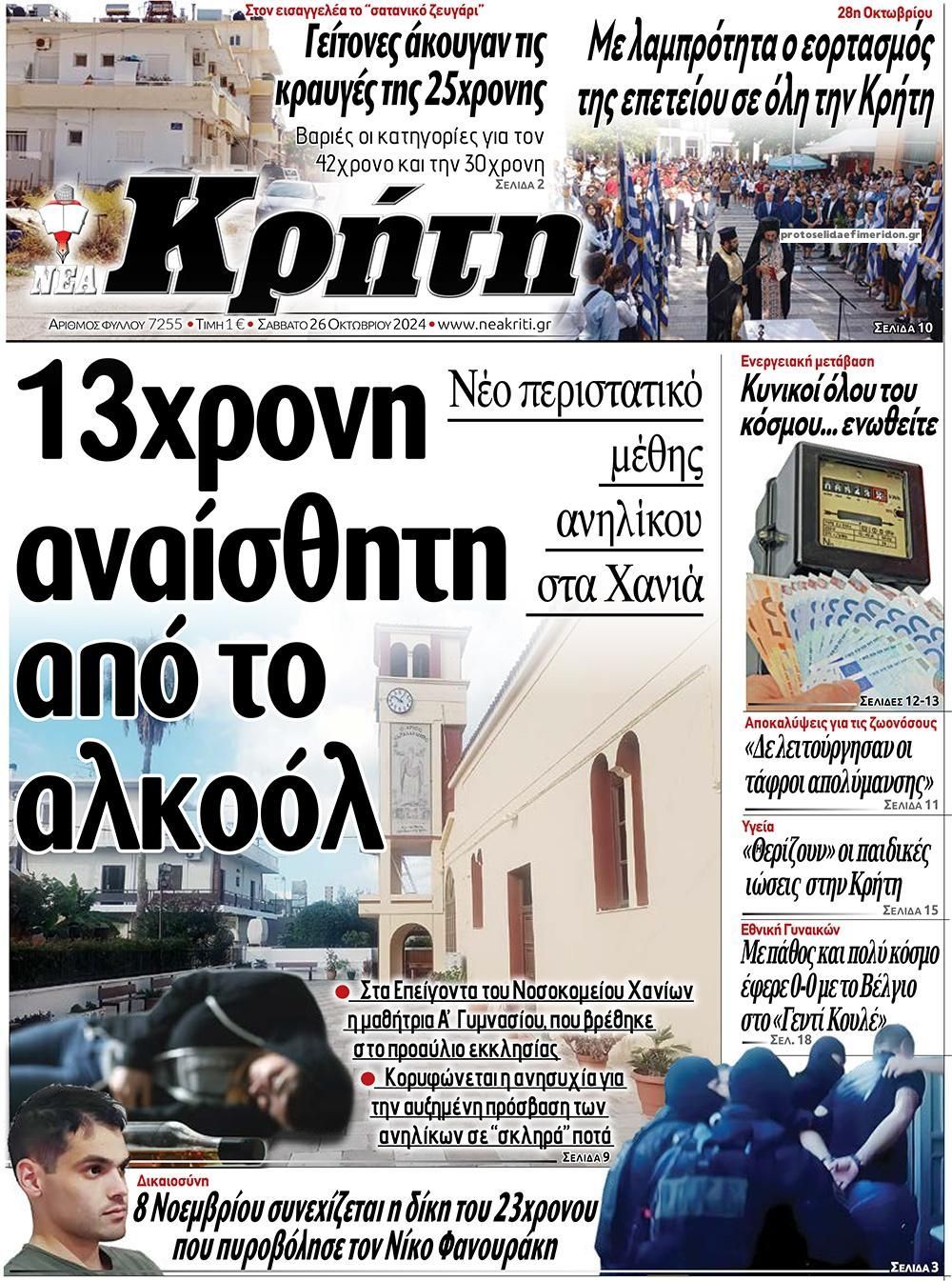 Τα πρωτοσέλιδα του Σαββάτου (26/10) σε Κρήτη και Αθήνα