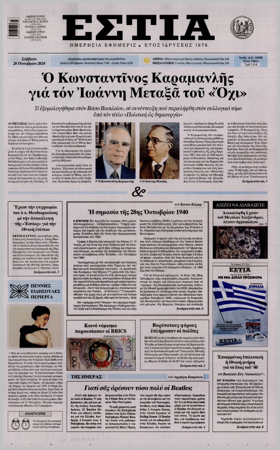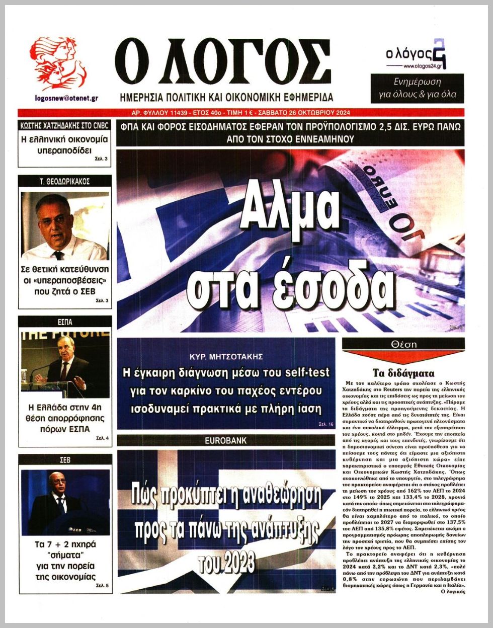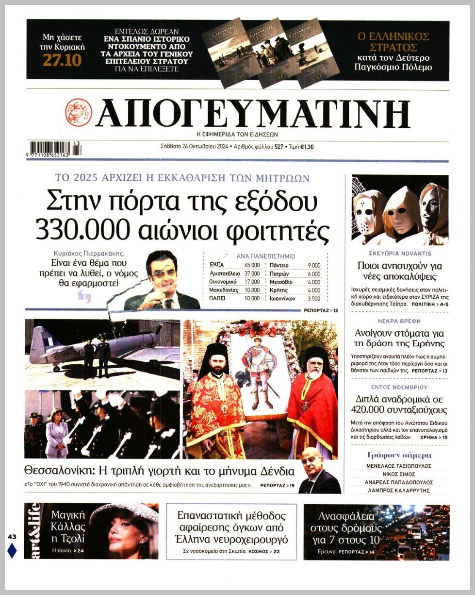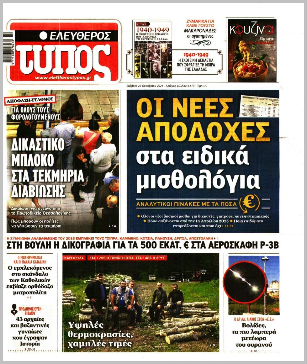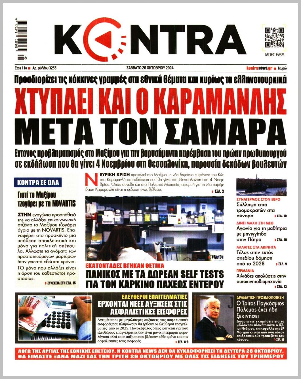 Τα πρωτοσέλιδα του Σαββάτου (26/10) σε Κρήτη και Αθήνα