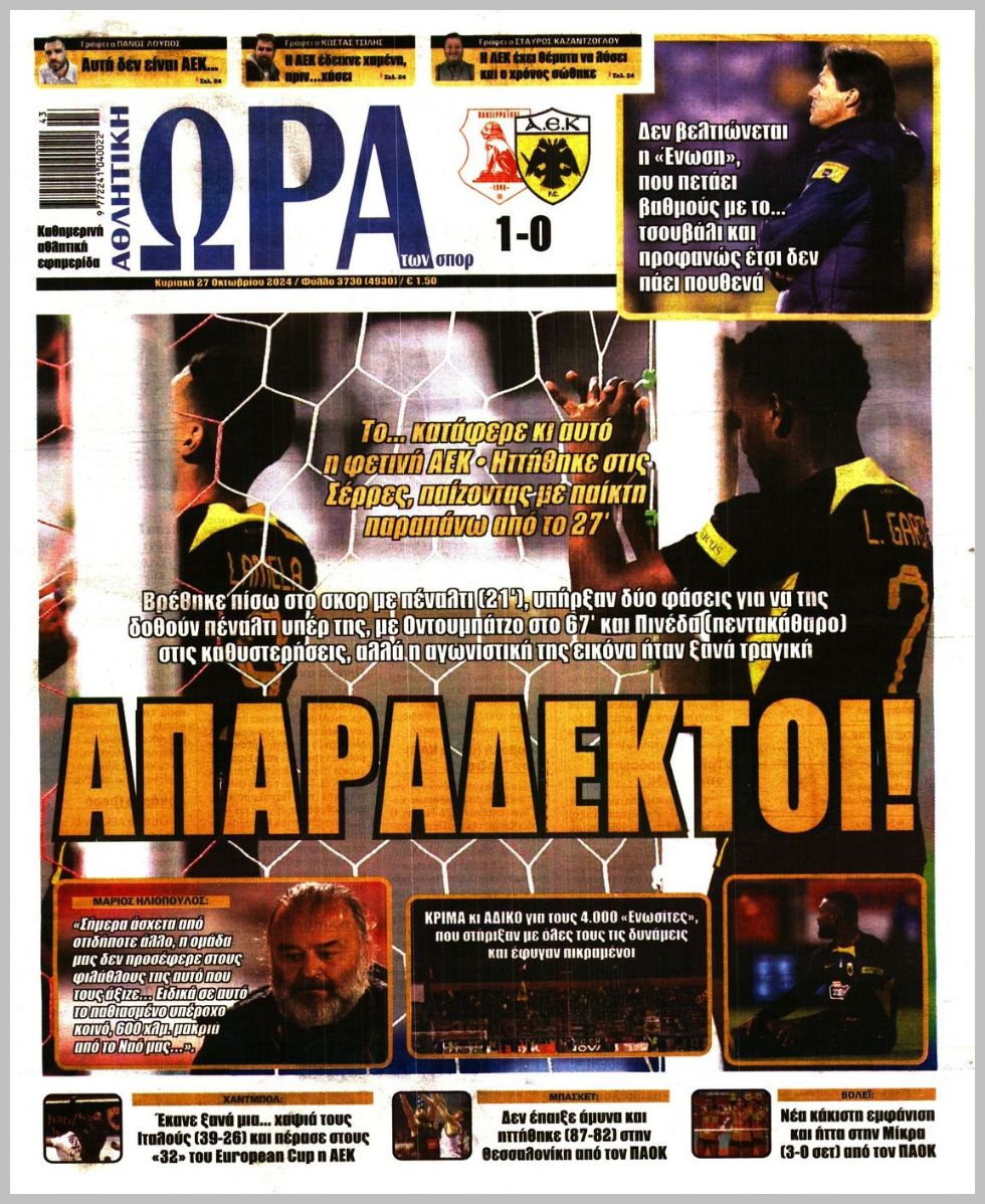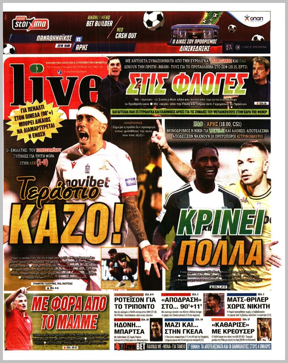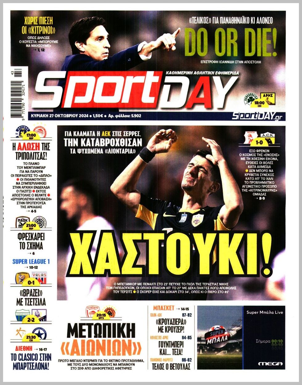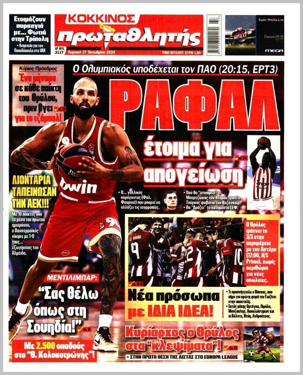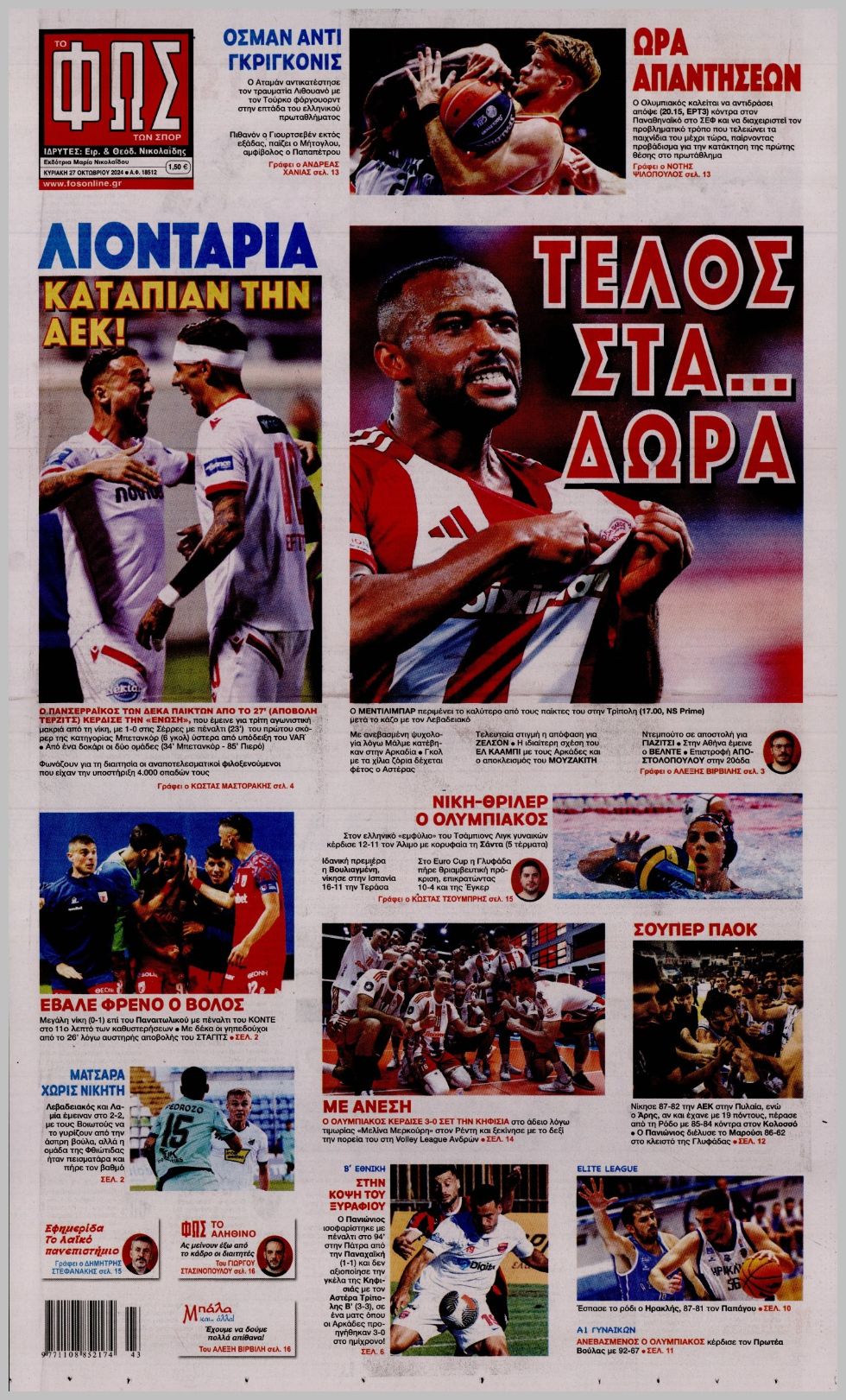 Τα πρωτοσέλιδα των αθλητικών εφημερίδων της Κυριακής (27/10)