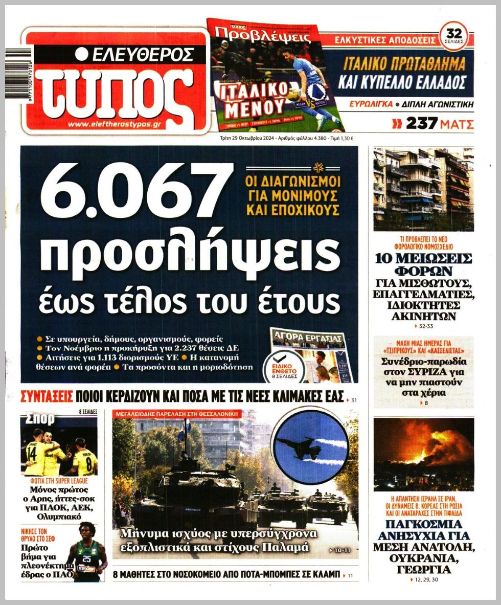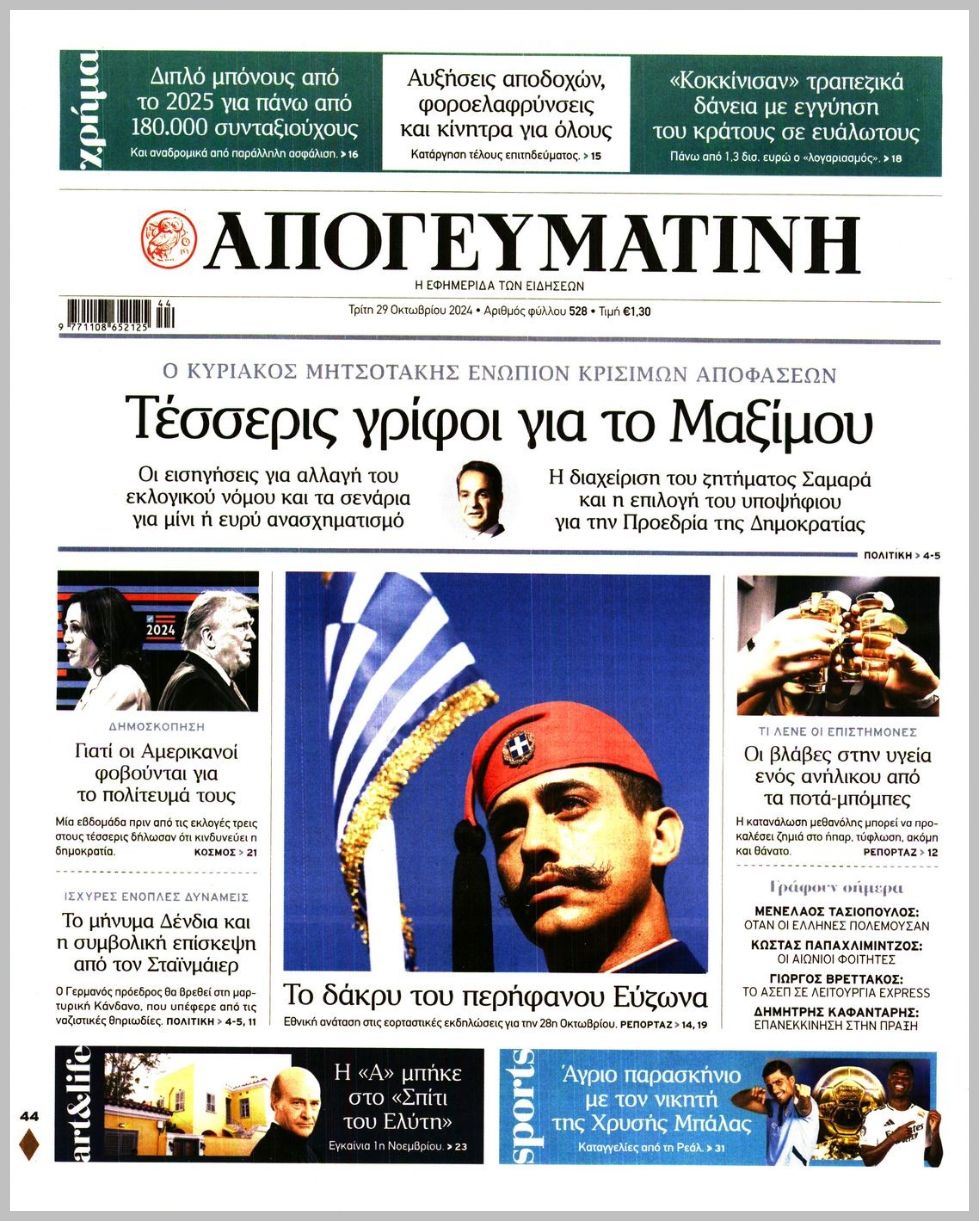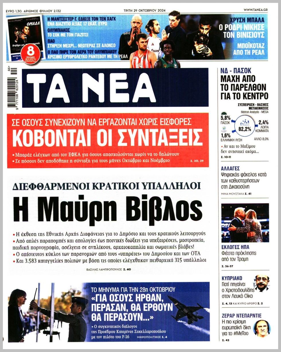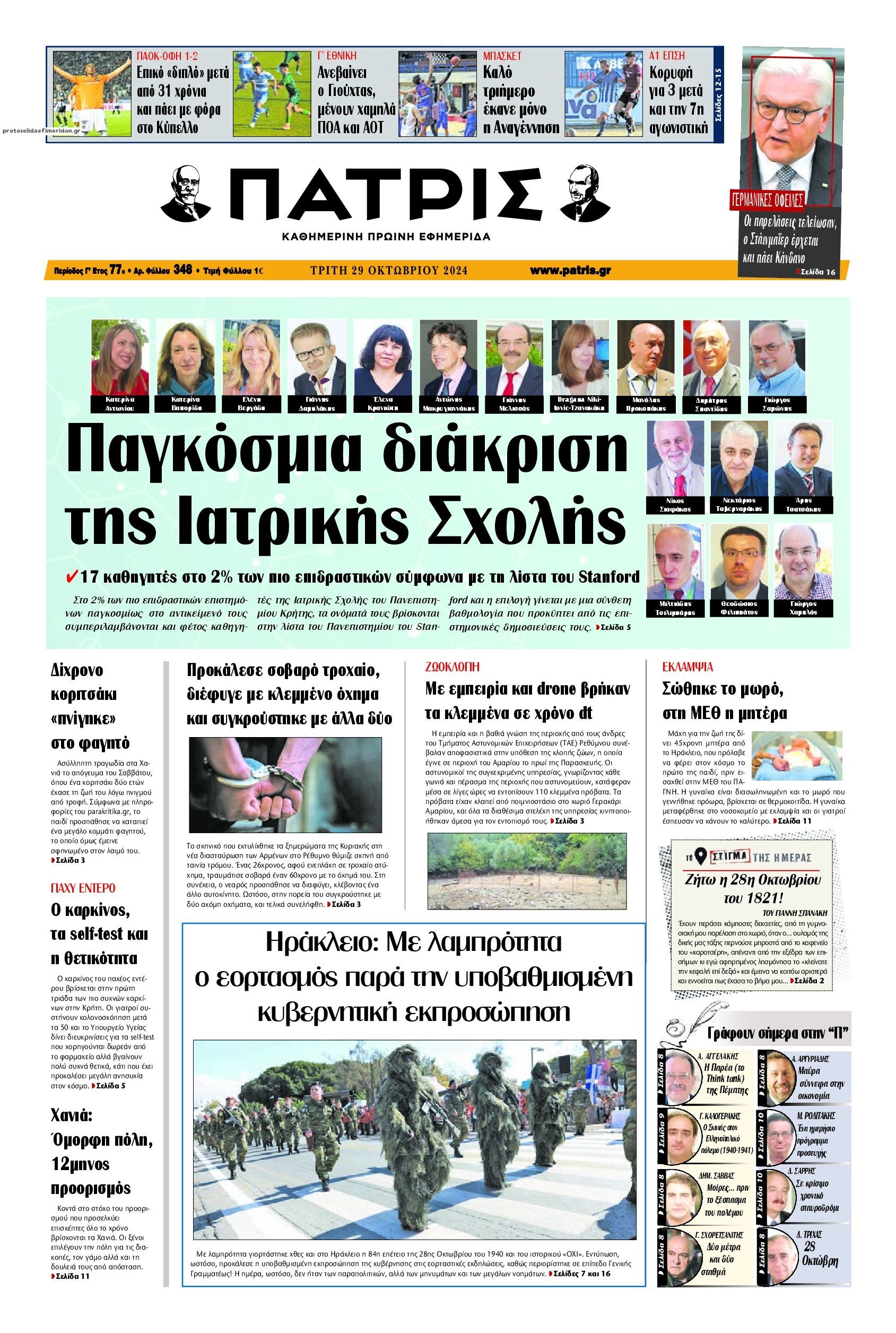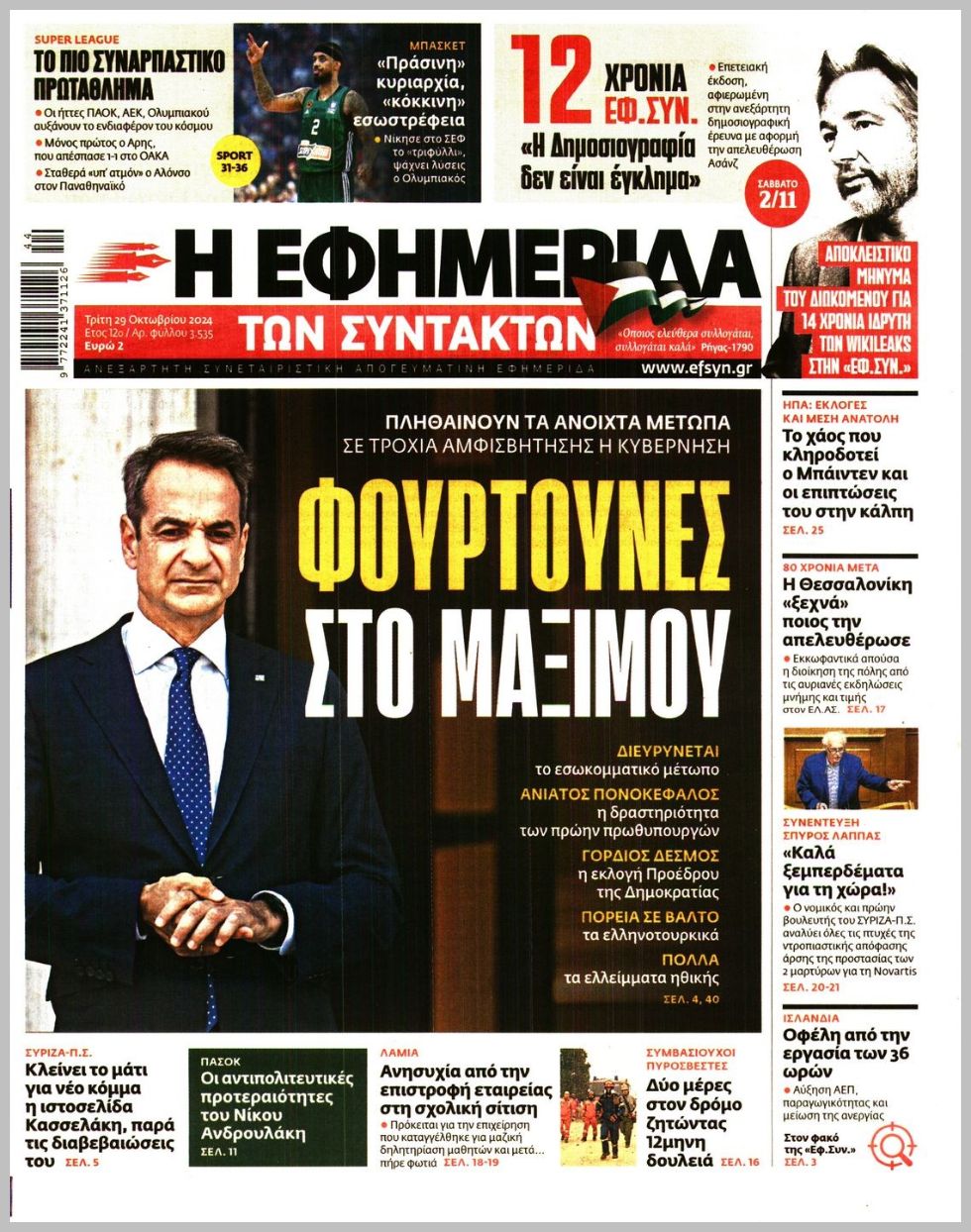 Τα πολιτικά πρωτοσέλιδα της Τρίτης 29/10 σε Κρήτη και Αθήνα