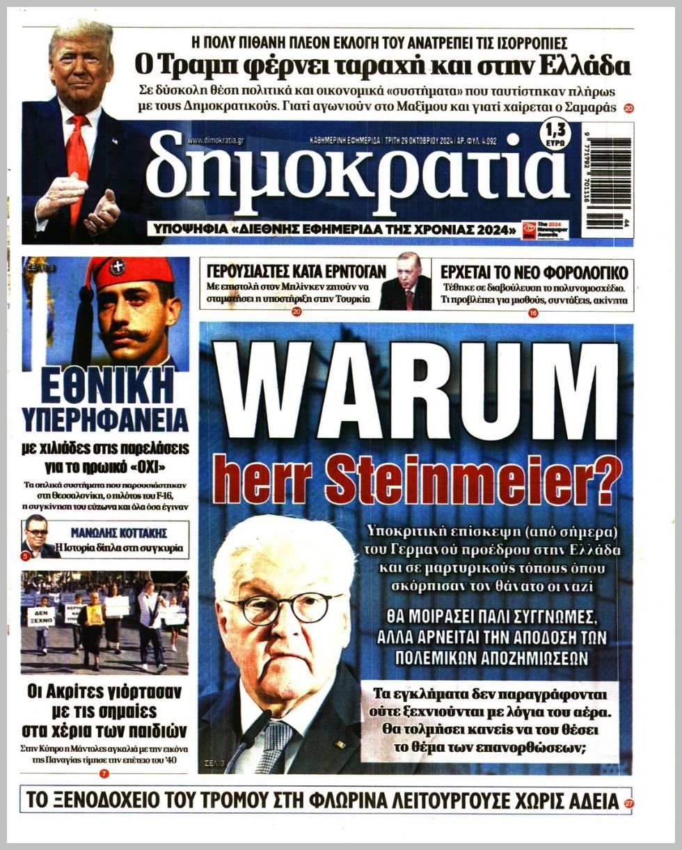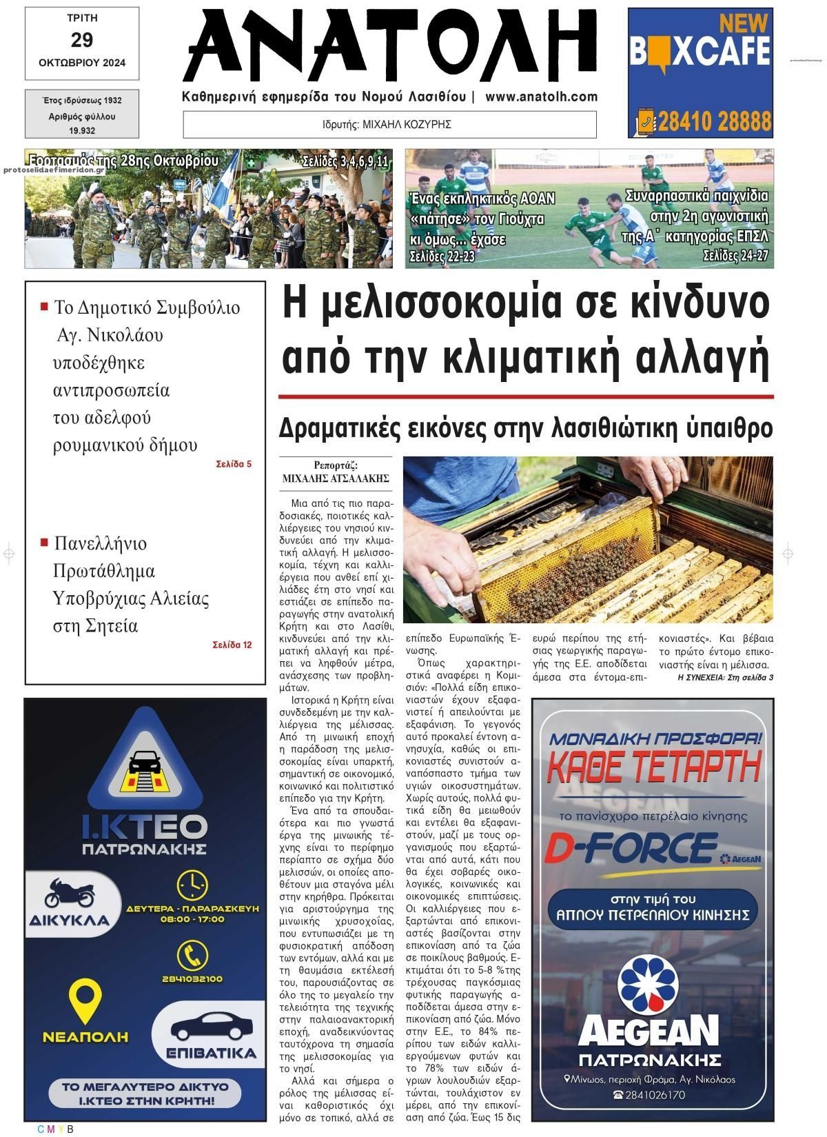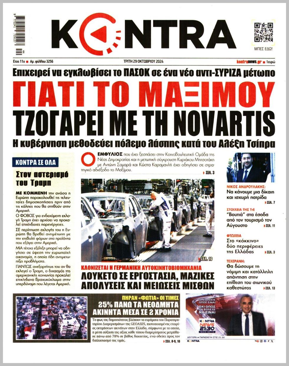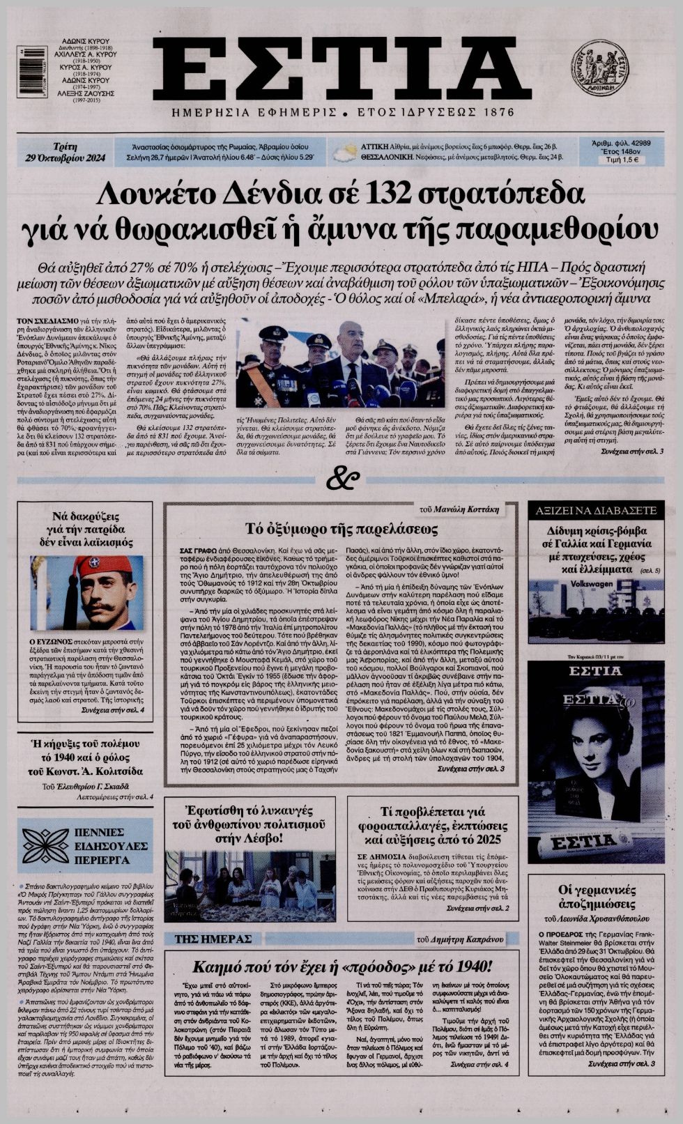 Τα πολιτικά πρωτοσέλιδα της Τρίτης 29/10 σε Κρήτη και Αθήνα