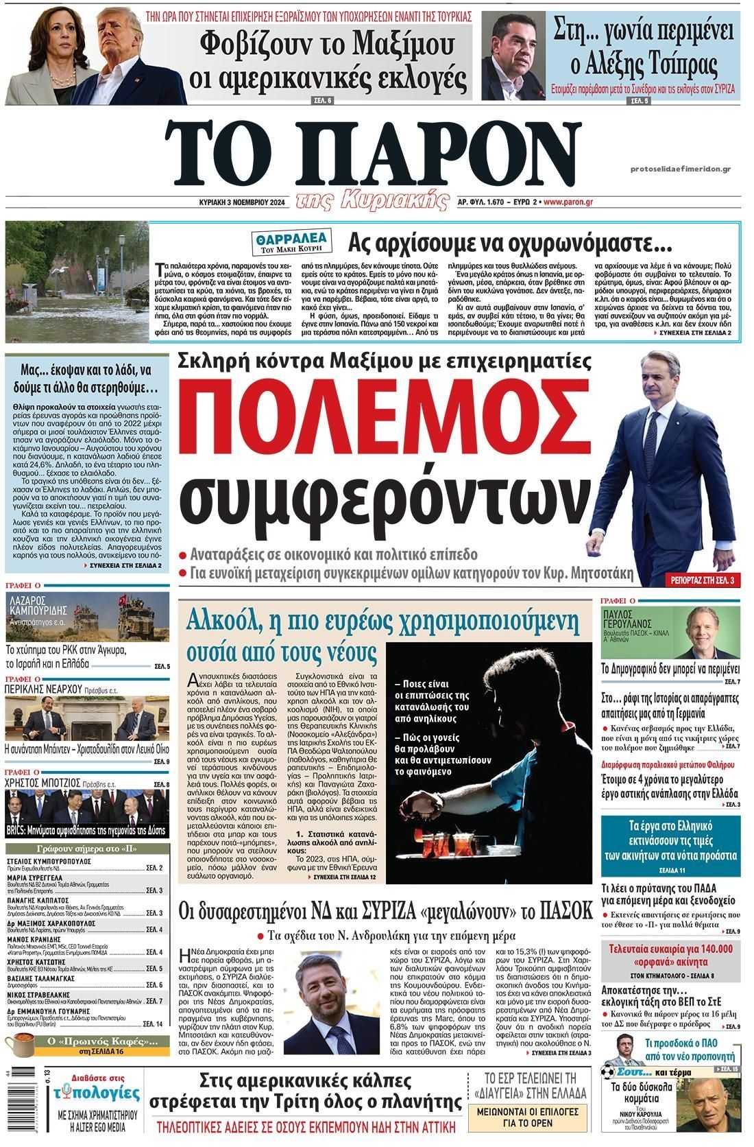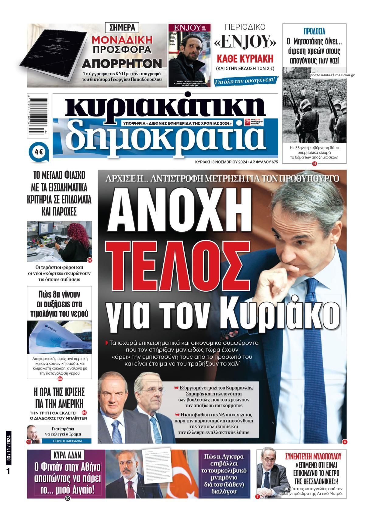 Τα πρωτοσέλιδα των κυριακάτικων εφημερίδων (3/11)