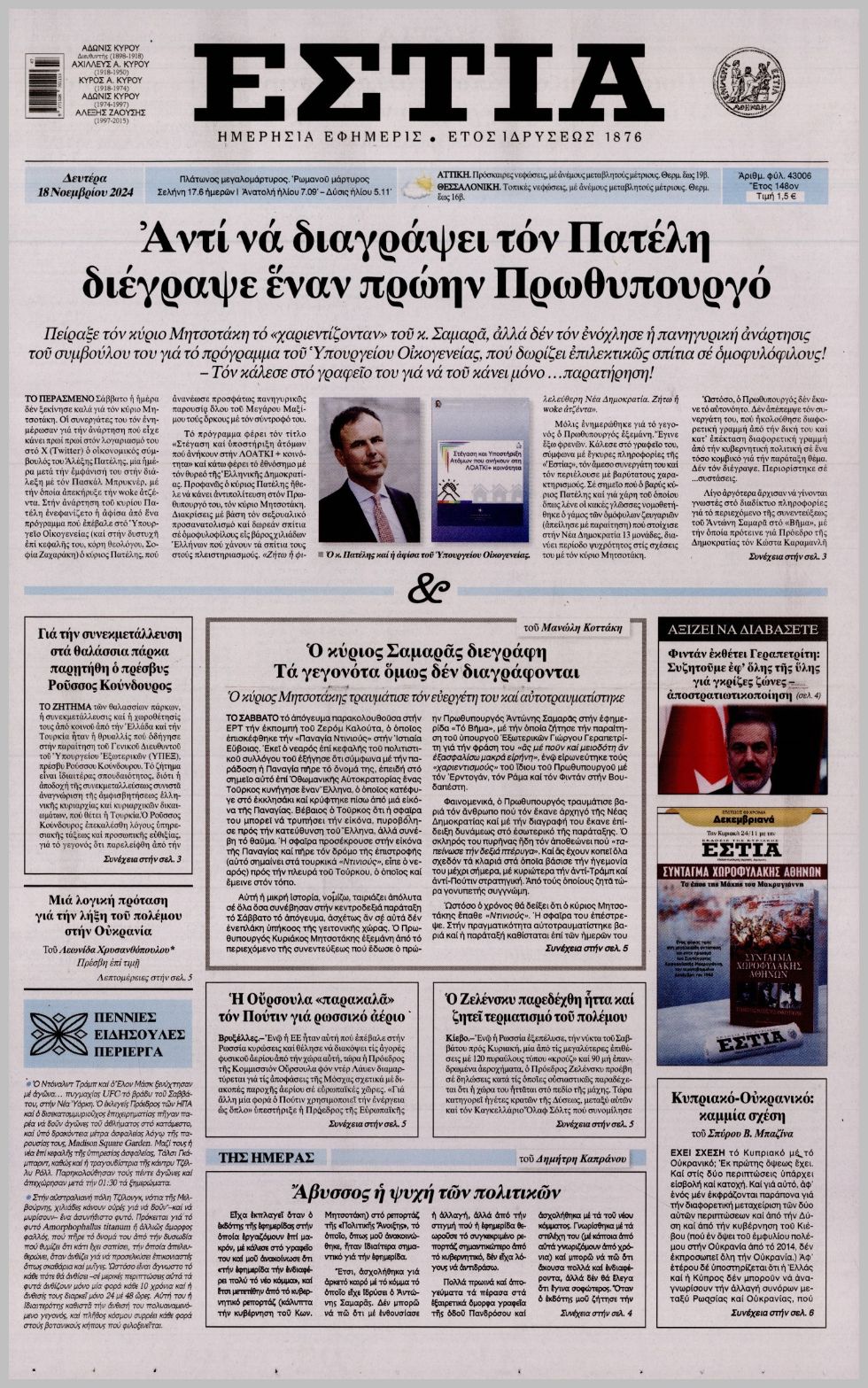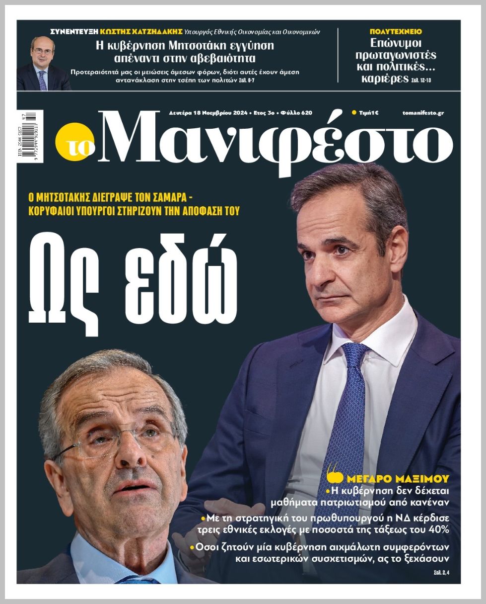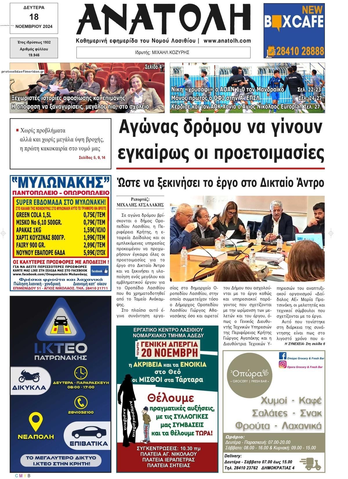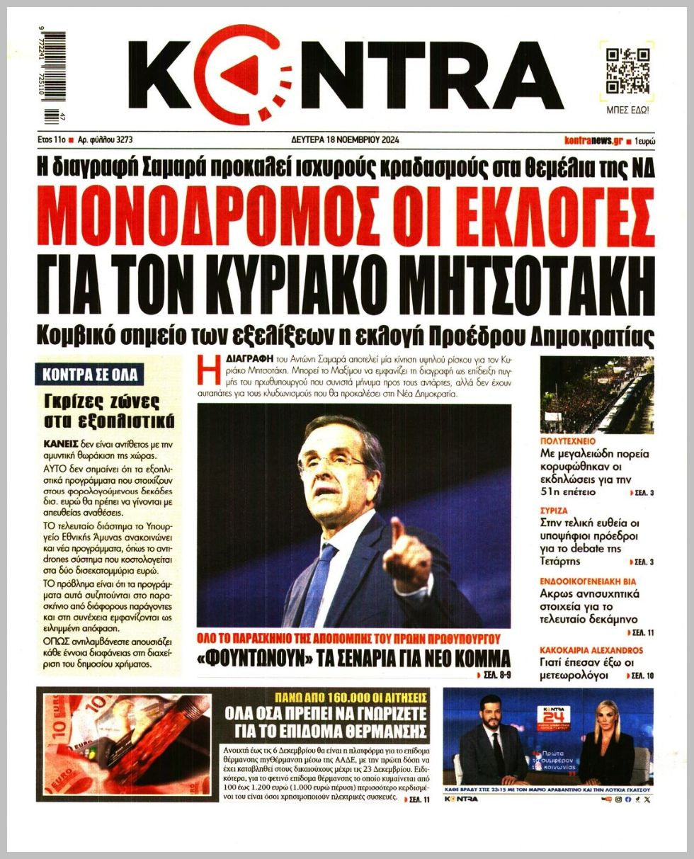 Τα πρωτοσέλιδα της Δευτέρας (18/11) σε Κρήτη και Αθήνα