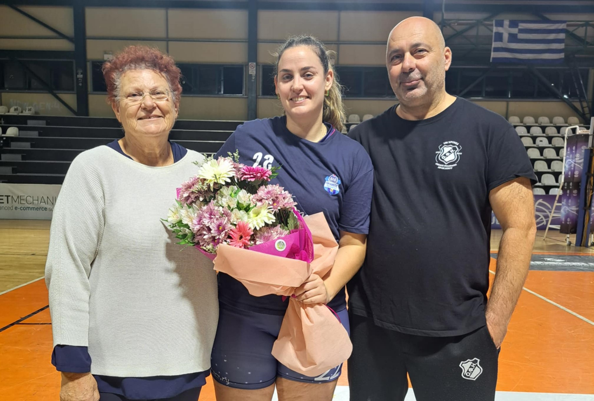 Μια ανθοδέσμη περίμενε στο Βαρδινογιάννειο αθλητικό κέντρο, την άλλοτε αρχηγό της γυναικείας ομάδας βόλεϊ του ΟΦΗ, Αθηνά Γεωργοπούλου, η οποία επέστρεψε στο Ηράκλειο, ως αντίπαλος, καθώς αγωνίζεται στον Θρίαμβο Χαϊδαρίου.