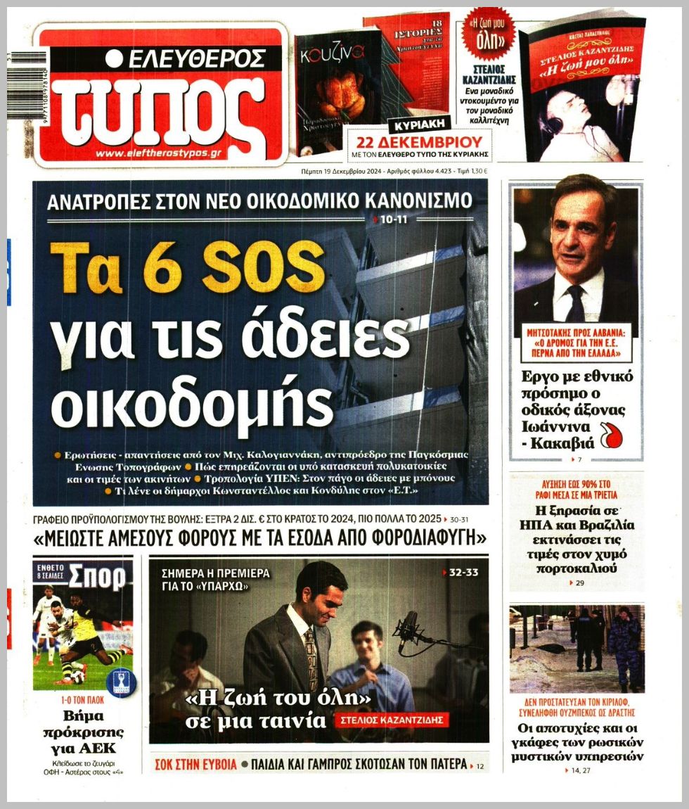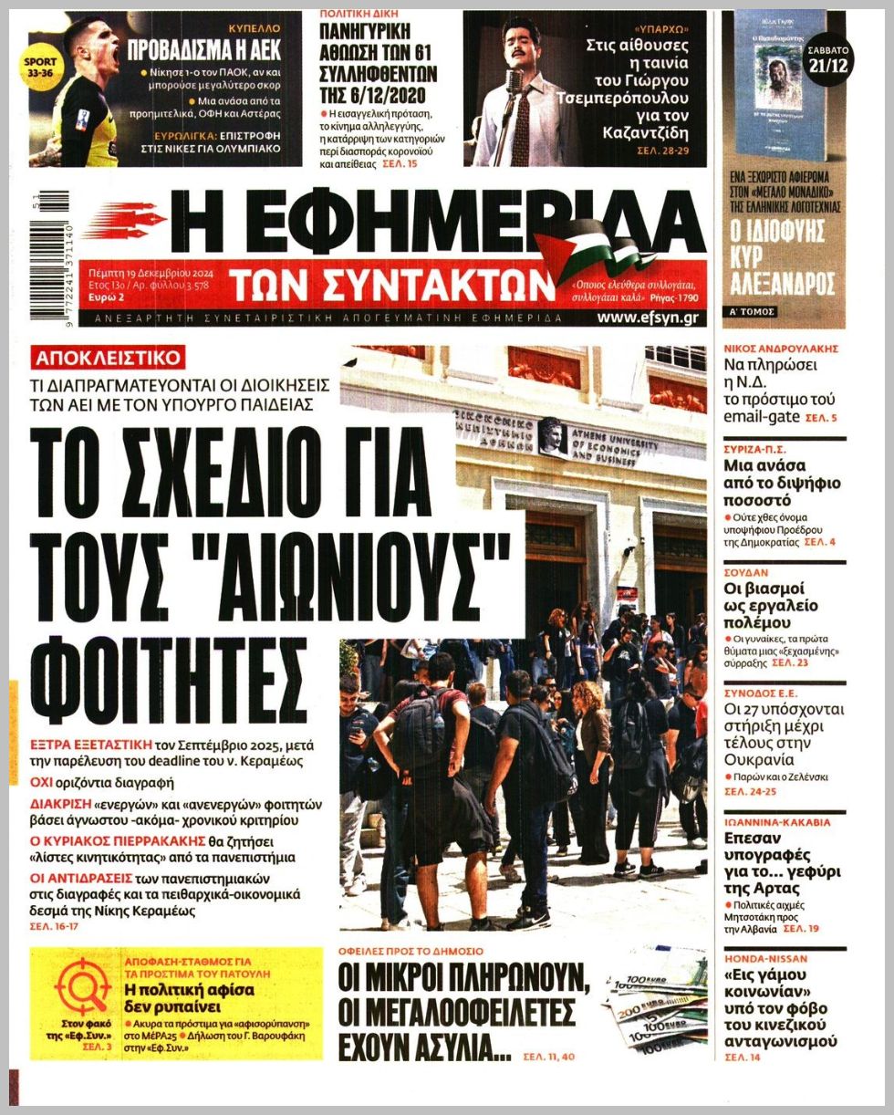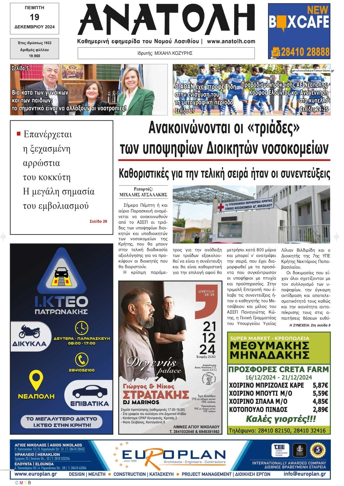 Τα πρωτοσέλιδα της Πέμπτης (19/12) σε Κρήτη και Αθήνα