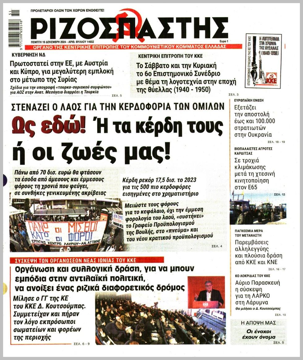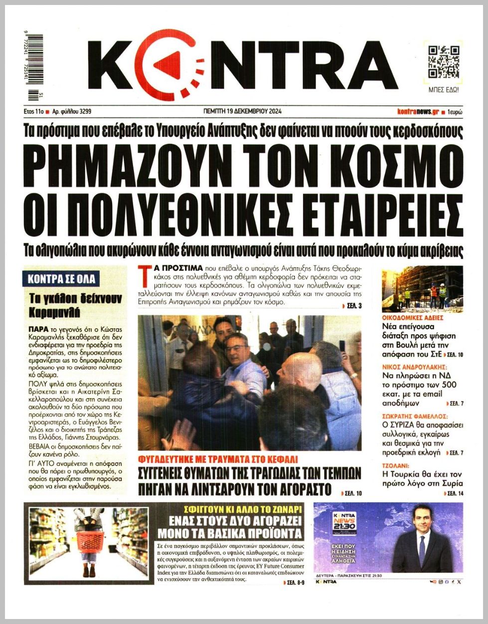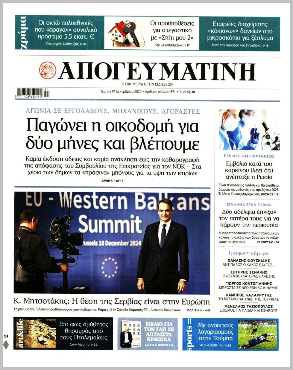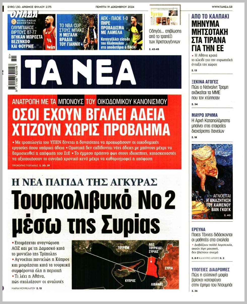 Τα πρωτοσέλιδα της Πέμπτης (19/12) σε Κρήτη και Αθήνα