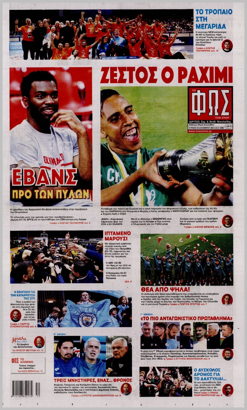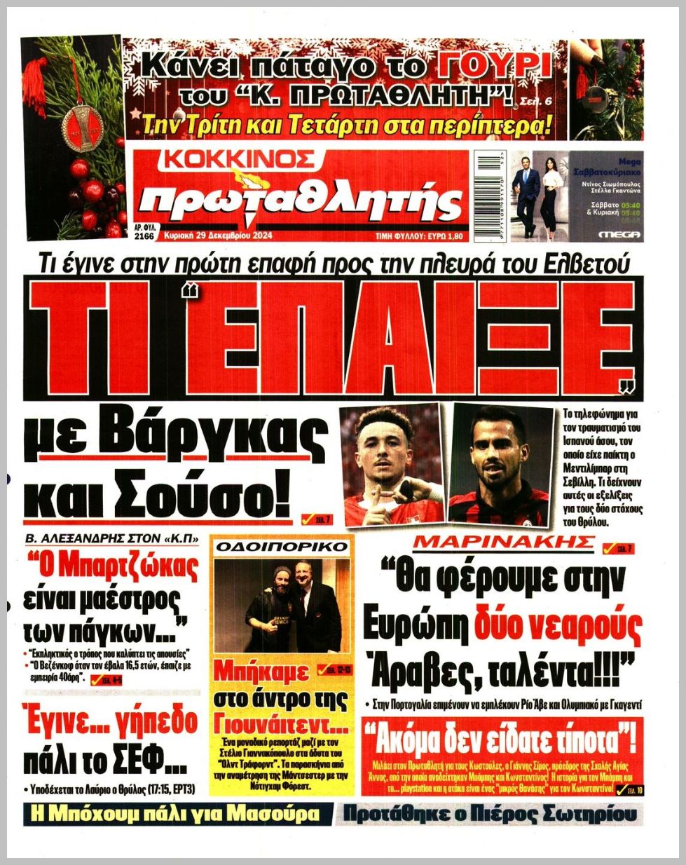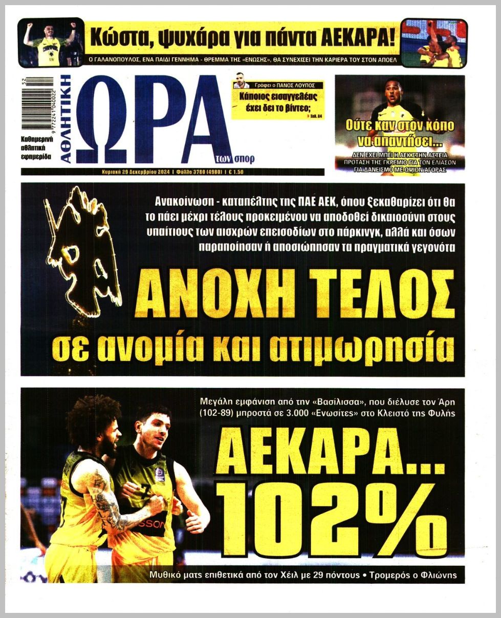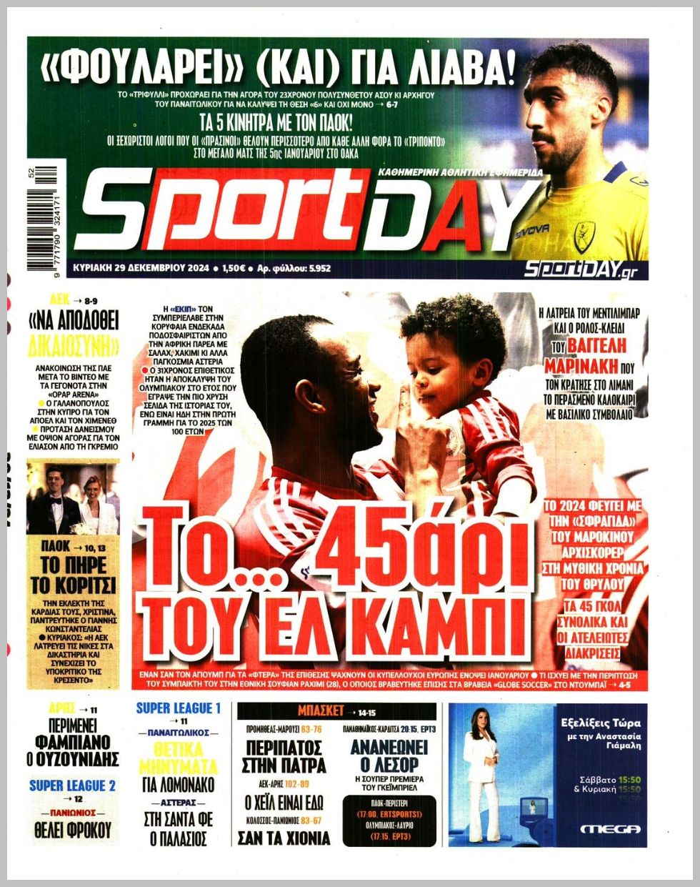 Τα αθλητικά πρωτοσέλιδα της Κυριακής (29/12)