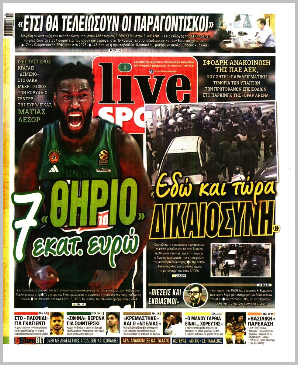 Τα αθλητικά πρωτοσέλιδα της Τρίτης (7/10)