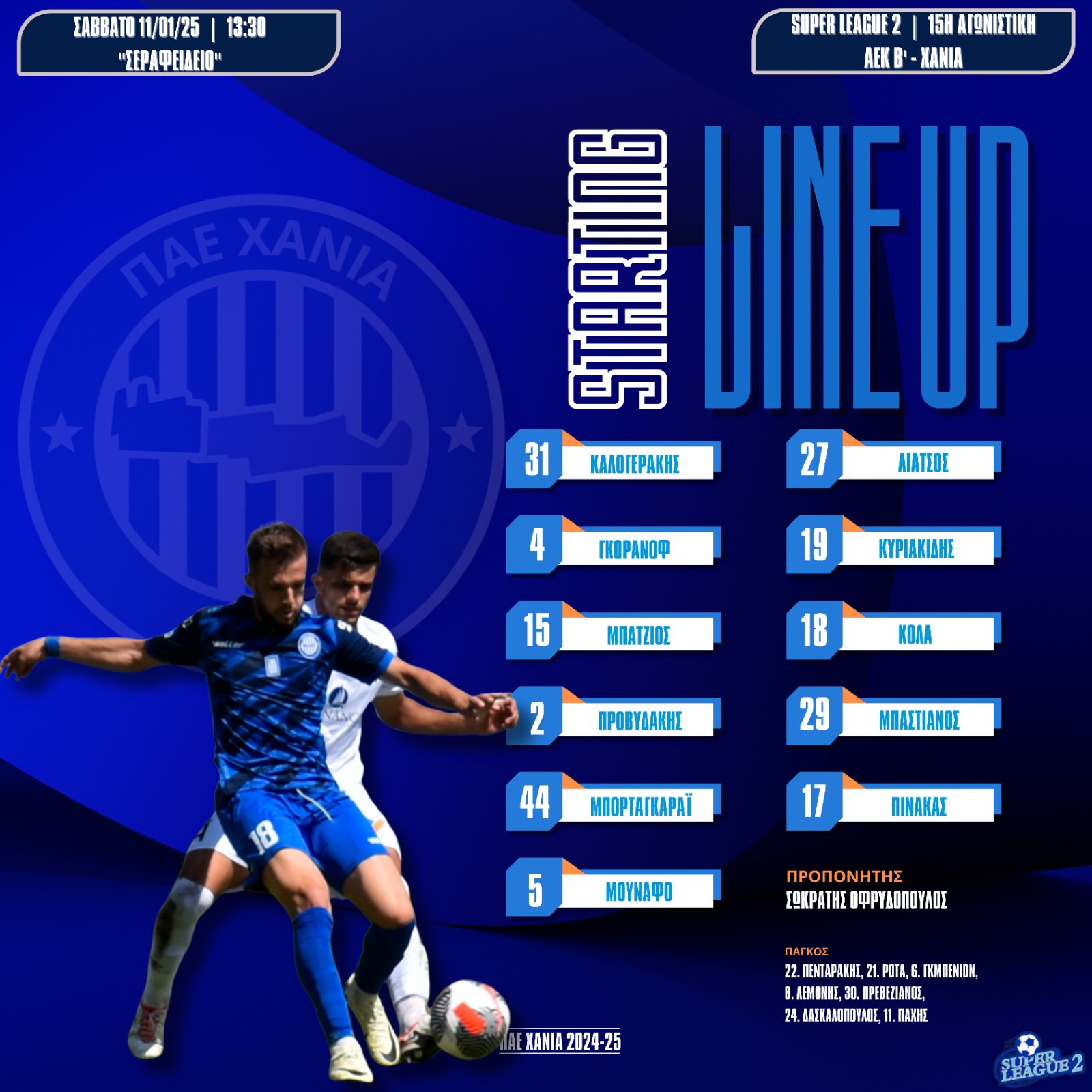 Χανιά (Σωκράτης Οφρυδόπουλος): Καλογεράκης, Μπάτζιος, Μπορταγκαράι, Προβυδάκης, Γκοράνοφ, Μουνάφο, Κυριακίδης, Λιάτσος (68′ Λεμονής), Κόλα (77′ Ρότα), Μπαστιάνος, Πινακάς (87′ Παχής)