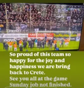 «Πόσο περήφανος για αυτή την ομάδα, πόσο χαρούμενος για τη χαρά που φέρνουμε πίσω στην Κρήτη! Ραντεβού στο ματς της Κυριακής, η δουλειά δεν τελείωσε!»