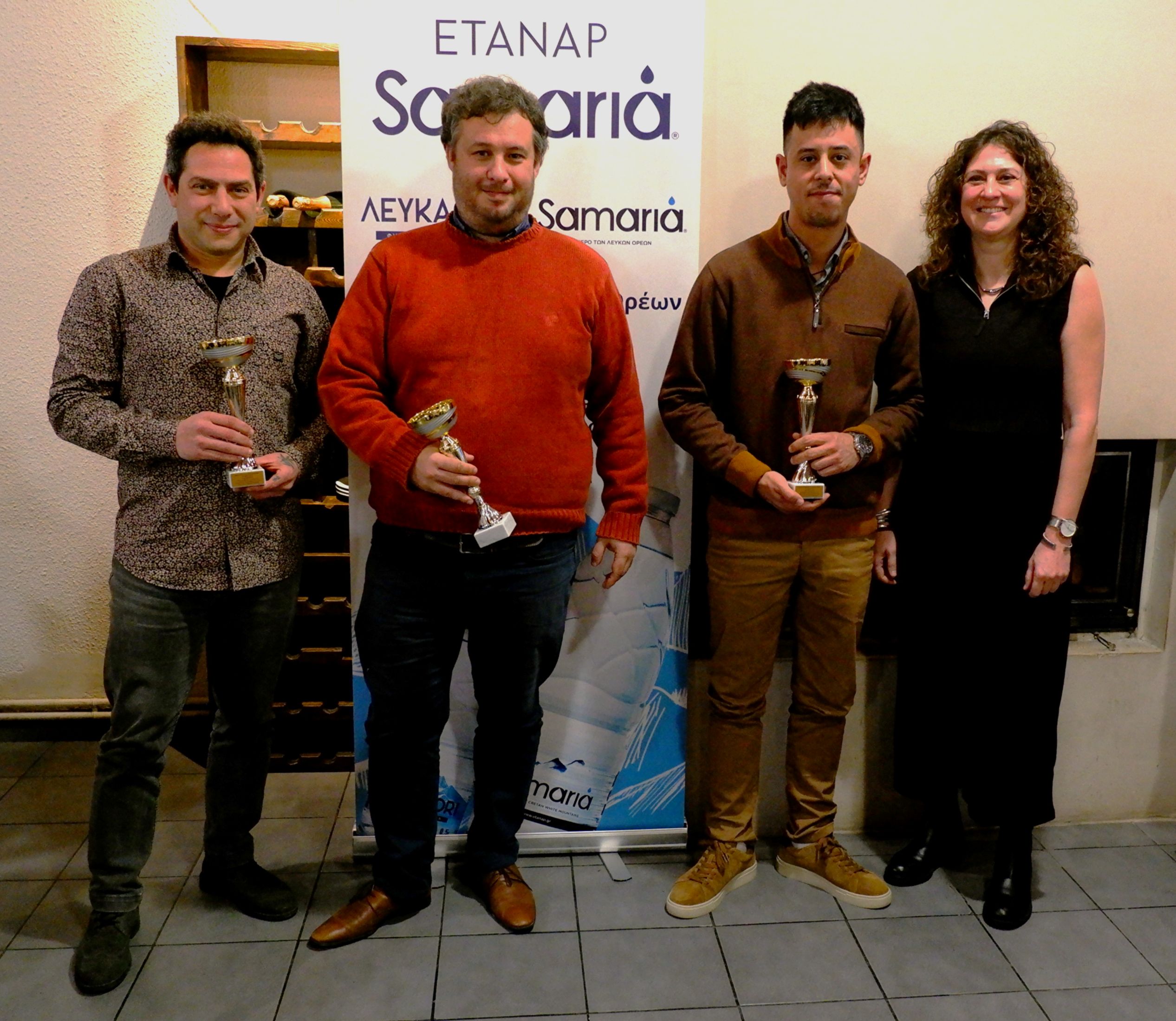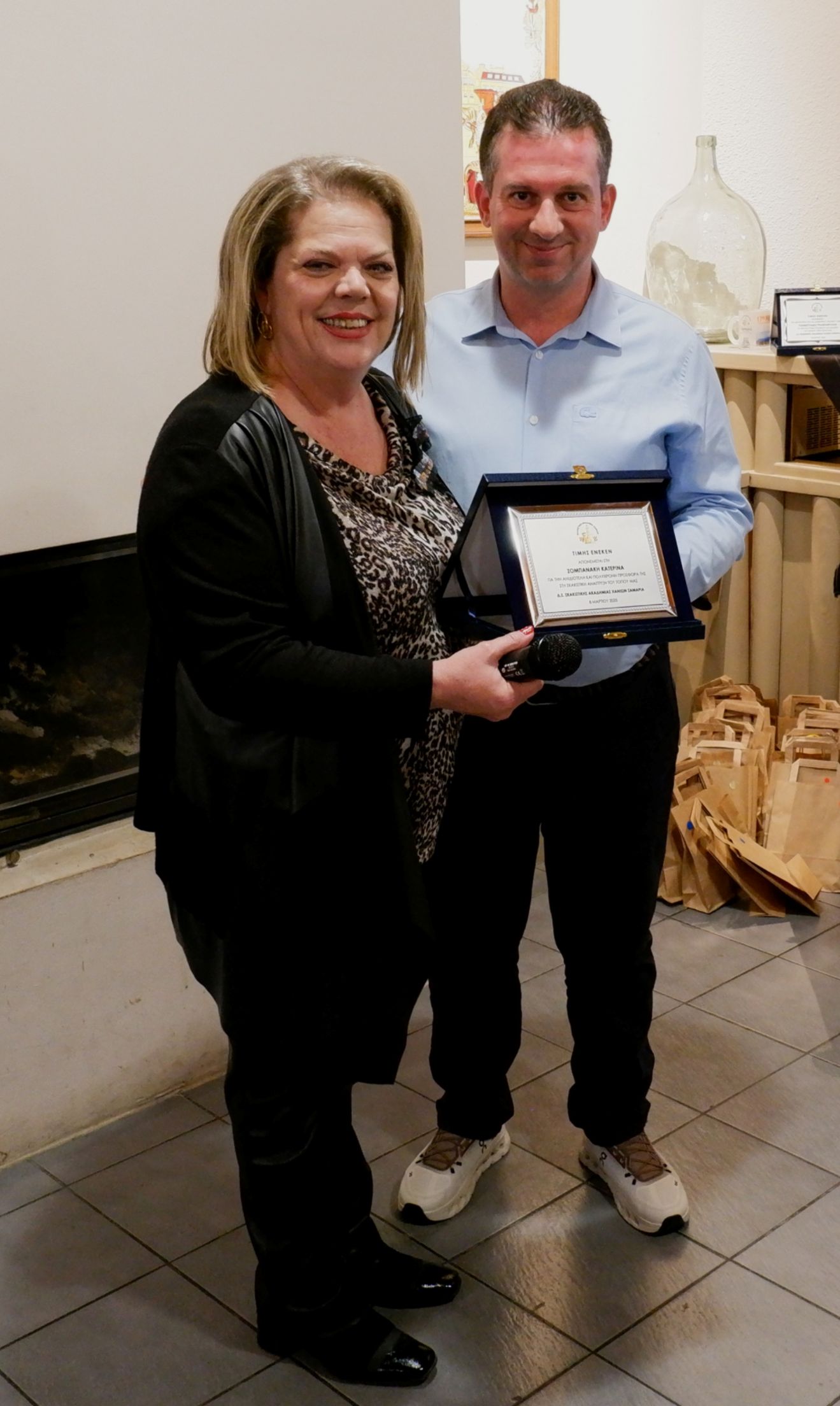 Η εκδήλωση αυτή ήταν και μία ευκαιρία να βραβευτούν επιχειρηματίες και φορείς του τόπου μας που βοηθάνε στην ανάπτυξη και προβολή του σκακιού. Πρώτα απ’ όλα να τονίσουμε την ΕΤΑΝΑΠ ΣΑΜΑΡΙΑ και τον πρόεδρό της κ. Αποστολάκη Μανώλη, που είναι ο μεγάλος χορηγός του συλλόγου μας. Η διαχρονική της βοήθεια αποτελεί και τον στυλοβάτη αυτής της πλούσιας πορείας του συλλόγου. Τον κ. Κυριακίδη Θωμά που η βοήθειά του ήταν απαραίτητη για την επιτυχία ενός τέτοιου πλούσιου αγωνιστικού προγράμματος. Βραβεύτηκε ο κ. Μαυρονικόλας Τάκης για την βοήθεια που προσφέρει το Πανεπιστήμιο Νεάπολις Πάφου στις μεγάλες διοργανώσεις του συλλόγου. Την προϊσταμένη Πολιτισμού και Αθλητισμού της Π.Ε. Χανίων κ. Ζομπανάκη Κατερίνας για την ανεκτίμητη βοήθειά της σε όλα τα σκακιστικά δρώμενα του τόπου μας. Τον κ. Βαλυράκη Στέλιο για την άψογη συνεργασία που υπάρχει μεταξύ του συλλόγου και του Δημοτικού Γηροκομείου Χανίων. Τον Αντιδήμαρχο Πολιτισμού Τουρισμού του Δήμου Χανίων κ. Ψαρουδάκη Νεκτάριο για την πολύτιμη προσφορά του και την άψογη συνεργασία που υπάρχει στη διοργάνωση του Διεθνούς Τουρνουά ¨ΜΙΚΗΣ ΘΕΟΔΩΡΑΚΗΣ¨. Την κ. Τερεζάκη Χρύσα, Πρόεδρο της πρωτοβάθμιας εκπαίδευσης, για την συνεργασία που υπάρχει και τα προγράμματα που γίνονται στον τομέα της εκπαίδευσης. Τον κ. Δόβρο Νικόλαο και την κ. Γιαννουλάκη Τριανταφυλλιά διευθυντές του 8ου και 4ου Δημ. Σχολείου Χανίων αντίστοιχα, για τα προγράμματα σκακιού και την παραχώρηση των σχολείων για πλήθος σκακιστικών εκδηλώσεων.