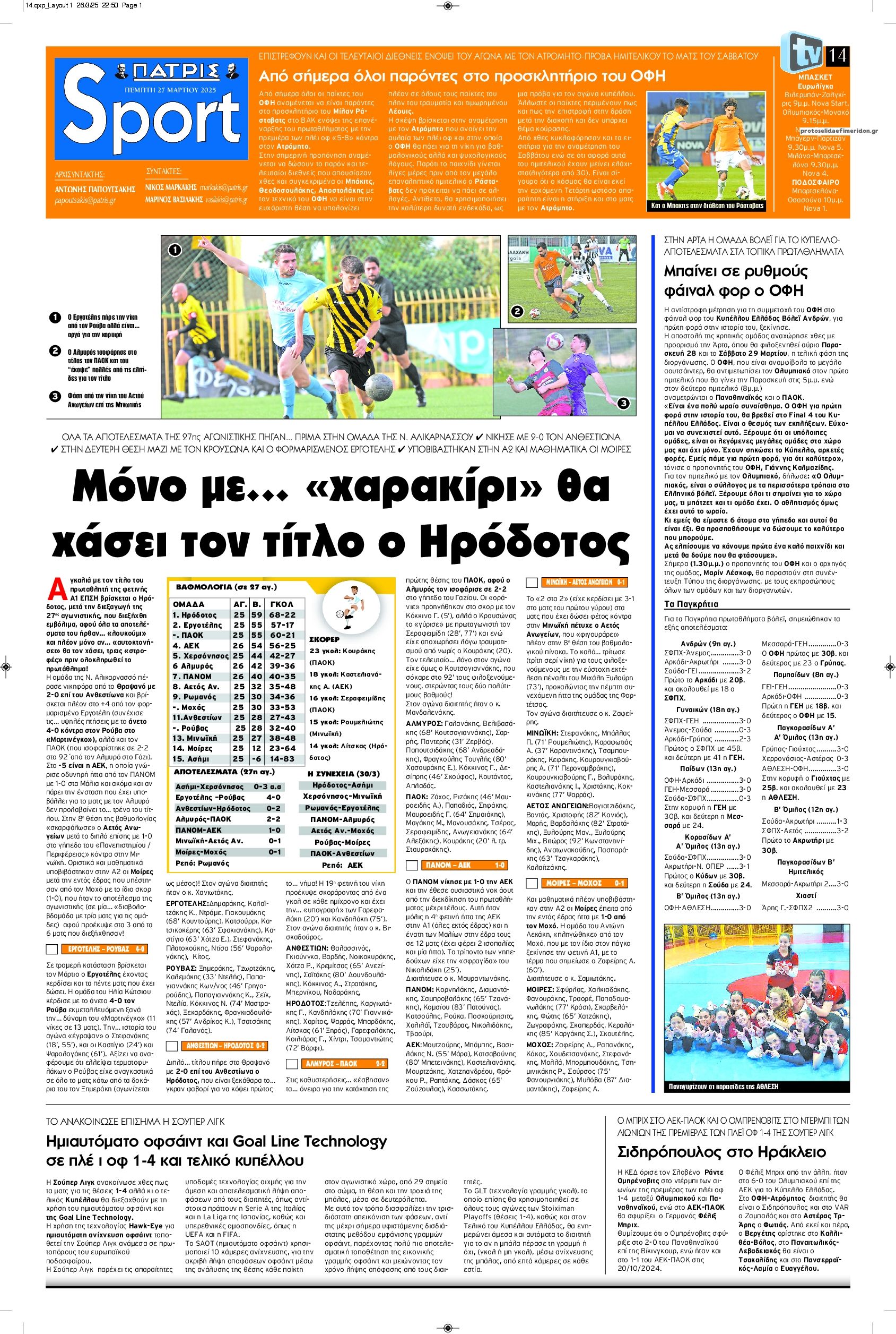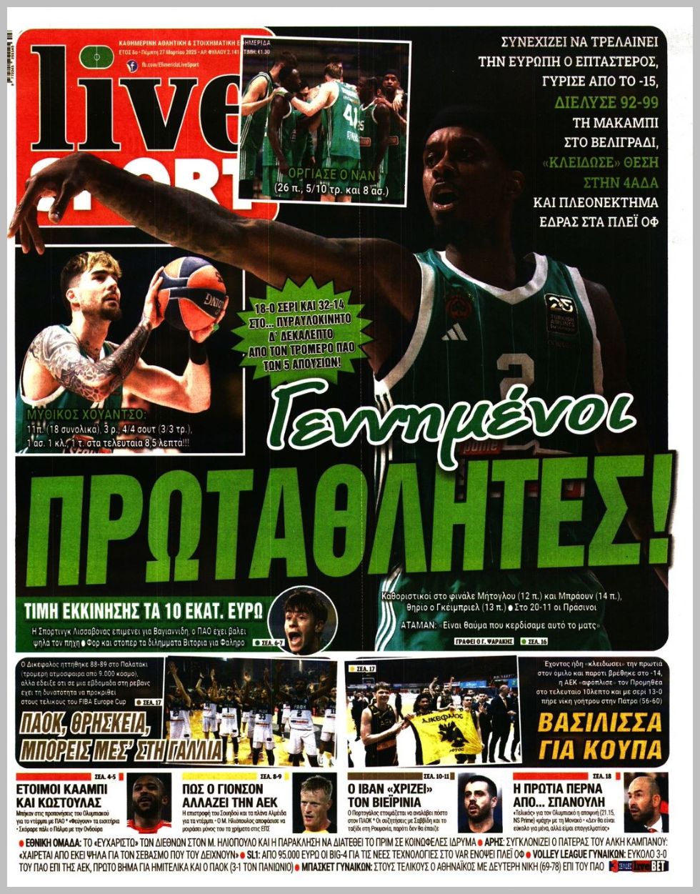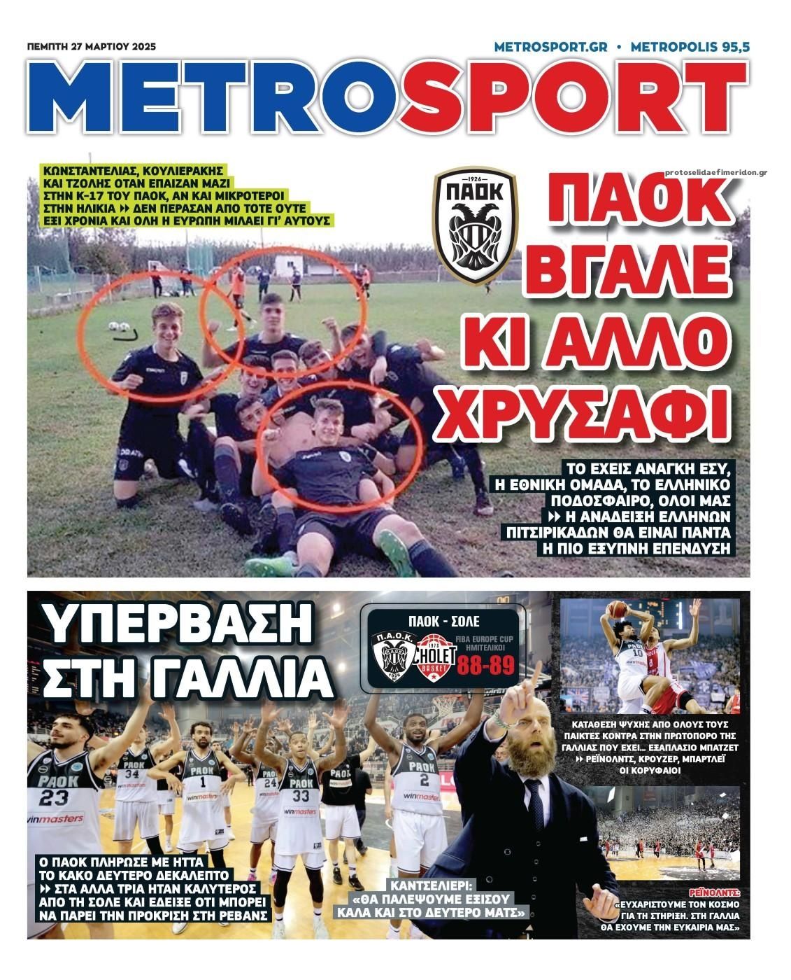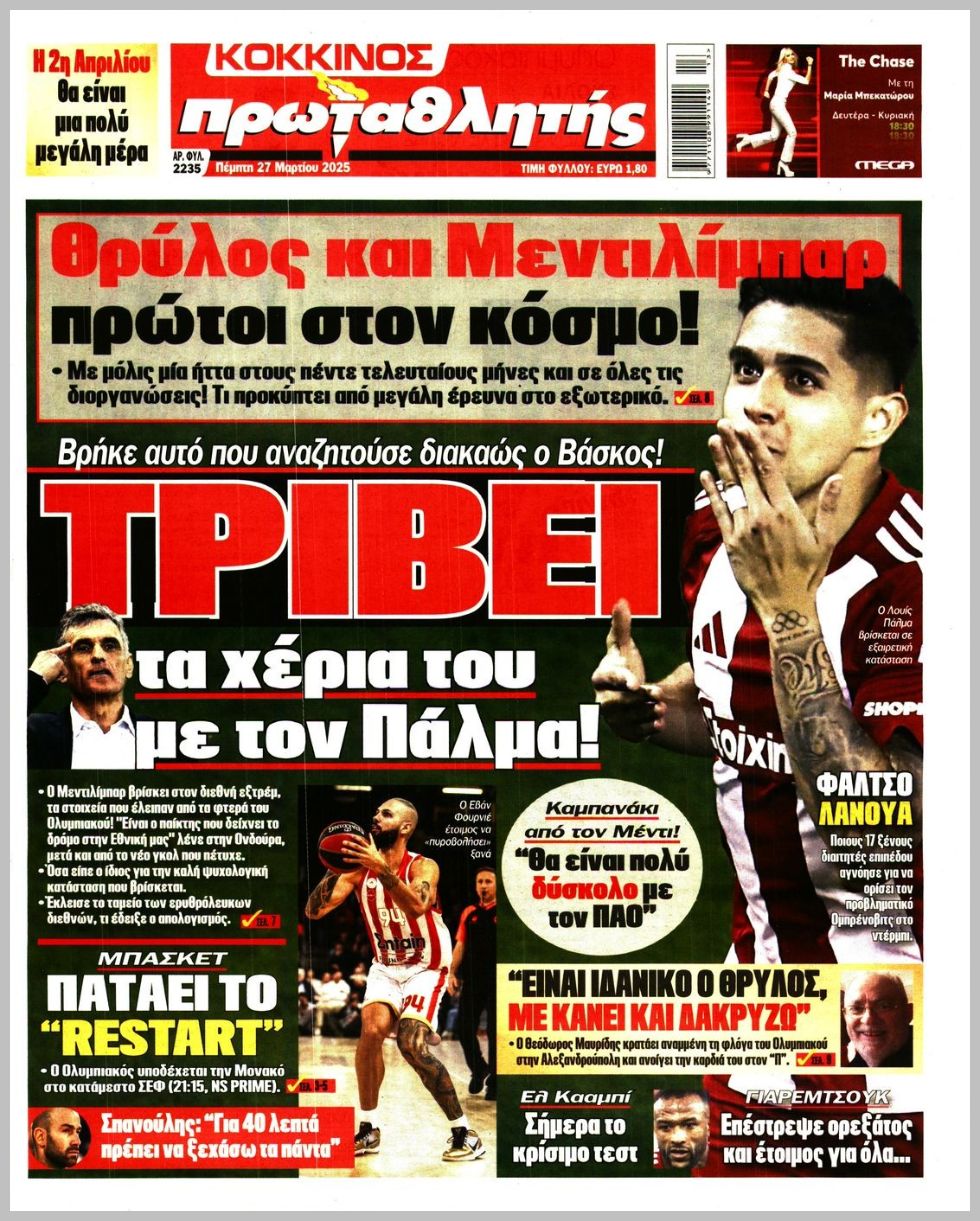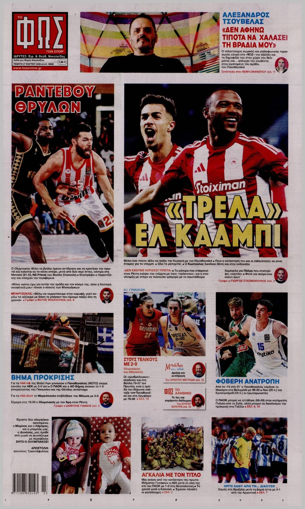 Τα αθλητικά πρωτοσέλιδα της Πέμπτης (27/3)