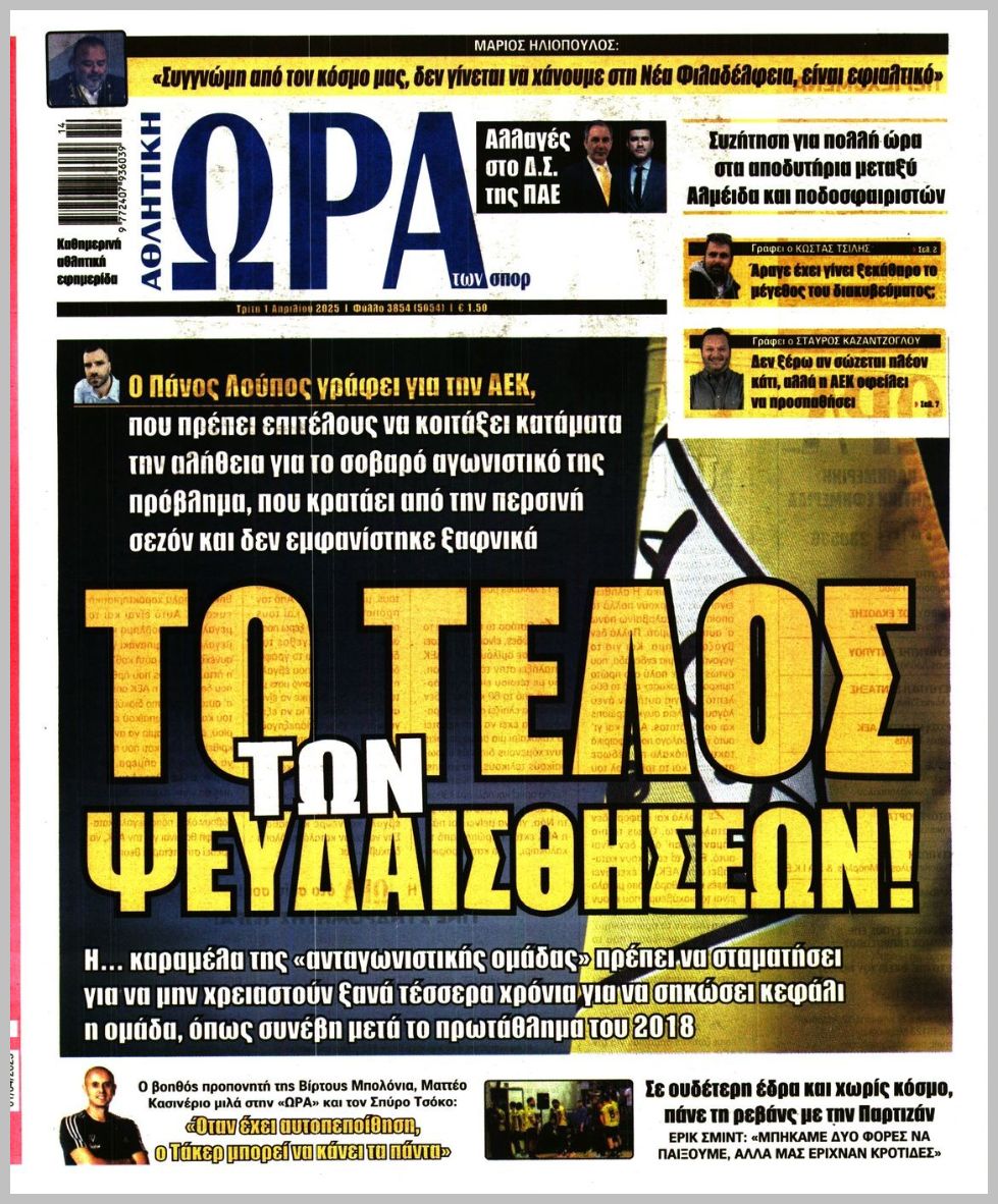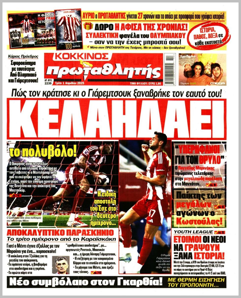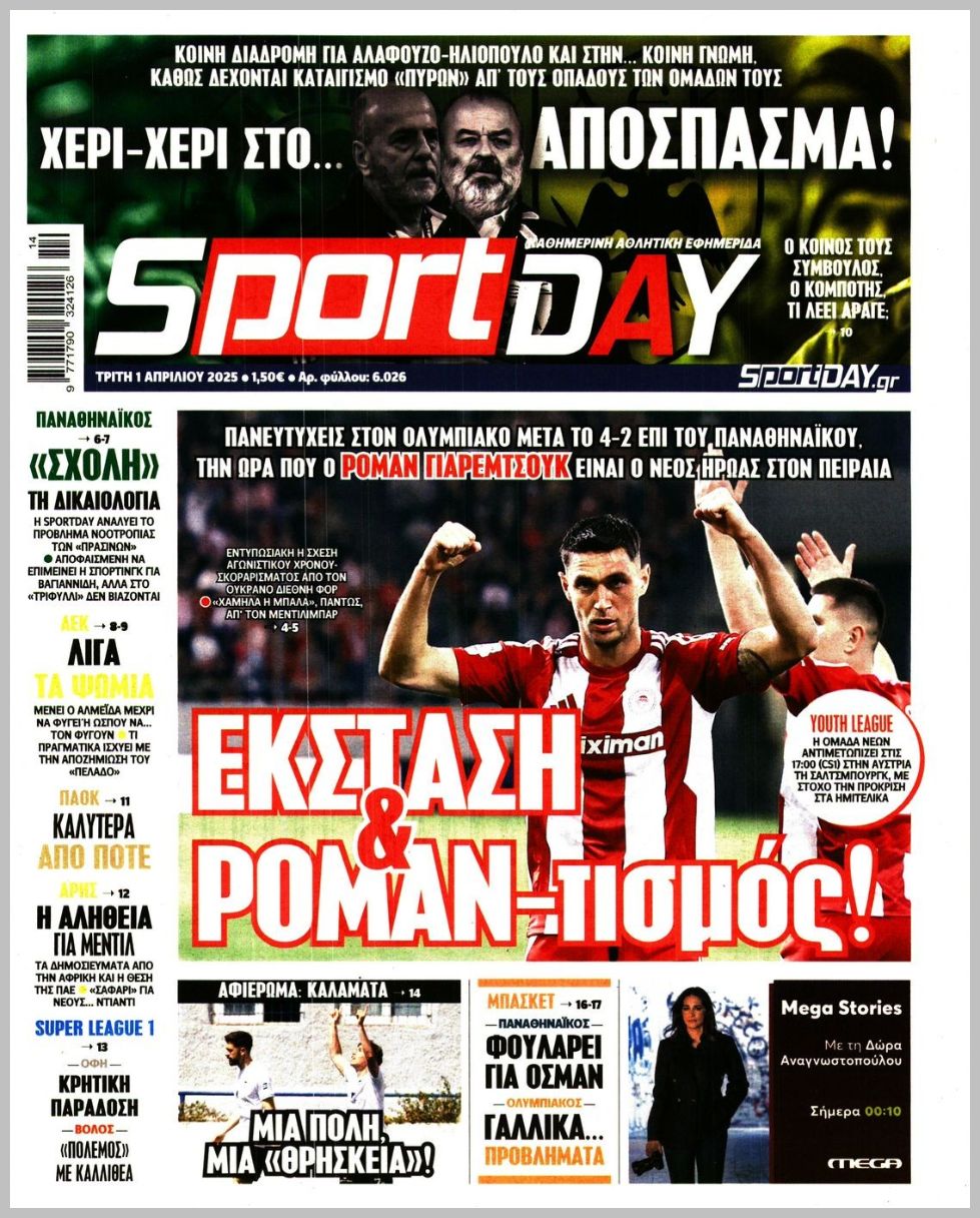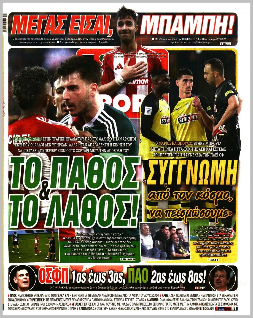 Τα αθλητικά πρωτοσέλιδα της Τρίτης 1/4