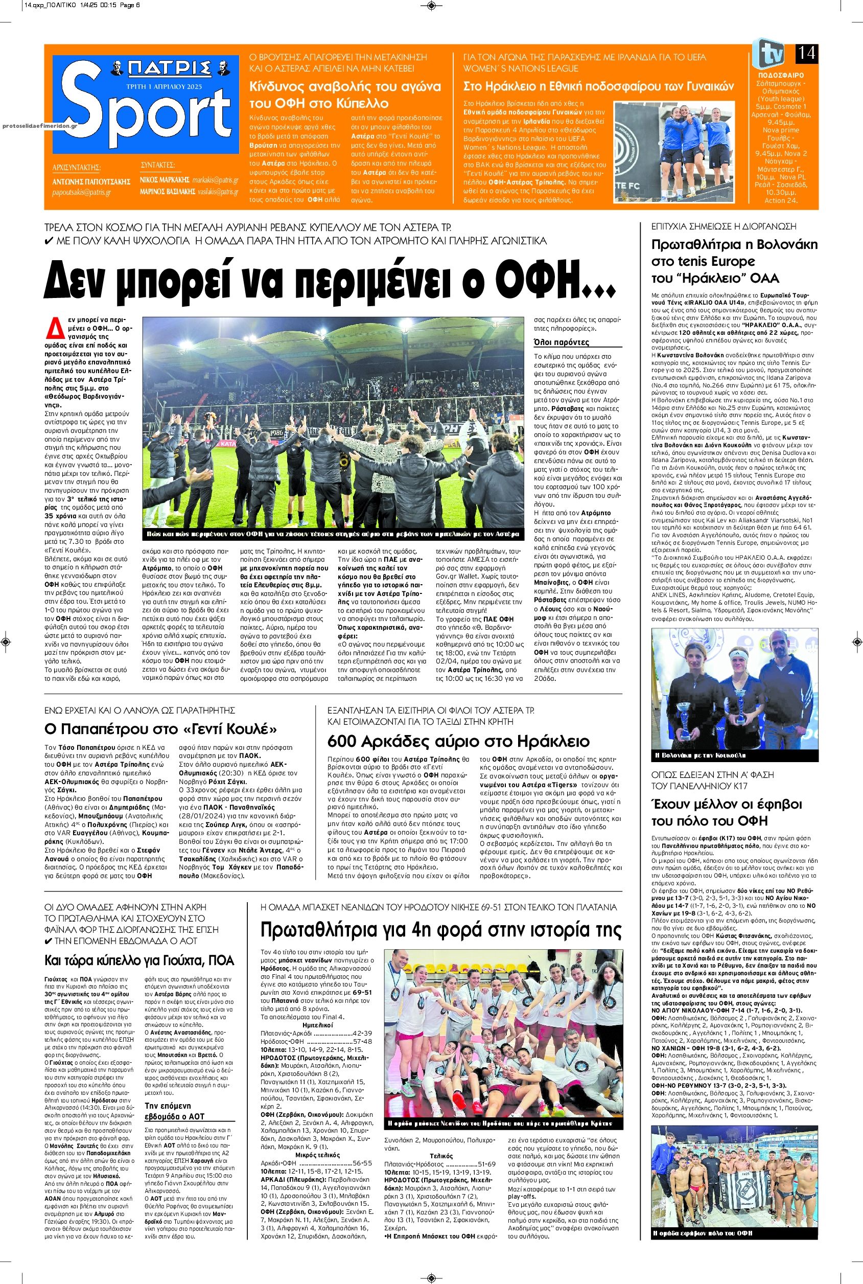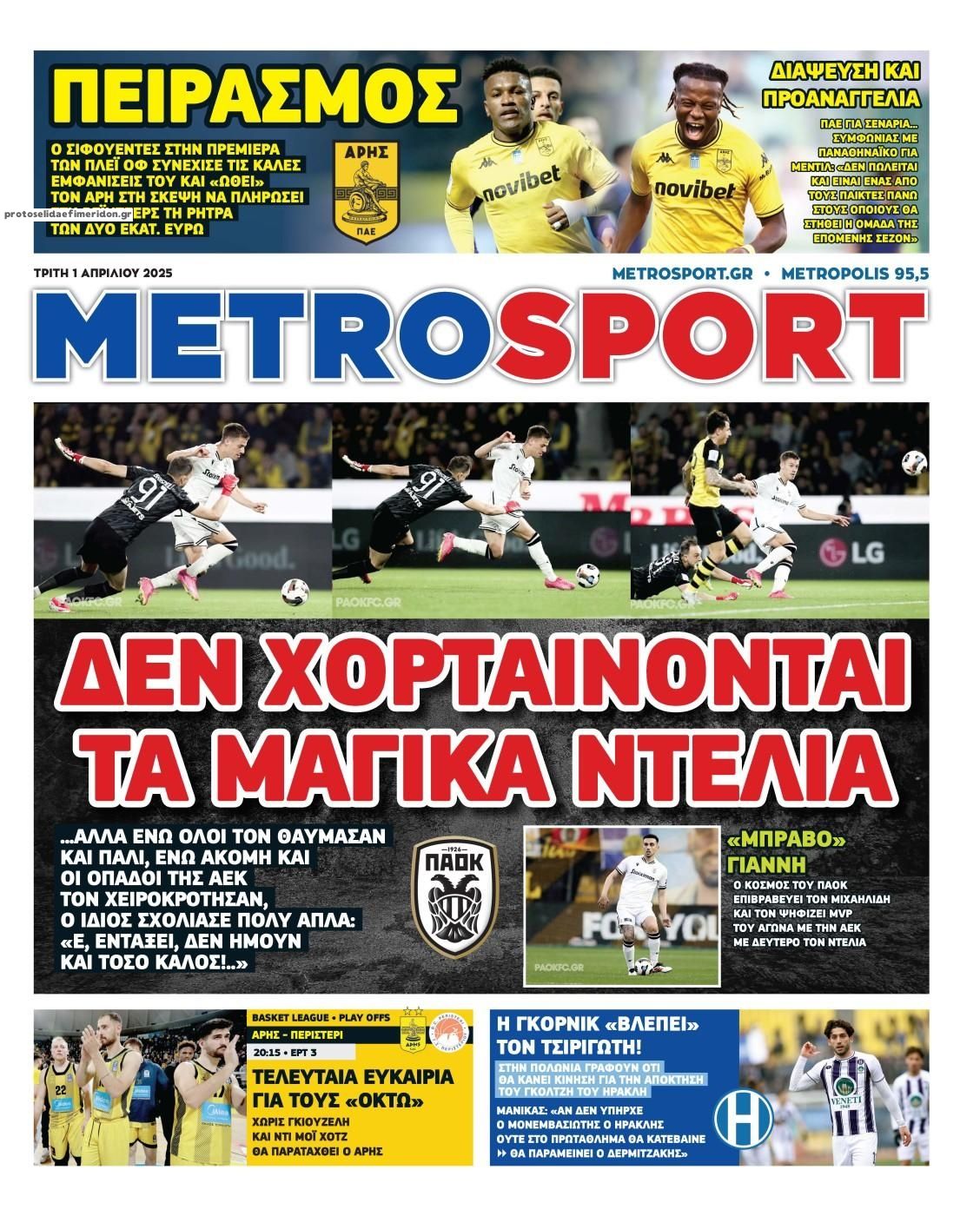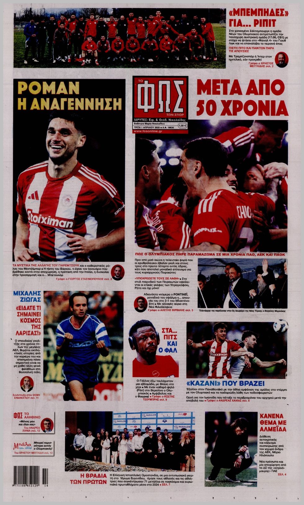 Τα αθλητικά πρωτοσέλιδα της Τρίτης 1/4
