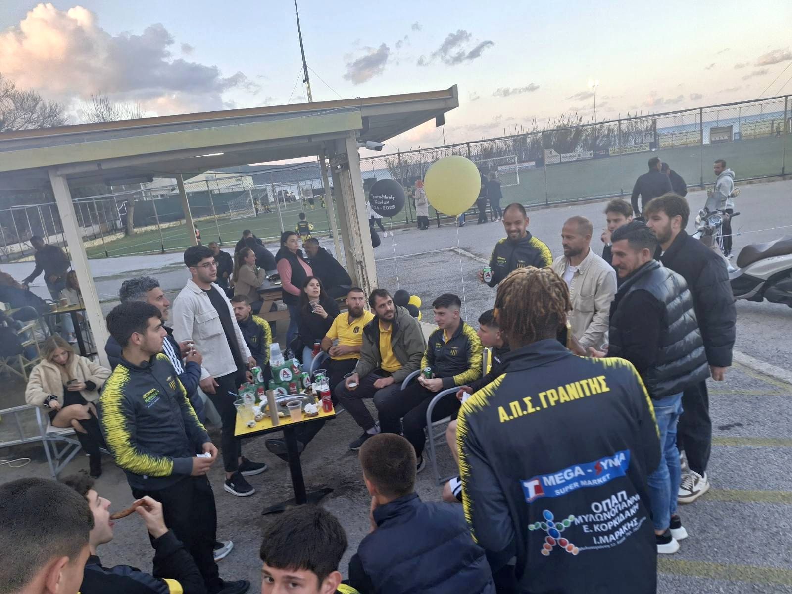 Ενα μικρό γλέντι στήθηκε στην Αγία Μαρίνα για να γιορταστεί το δεύτερο πρωτάθλημα του Γρανίτη μέσα σε τρία χρόνια, με τη σκέψη  όλων πάντως να είναι στον πρόεδρο της ομάδας Παύλο Τρουλάκη για τον οποίο τα τελευταία νέα είναι αισιόδοξα